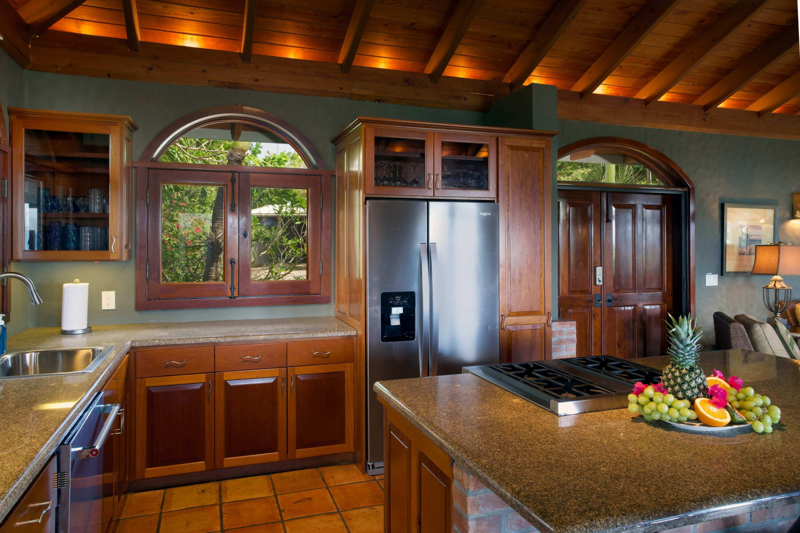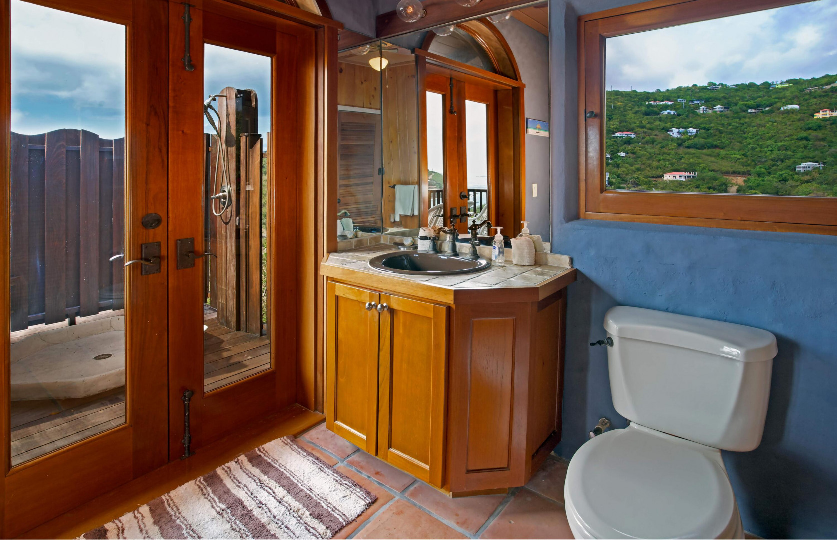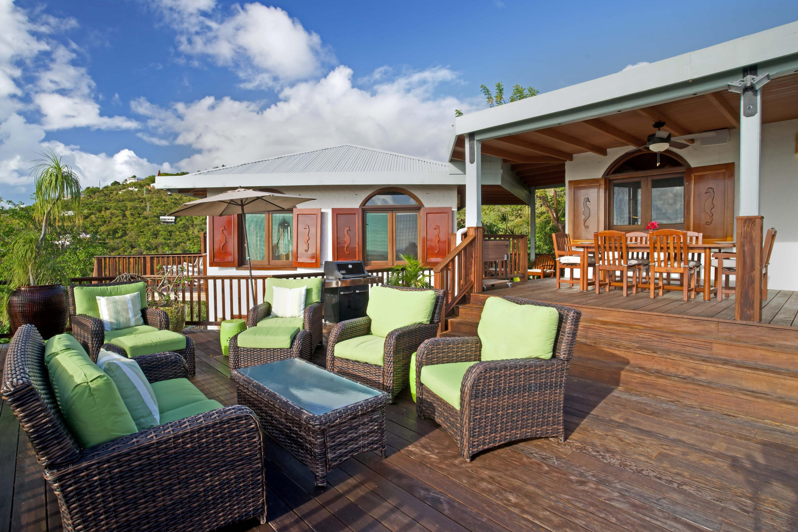 Villa De Vida is a stunning hilltop showplace in the serene enclave of Chocolate Hole which combines luxury with privacy and offers enchanting ocean views and lush tropical landscaping on 1.21 acres of property. The spacious kitchen and Great Room open on to an expansive Ipe wood deck perfect for entertaining and an inviting swimming pool where you can enjoy colorful sunsets and the twinkling lights of St. Thomas at night. The three charming bedroom suites are housed in separate buildings, each linked to the Great Room by covered walkways and arched entrances. Elegantly furnished with thoughtful touches, this villa captures the spirit of relaxed luxury. Whether as a vacation rental or private residence, this is an idyllic island retreat and the former home of a famous country music star!