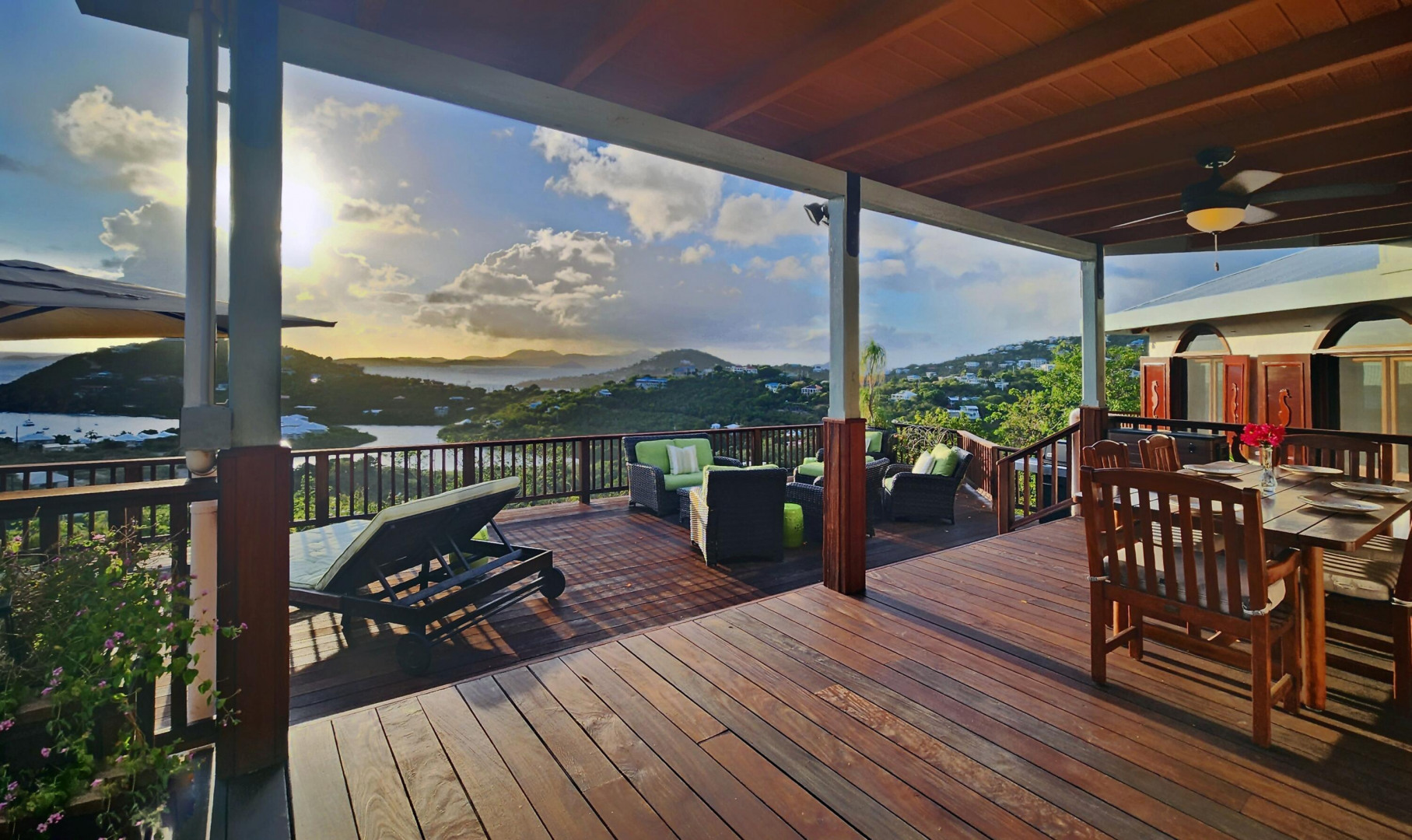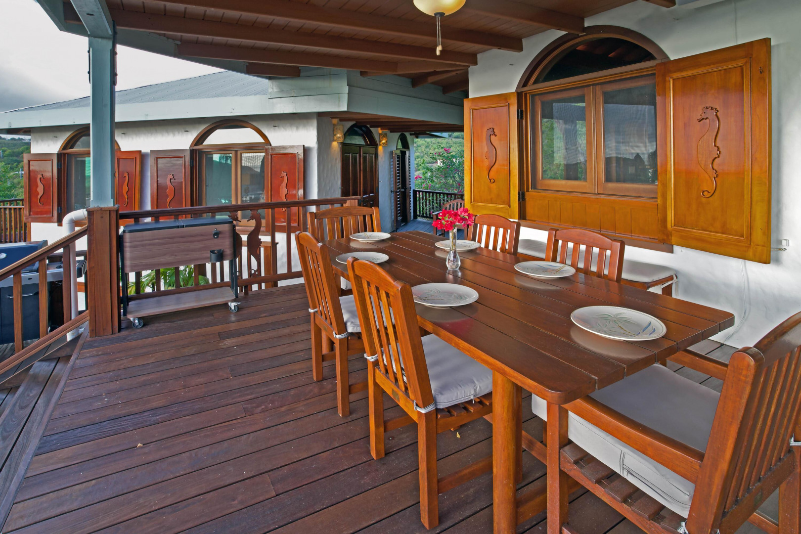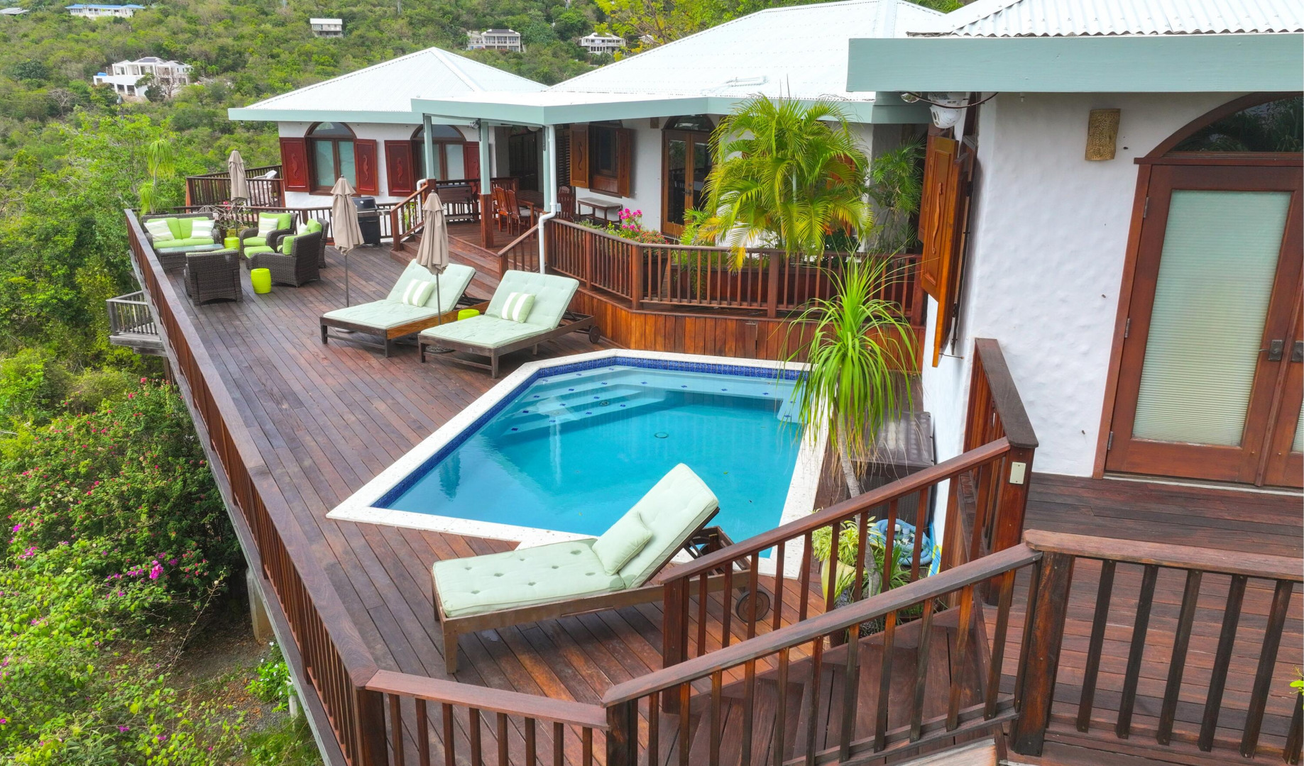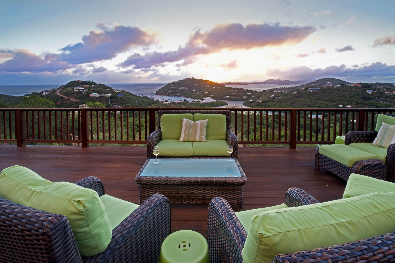 Villa De Vida is a stunning hilltop showplace in the serene enclave of Chocolate Hole which combines luxury with privacy and offers enchanting ocean views and lush tropical landscaping on 1.21 acres of property. The spacious kitchen and Great Room open on to an expansive Ipe wood deck perfect for entertaining and an inviting swimming pool where you can enjoy colorful sunsets and the twinkling lights of St. Thomas at night. The three charming bedroom suites are housed in separate buildings, each linked to the Great Room by covered walkways and arched entrances. Elegantly furnished with thoughtful touches, this villa captures the spirit of relaxed luxury. Whether as a vacation rental or private residence, this is an idyllic island retreat and the former home of a famous country music star!