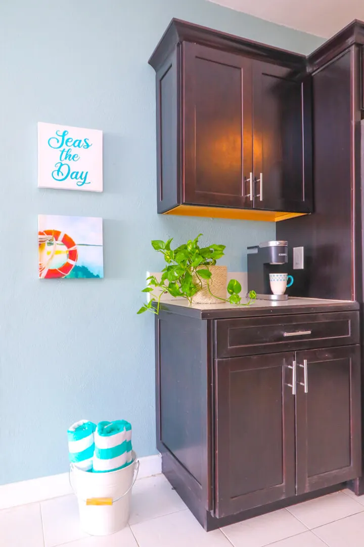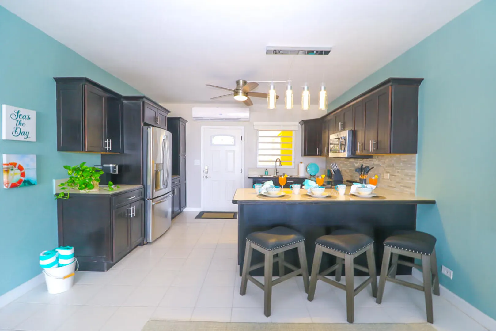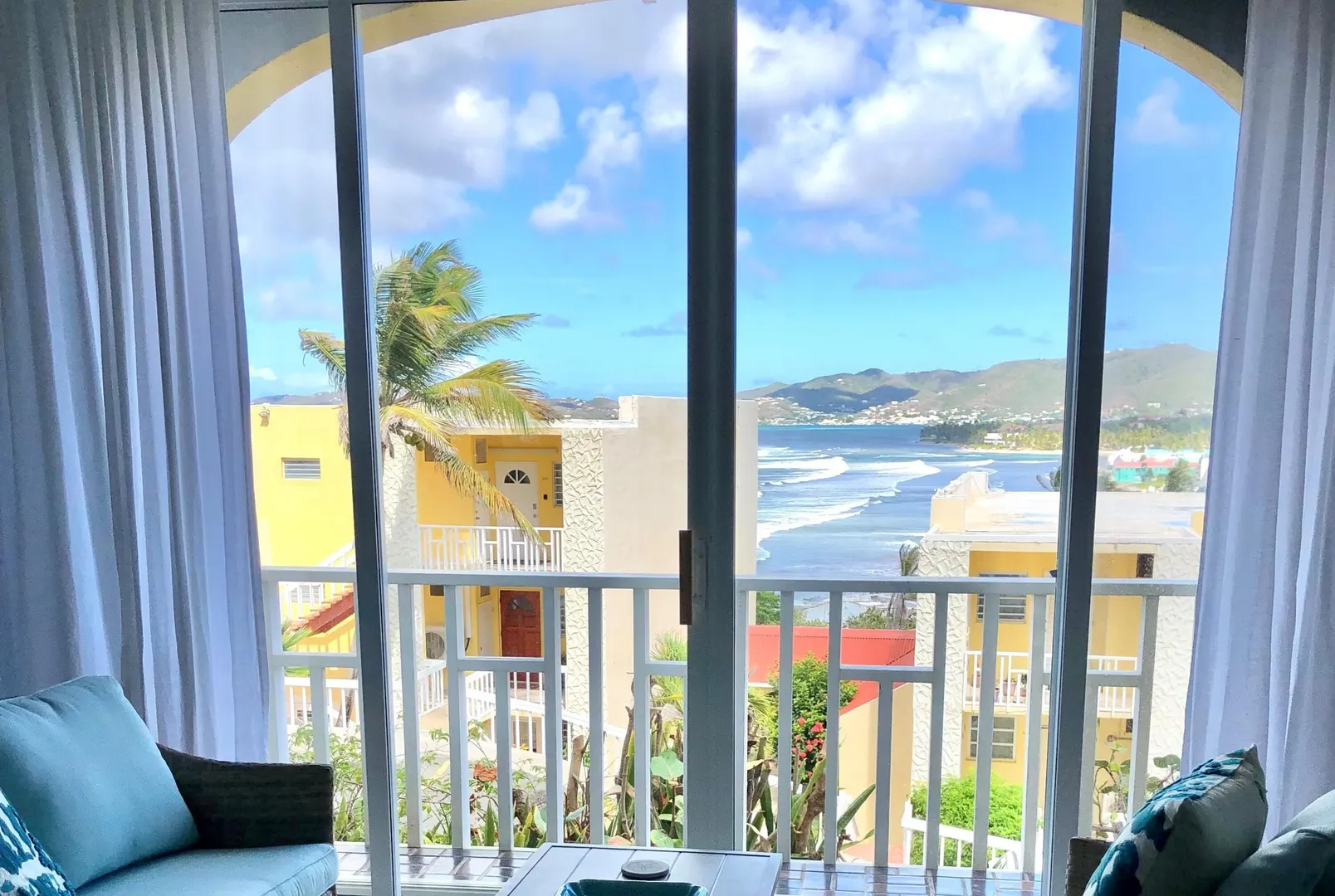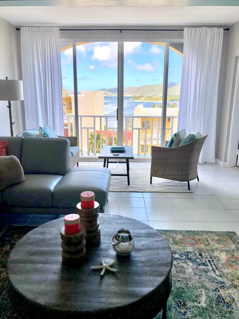Beautifully renovated TURN KEY Condo. This 1000+/- sq ft unit has been transformed into a 2 bedroom 1 bath floor plan with a custom kitchen. It is fully furnished, features custom built closets, a tile accent entertainment wall, stainless steel appliances as well as front loading washer and dryer. Enjoy the ocean and pastoral views and consistent breezes. The St. C Condo complex is gated, a cliffside water front community located approx. 10 minutes West of Christiansted. Easy quick access to North shore, center island Christiansted, shopping, resorts, grocery stores and beaches. Off street parking, US Postal service mailboxes, pool, community laundry center and on site staff for maintenance. Fees include insurance, trash dumpster on site, exterior maintenance, water and PEST control.