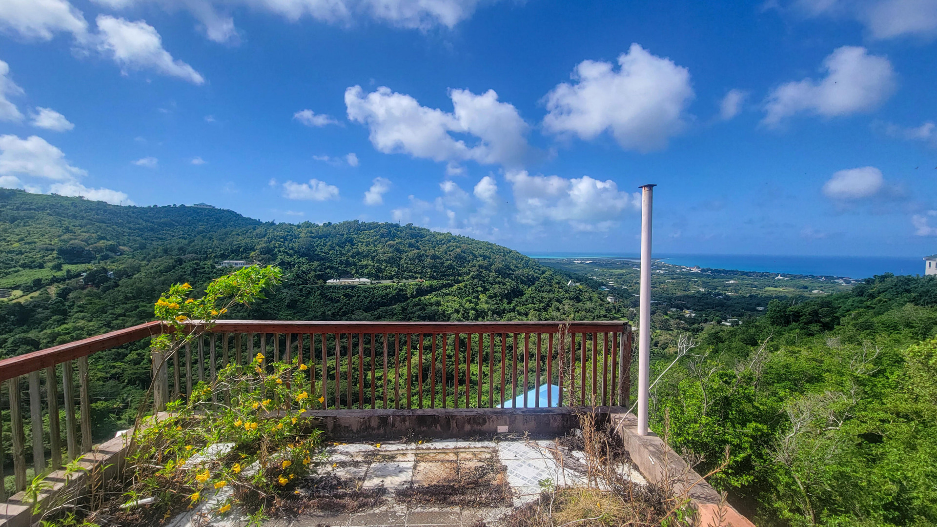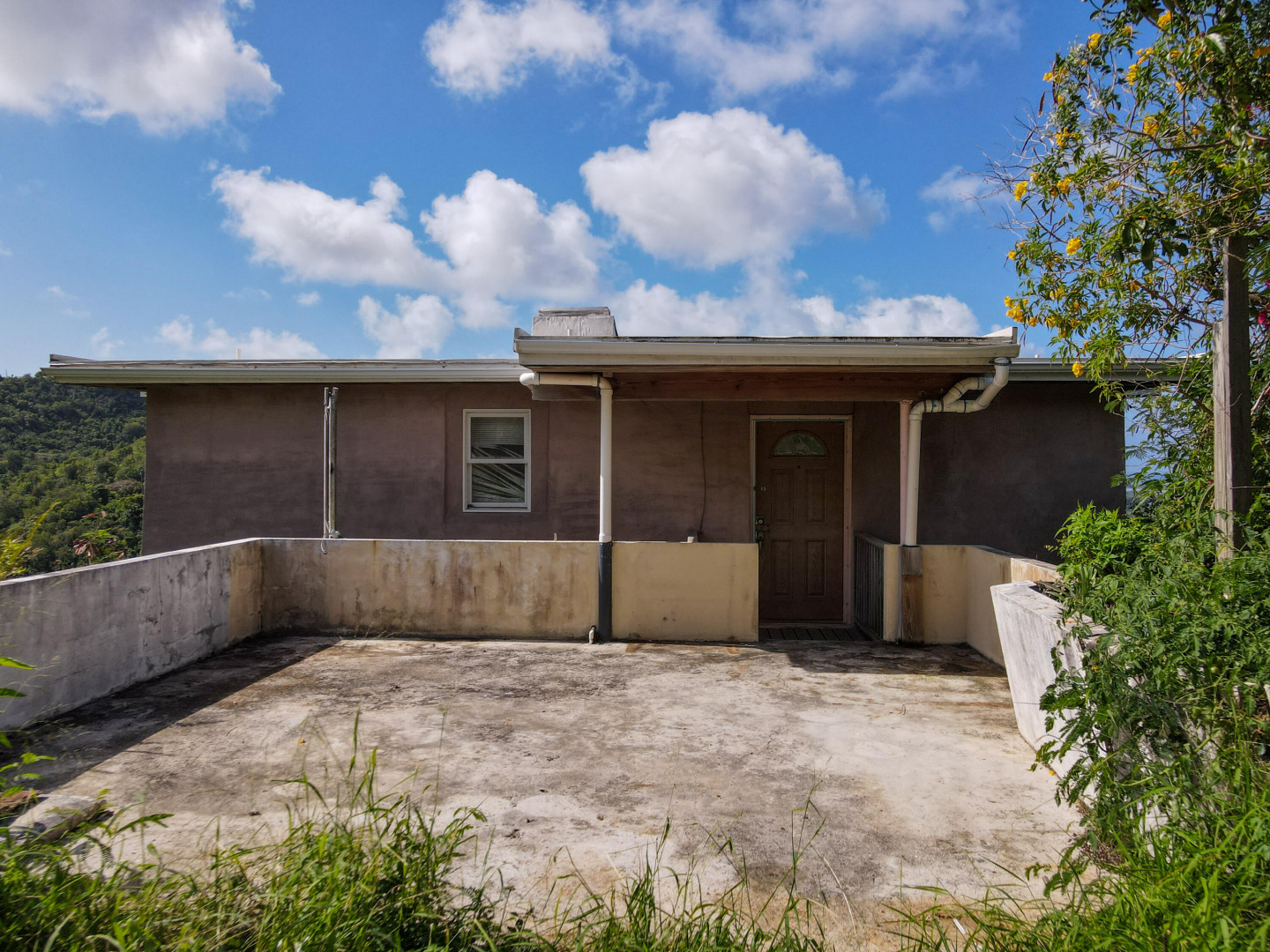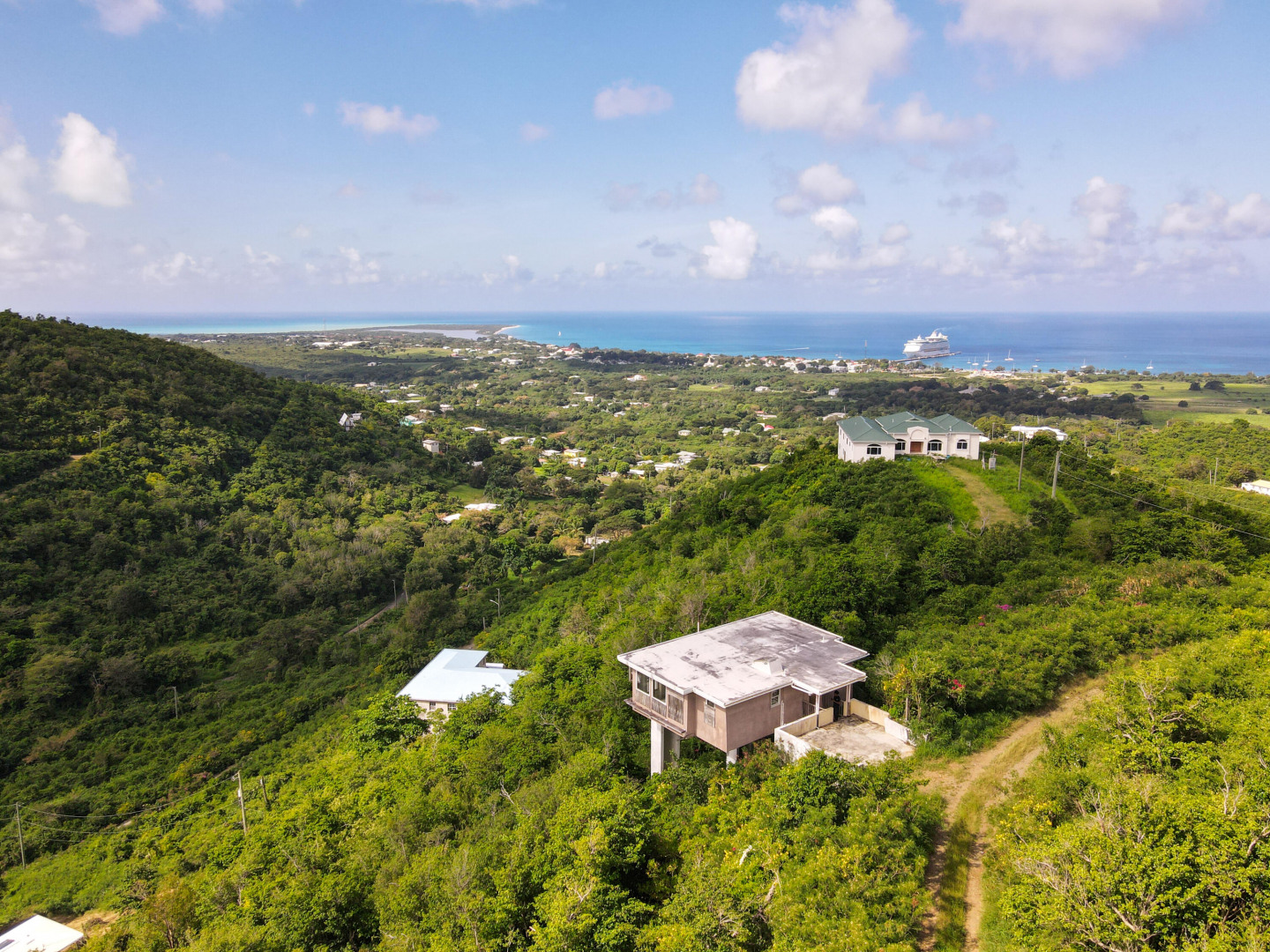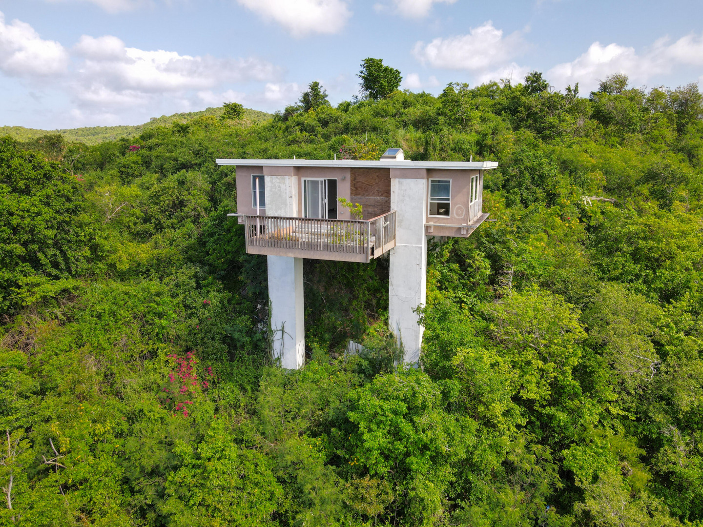 *AS IS HURRICANE DAMAGED HOME* designed by organic architect John Randall McDonald. Perched on a verdant hill in Little La Grange, this 2 bedroom, 2 bathroom house on stilts offer views of the gorgeous Caribbean Sea from every room. Valley views from the east bedroom, picture windows....be serenaded by the sounds of birds and the breeze. An amazing opportunity to build on the bones of a masterwork.