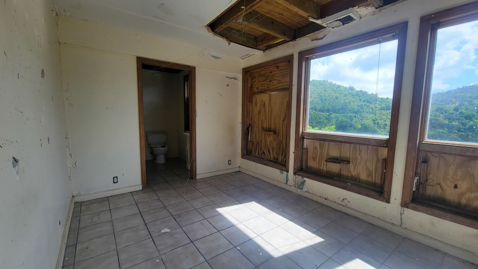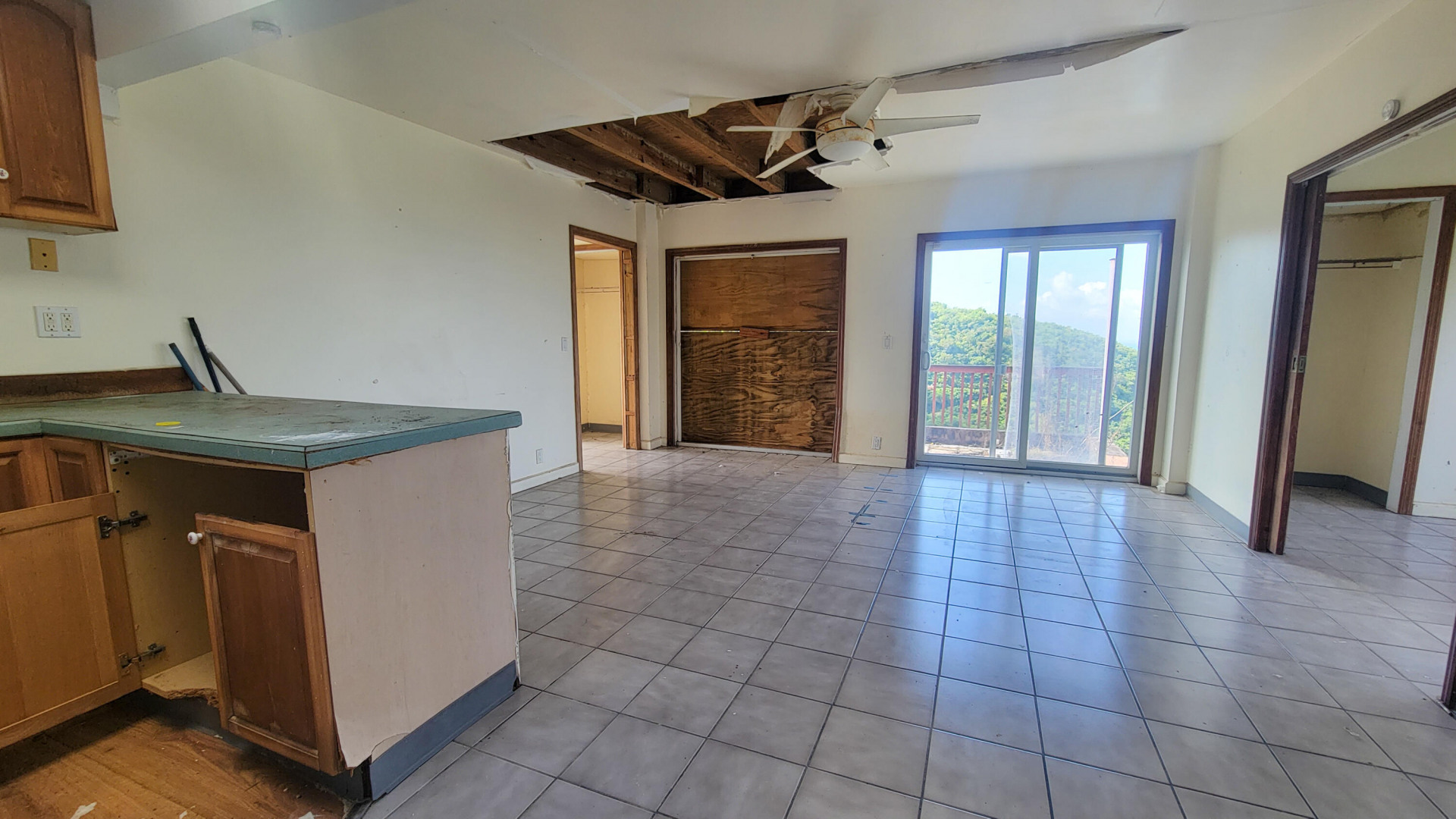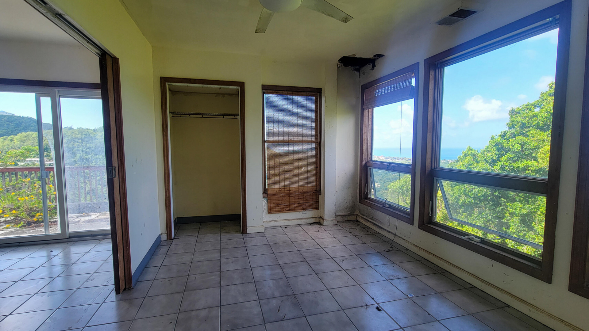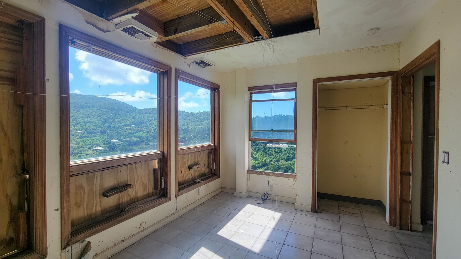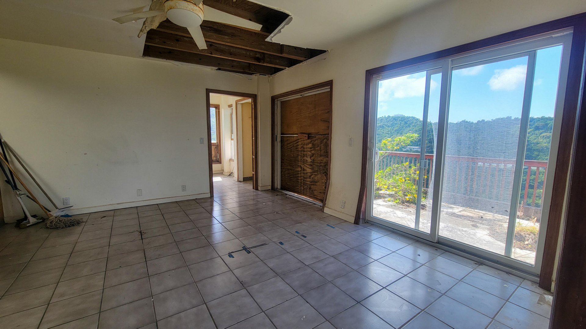 *AS IS HURRICANE DAMAGED HOME* designed by organic architect John Randall McDonald. Perched on a verdant hill in Little La Grange, this 2 bedroom, 2 bathroom house on stilts offer views of the gorgeous Caribbean Sea from every room. Valley views from the east bedroom, picture windows....be serenaded by the sounds of birds and the breeze. An amazing opportunity to build on the bones of a masterwork.