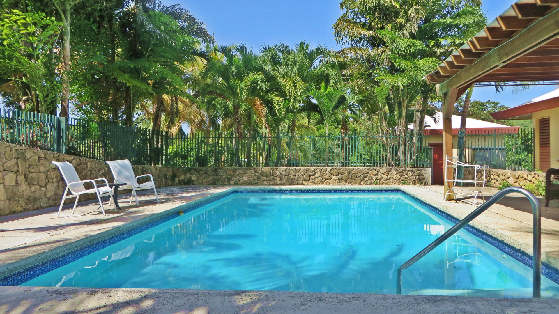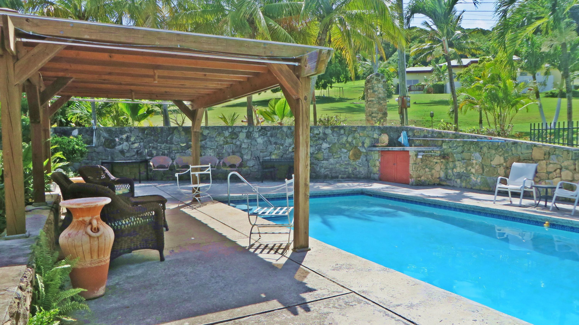 This island oasis is located on a large, flat lot with gorgeous, professional landscaping and a refreshing swimming pool. The lush and abundant grounds offer a canopy for shade and give the home complete privacy. The Mary Fancy's neighborhood has paved roads, is extremely well maintained and is in a very convenient location. The main home has two-bedrooms, two full bathrooms, upgraded kitchen and bonus space off of the open greatroom. The efficiency feels like a free standing cottage. Its cozy with a separate. private entrance and a covered gallery.When you live in the Caribbean, having your own oasis is a must and the pool area offers exactly that! There is a beautiful stone wall lined with soaring palm trees and verdant fauna that frames the swimming pool making the outdoor space completely private. In this area you can find a beautiful garden setting with a custom built pergola for a place to dine alfresco pool side or take an afternoon nap amongst nature. Additional features include a 15 KW generator, a fully fenced yard great for dogs and workshop/garage/shed.