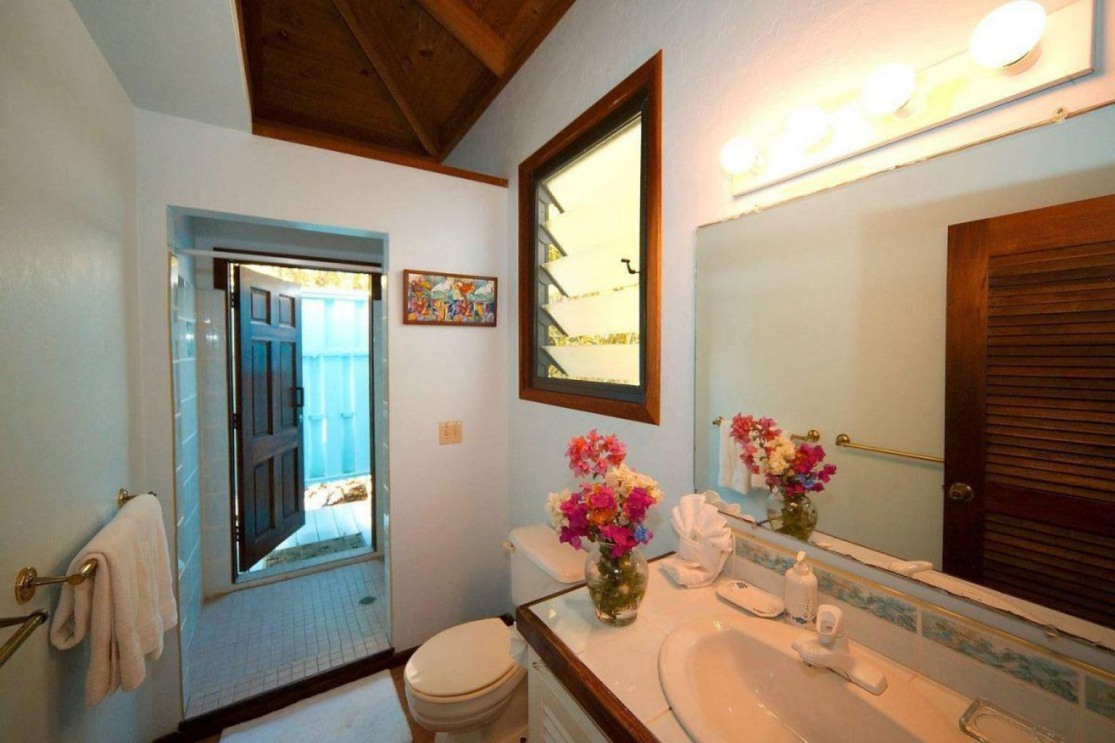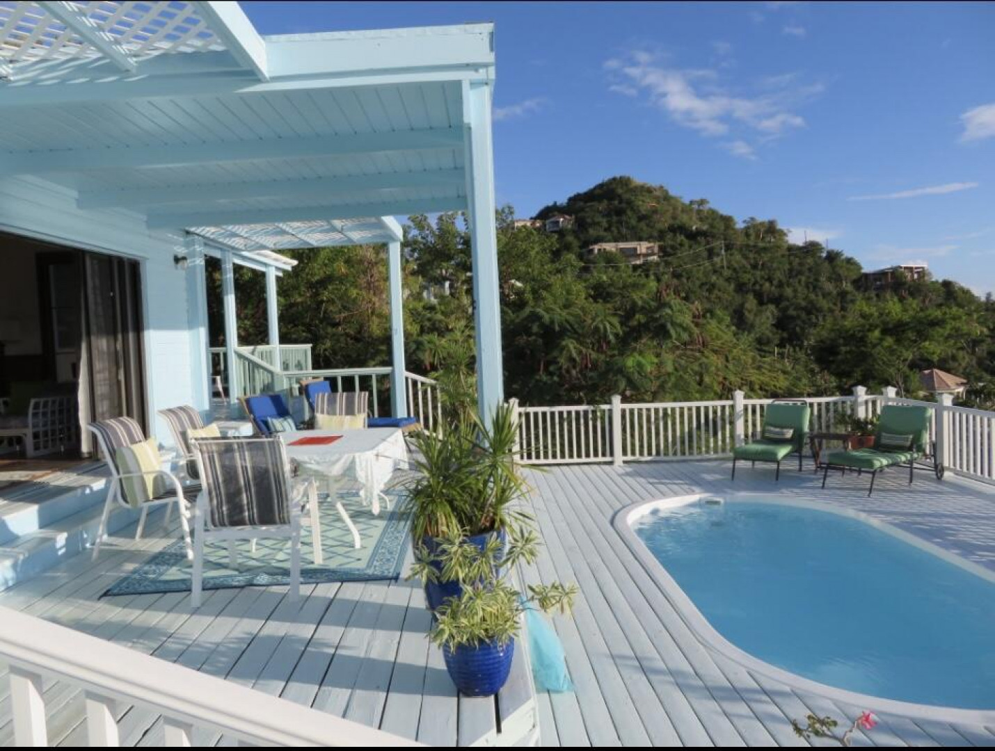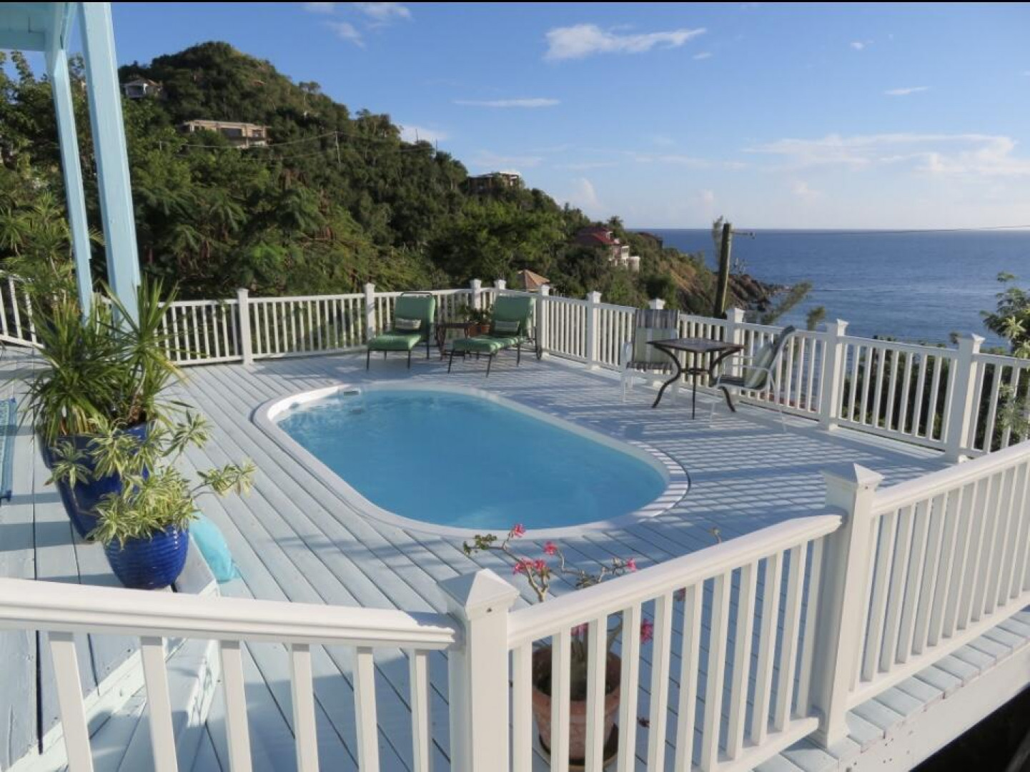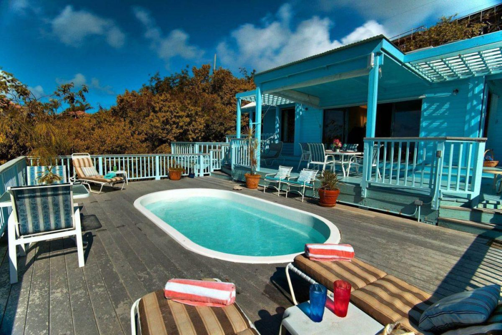 Enjoy the iridescent greens and blues of the Caribbean Sea from every area of this light and airy home. Hear the gentle lap of waves on the rocky beach nearby. This two bedroom home with pool and spa is sited on a corner lot for maximum privacy. Walk to two nearby beaches at Hart Bay and Chocolate Hole for excellent snorkeling, swimming and beach combing.