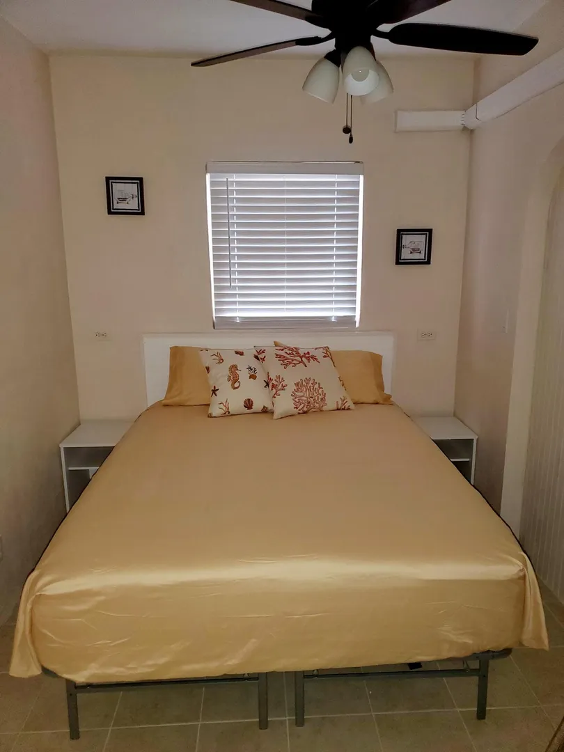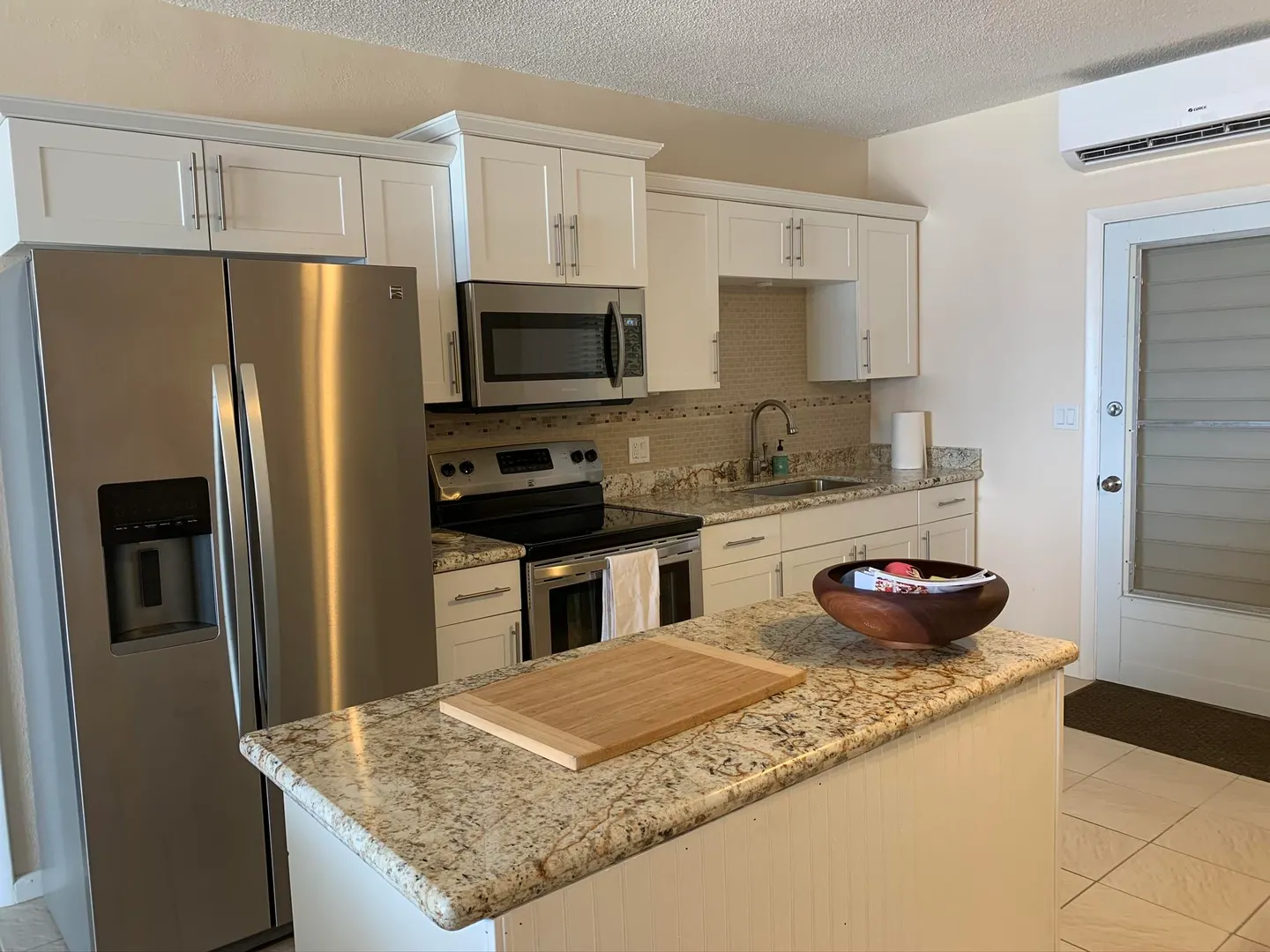 Completely remodeled two bedroom one bath. Yes 2 bedrooms, a rarity for St. Croix by the Sea. New Tiles, New Kitchen, New Bathroom, New Furnishings, New A/Cs. This unit has great views of Buck Islands the Christiansted, Harbour. Enjoy the morning sunrises, take in the breezes on the balcony