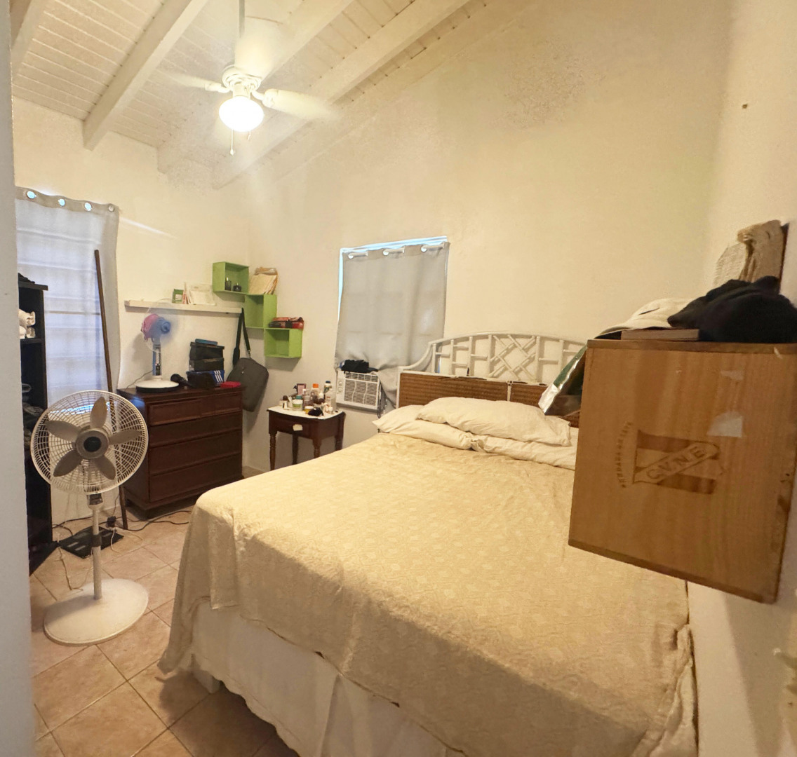 Rare opportunity to live, own rental property, or both, in Cruz Bay, St. John. Two story building in residential neighborhood within walking distance of Cruz Bay. 2 separate apartments each with 4 bedrooms and 2 baths, kitchen, living room, wide hallway, wrap around balconies, light and windows in every room. Tiled floors and bathrooms. Cathedral ceiling upstairs apartment. Short walk to Starfish Market and laundromat. Lush foliage. Live on both floors, live on one and lease the other, or lease both floors.This is a rare opportunity to own property in Cruz Bay, where there is a limited amount of residential property for sale.