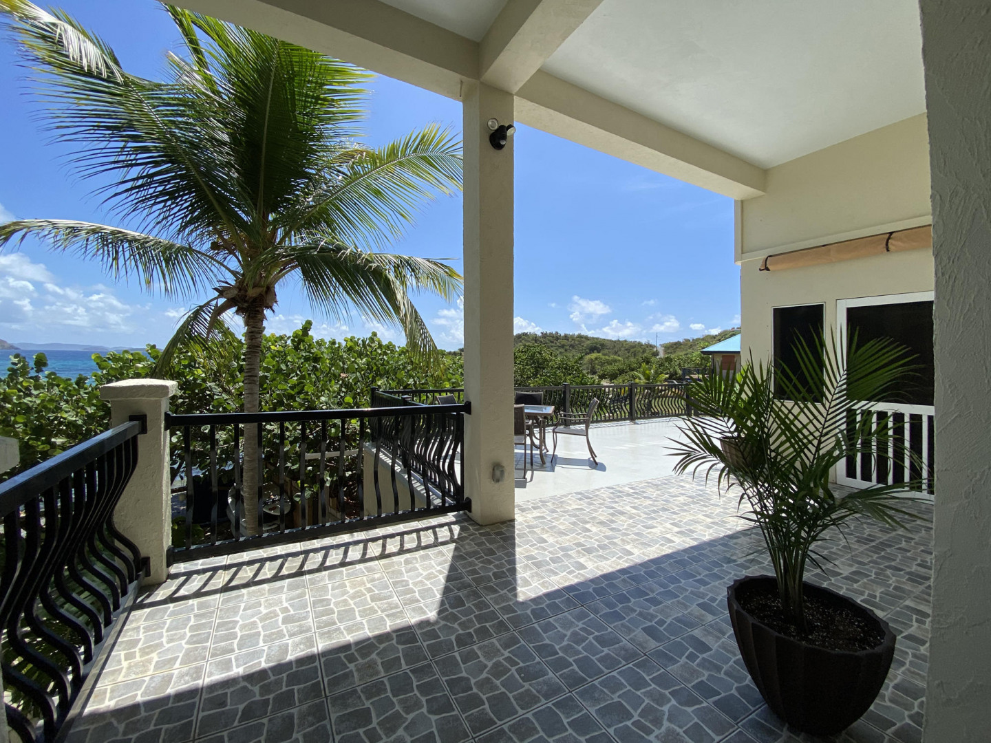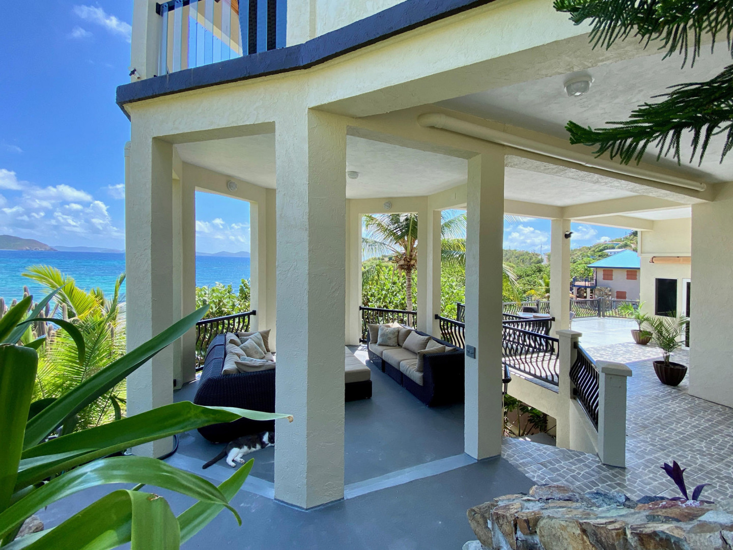 Pelican Beach 5 bedroom / 3.5 bath waterfront villa, awaken to amazing sunrises on this peaceful Coral Bay side.Pelican Beach, one of the few St. John vacation rentals available directly on the water, features fabulous outside living spaces with breathtaking views, cool evening breezes & almost daily visits from soaring, diving pelicans & you will be lulled into peaceful bliss by the sound of the surf, both day and night. Indoor living space includes 5 bedrooms W)AC, 2 fully equipped kitchens w) full size appliances & 3.5baths with 2 laundry facilities & office. Great snorkeling within footsteps of the waterfront seagrape deck.Relax in the gazebo, absorb the panoramic views from Tortola, East End, Flannigan Island & Norman Island. Walk to Miss Lucy's. Solar, Battery & generator systems