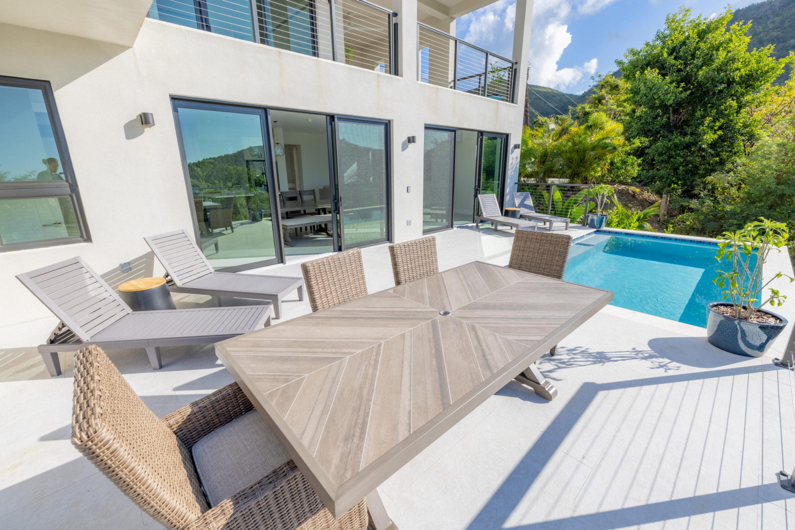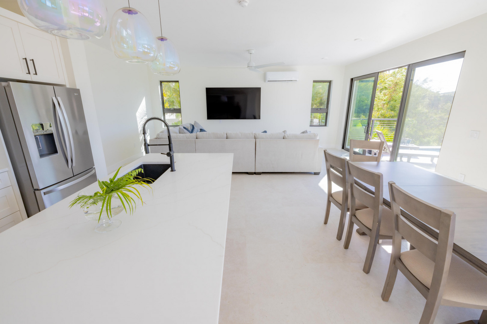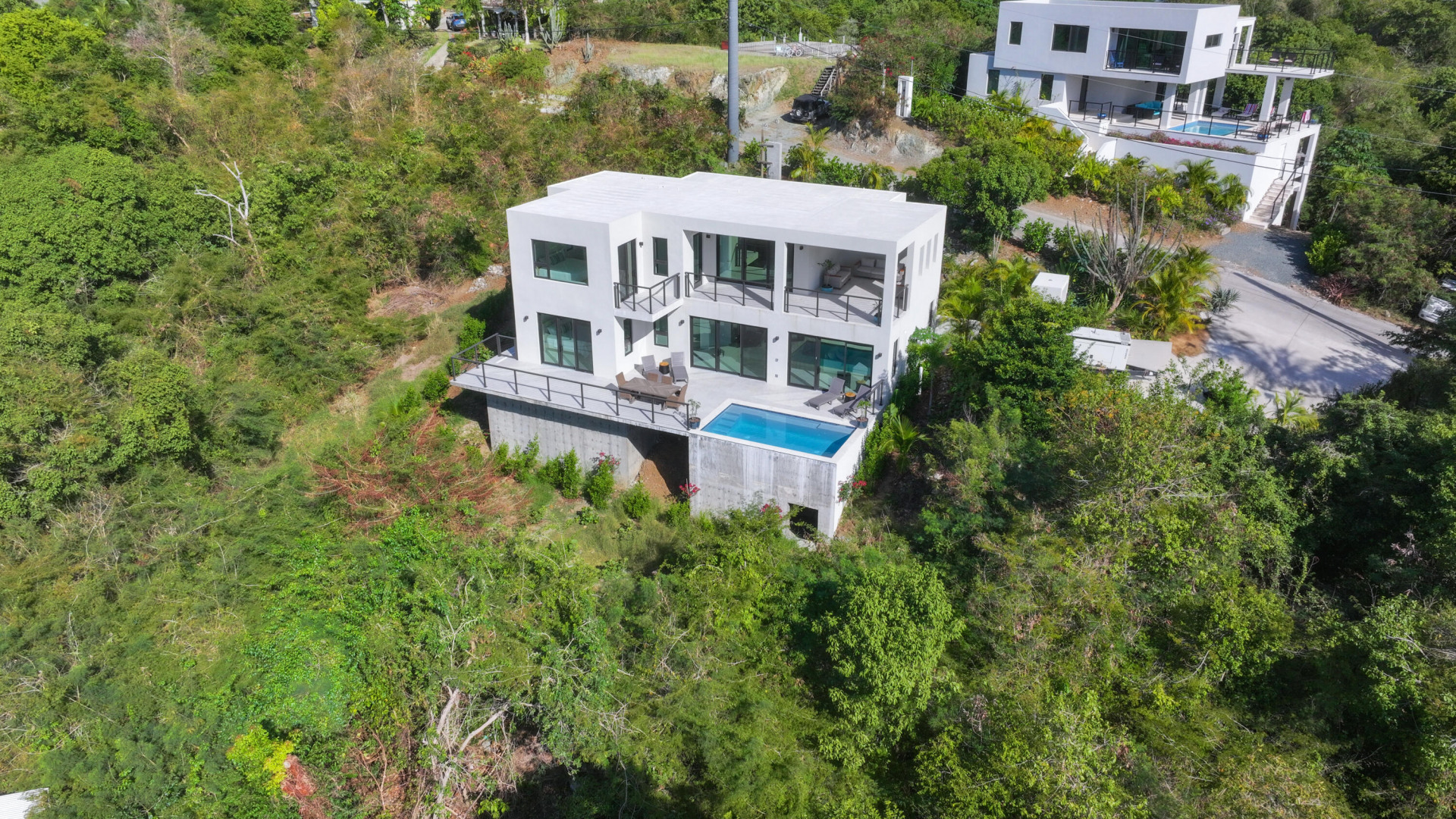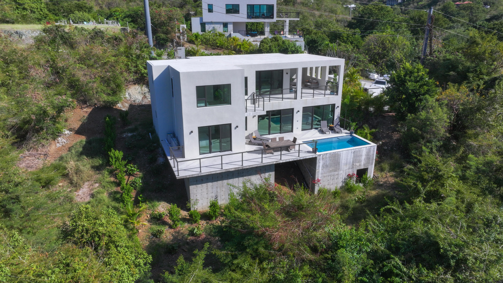 Discover luxury island living in this BRAND NEW, COMPLETED 3-bedroom, 3.5-bathroom modern pool villa. Constructed entirely of concrete, this home offers unparalleled durability and style along with water views! The villa boasts spacious interiors, an inviting pool area and a unique covered observation deck, perfect for entertaining and soaking in breathtaking views. Experience the best of tropical paradise in this exquisite villa. Whether you're looking for a permanent residence, a vacation home, or an investment property, this villa offers unmatched value and an exceptional lifestyle. Newly installed generator allows for comfort of backup power as needed.