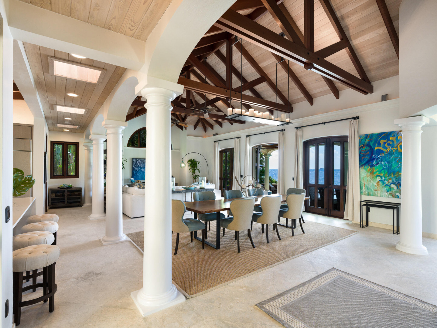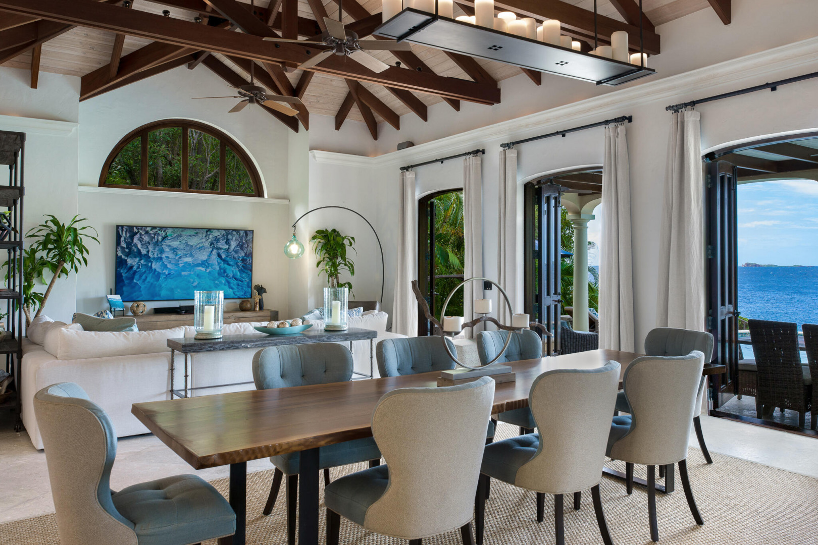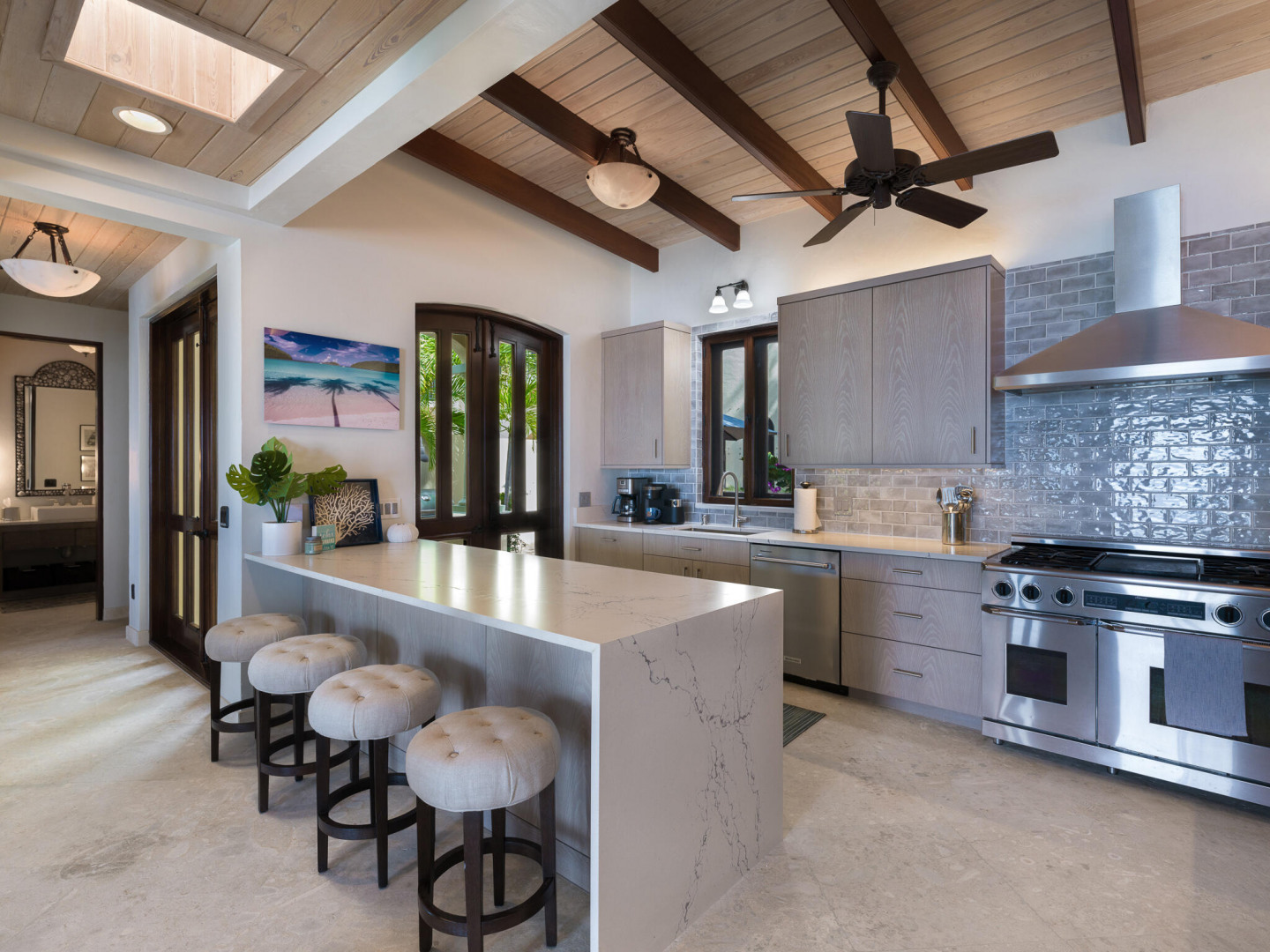 Rare Private Beachfront Beauty! Nestled on a lush acre this beautiful private villa takes your breath away with its charm & serenity. Located in the desirable Chocolate Hole neighborhood, only 5 minutes to town, TRANQUILITY VILLA provides 5+bedrooms, 5 bathrooms & boasts stunning ocean views. This gated home is steps away from your own white sand beach where you can enjoy paddle boarding, kayaking & snorkeling in the pristine bay, take an afternoon nap or watch spectacular sunsets. Beautifully appointed with numerous upgrades and benefits including: Newly remodeled kitchen, solar power, large capacity generator, new appliances, new high-end furniture, oversized two car garage, saltwater pool, private gym plus yoga deck overlooking the the Caribbean. Come live the dream at Tranquility!