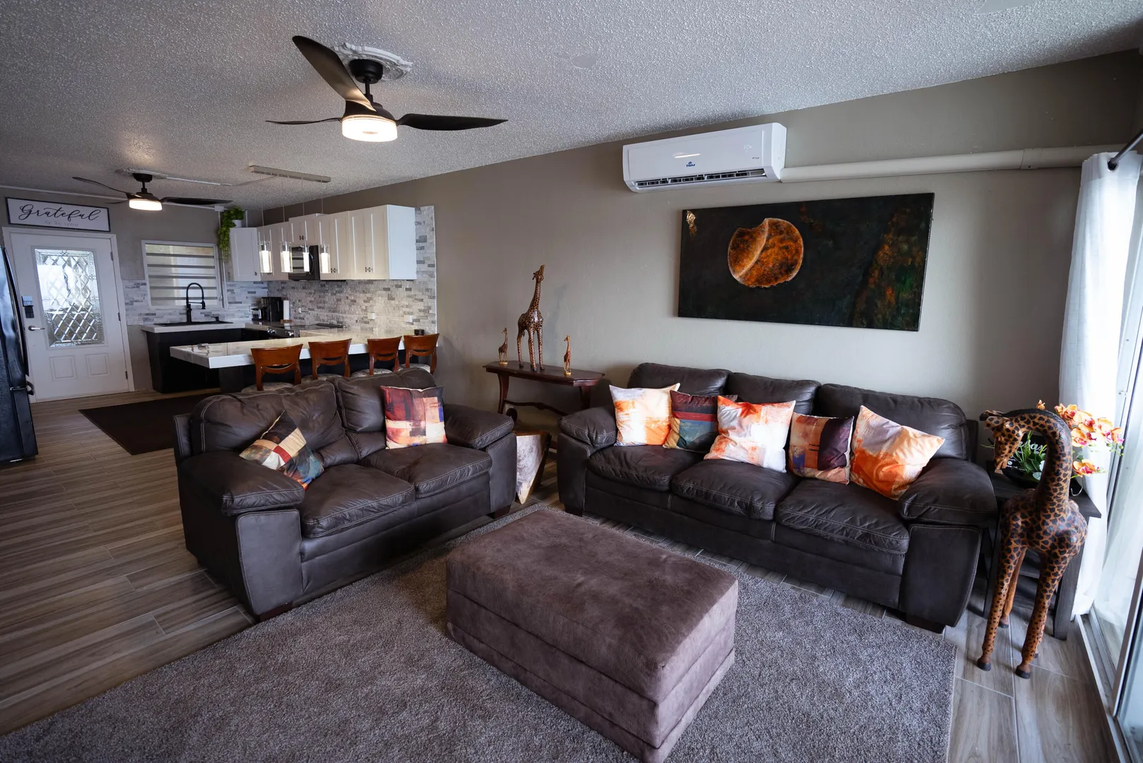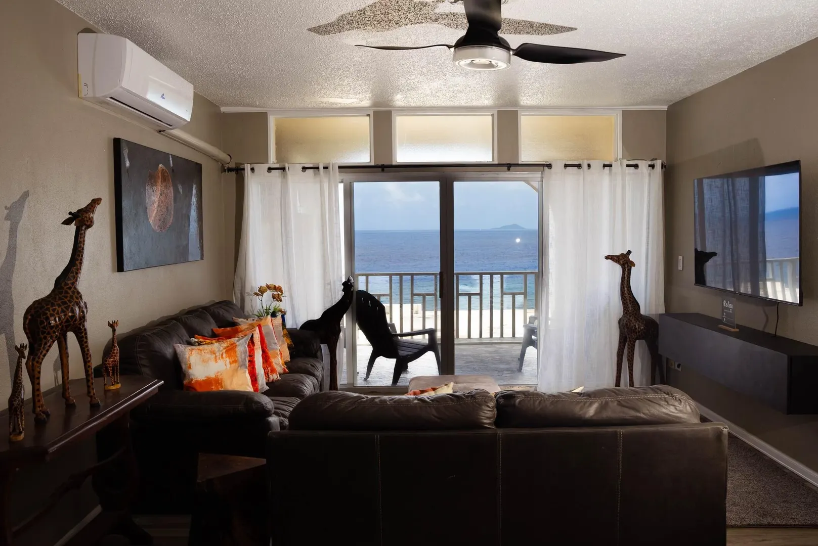 **Stunning Ocean View Retreat**: Welcome to your seaside sanctuary! This newly renovated 2-bedroom unit boasts a modern open floor plan, offering seamless flow and abundant natural light throughout. Wake up to the gentle sound of waves and breathtaking views of the ocean from both the main bedroom and the spacious living room. Enjoy the serene beauty of island living right from the comfort of your own home.**Comfortable Bedrooms**: Retreat to the comfort of two well-appointed bedrooms, perfect for rest and relaxation after a day of exploring the nearby beaches and attractions. The main bedroom features panoramic ocean views, creating a tranquil oasis for unwinding.