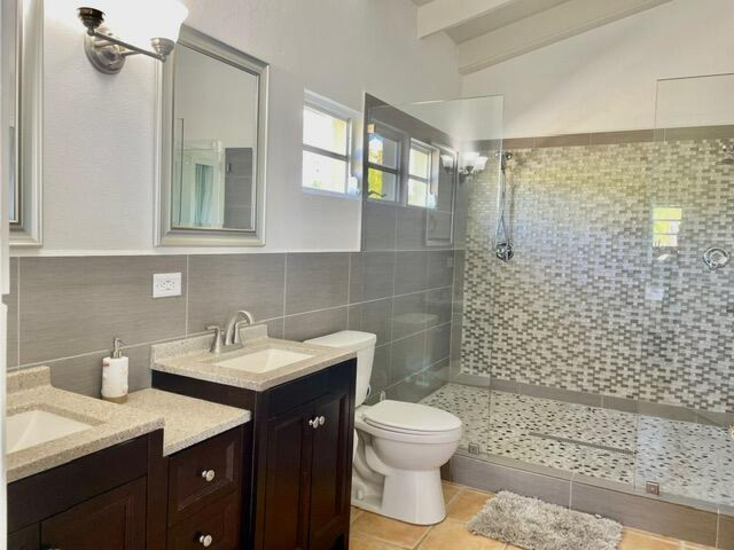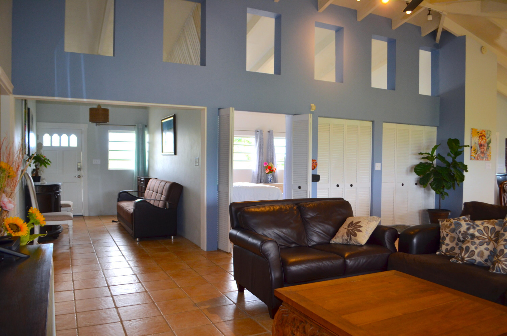 Exceptional 3 bedroom/2 bath East End home with a POOL. A spacious den is a bonus 4th bedroom in the main house. Fantastic layout w/easy access to decks fr 2 bedrooms & living room, a granite kitchen w/passthru to deck are great for entertaining. The 1 bedroom/ 1 bath apt is great for guests or income. Both main house & apartment have stellar views and generous deck space. The apartment has a wonderful screened porch! The property's 32-Panel net metering SOLAR power system, 20KW auto generator & 3 phase water filtration system make island living a breeze. Perched on a ridge top w/ a gently sloped lawn, this property offers privacy & wonderful neighbors. Many great beaches & restaurants are minutes away.