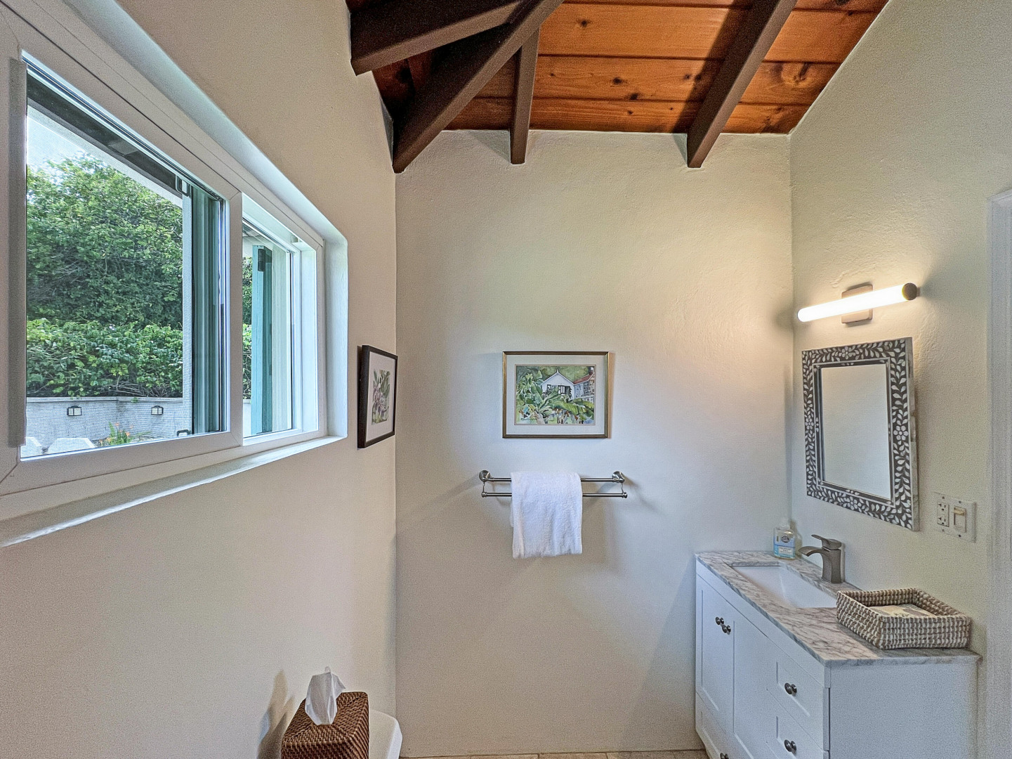 Judith's Fancy gem! Beautiful & charming 2 bedroom 2 bath home with 1/1 apartment in the desirable gated community of Judith's Fancy has been lovingly renovated with great attention to detail! The wide 54' gallery faces east making a wonderful place to relax with sun in the morning & shade in the afternoon. The house is situated to capture the tropical breezes. Features include 2 new kitchens, cypress ceiling, coral tile floors, new windows & doors, tumbled marble tile showers, whole house gas generator with transfer switch, new energy efficient AC window units, concrete driveway with brick accents, and many recent improvements (see Documents section). The double lot ensures you will have plenty of space & privacy, access from another road, & the opportunity to expand! Partial sea view.