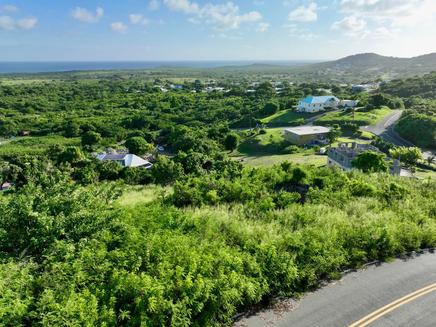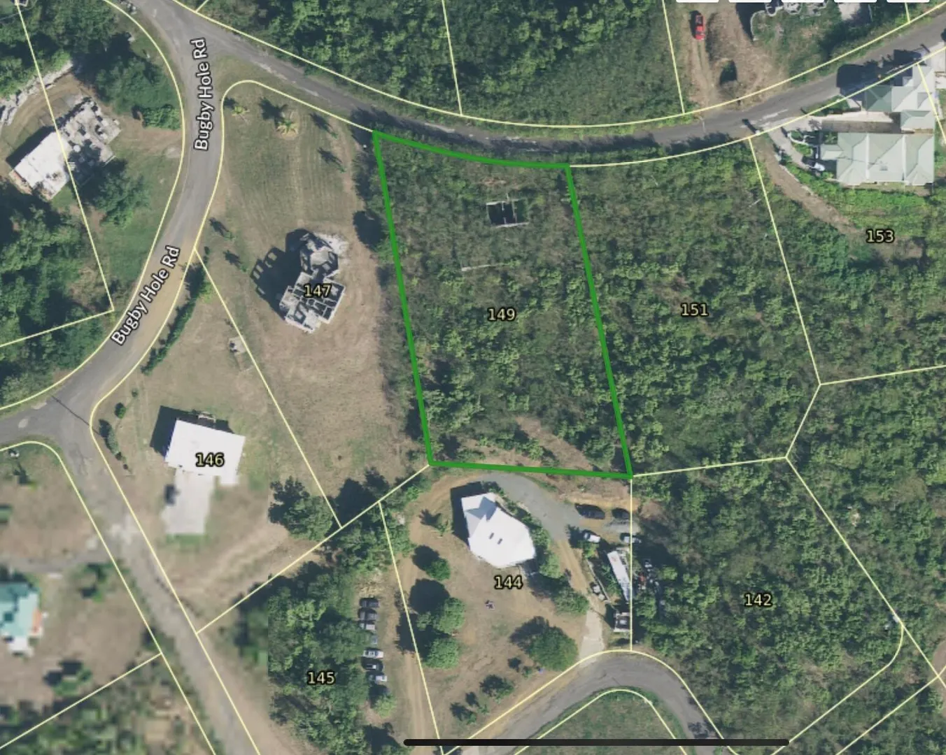Gently sloped 0.85 acre parcel with sea views located in Bugby Hole features a concrete 3-part cistern , a retaining wall and underground utilities. Quiet residential neighborhood less than 10mn away from Christiansted. House plans are included in the sale, see survey in documents completed in 2023.