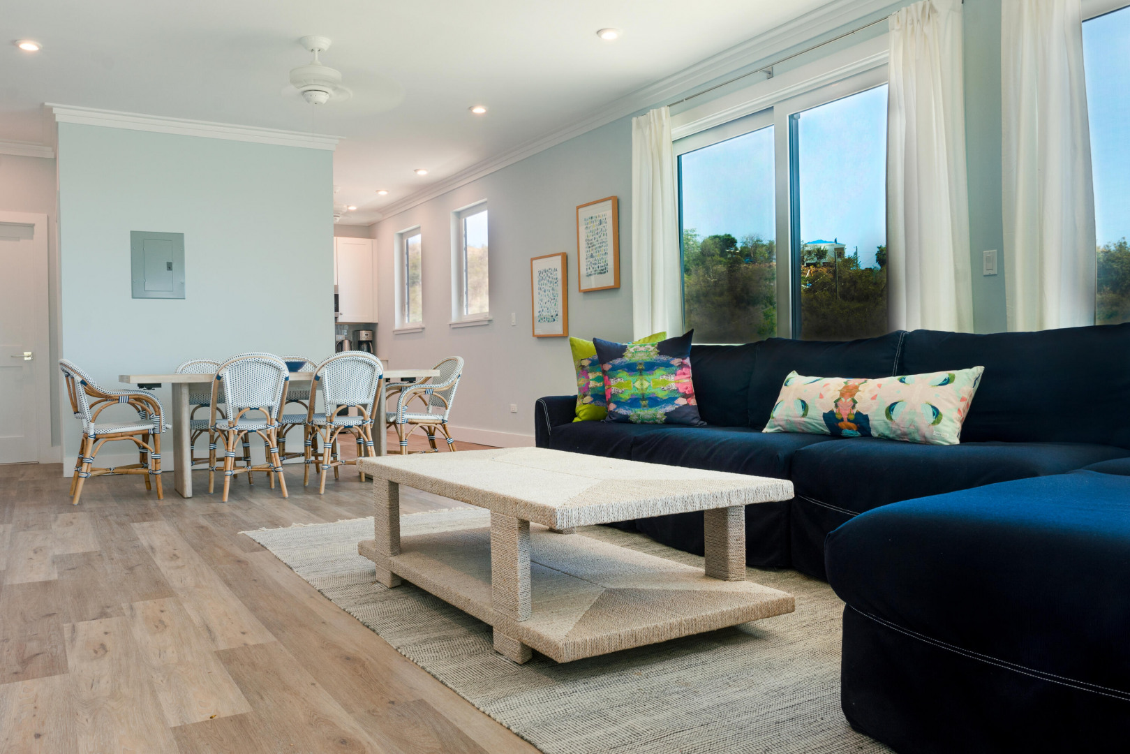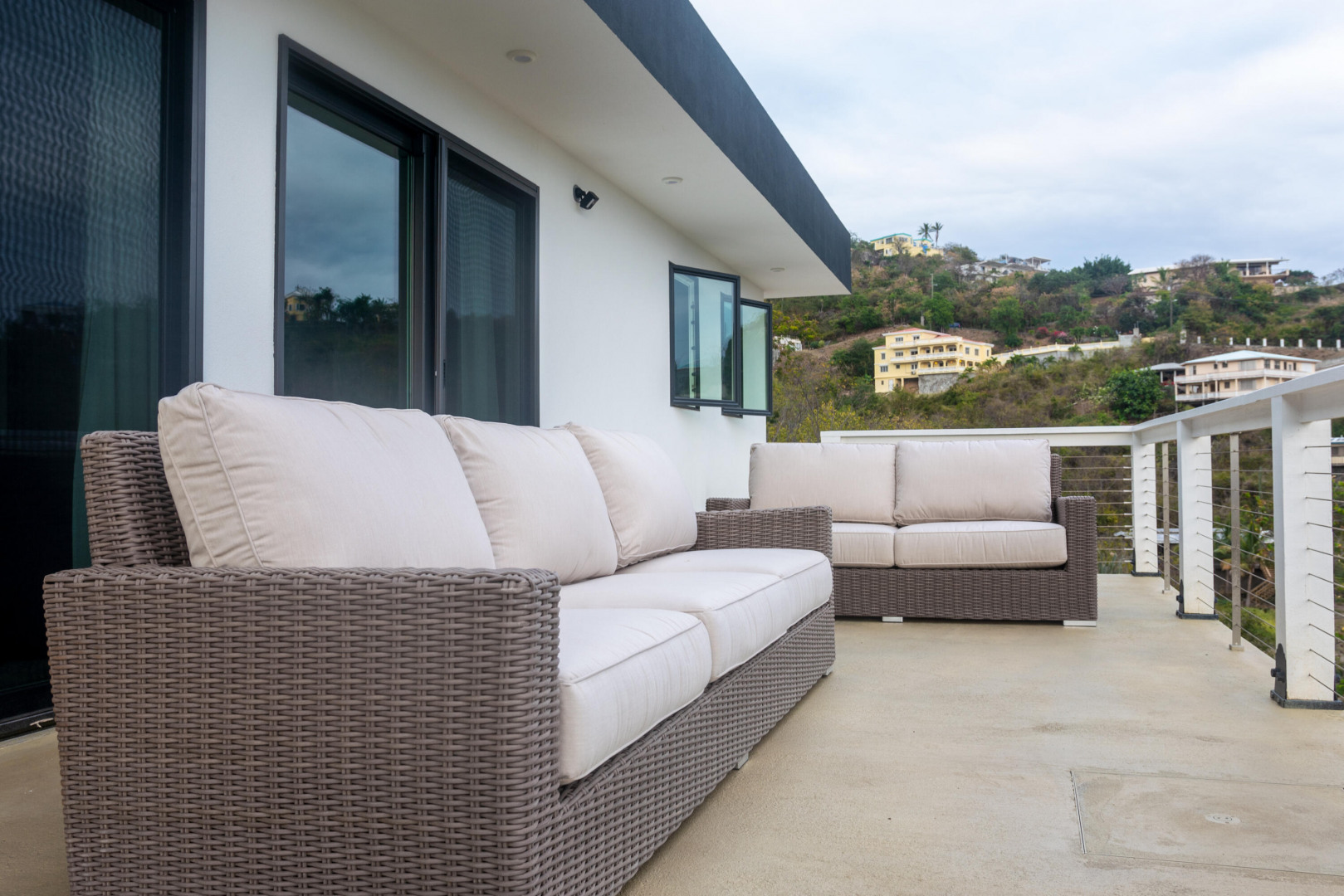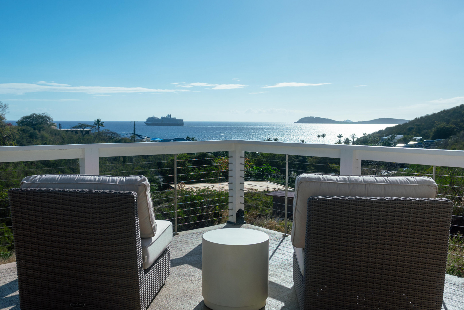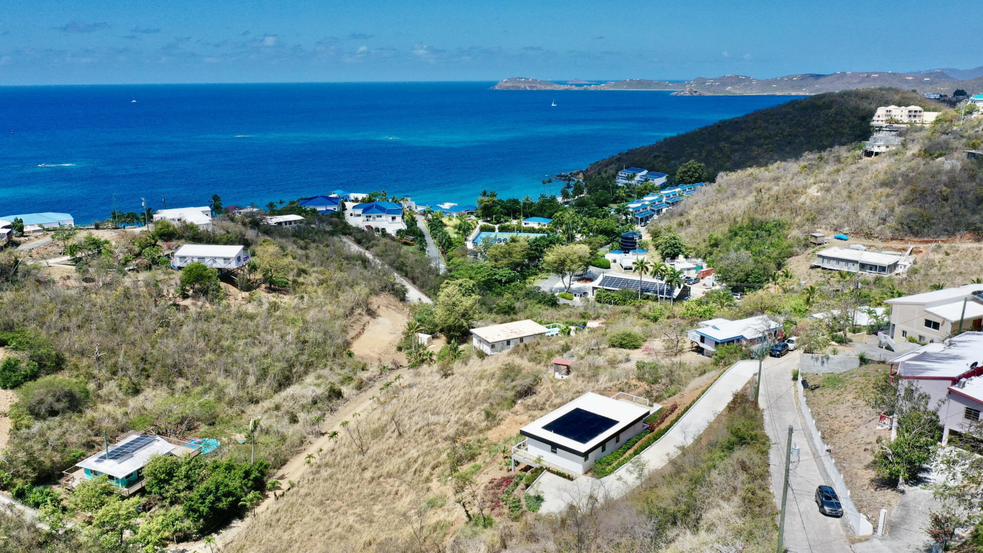 Modern Hygge (who-guh) Danish concept home with an emphasis on comfortable minimalism. High quality and eco friendly materials used. Engineered for 200mph wind speed and Pella hurricane shield windows rated for 180 mph winds. Synergy Fitness swim spa surrounded by a large deck with views towards Lime Tree. Minutes to Antilles School and Havensite. Short walk to beach and restaurant. Solar Panels and Tesla batteries!