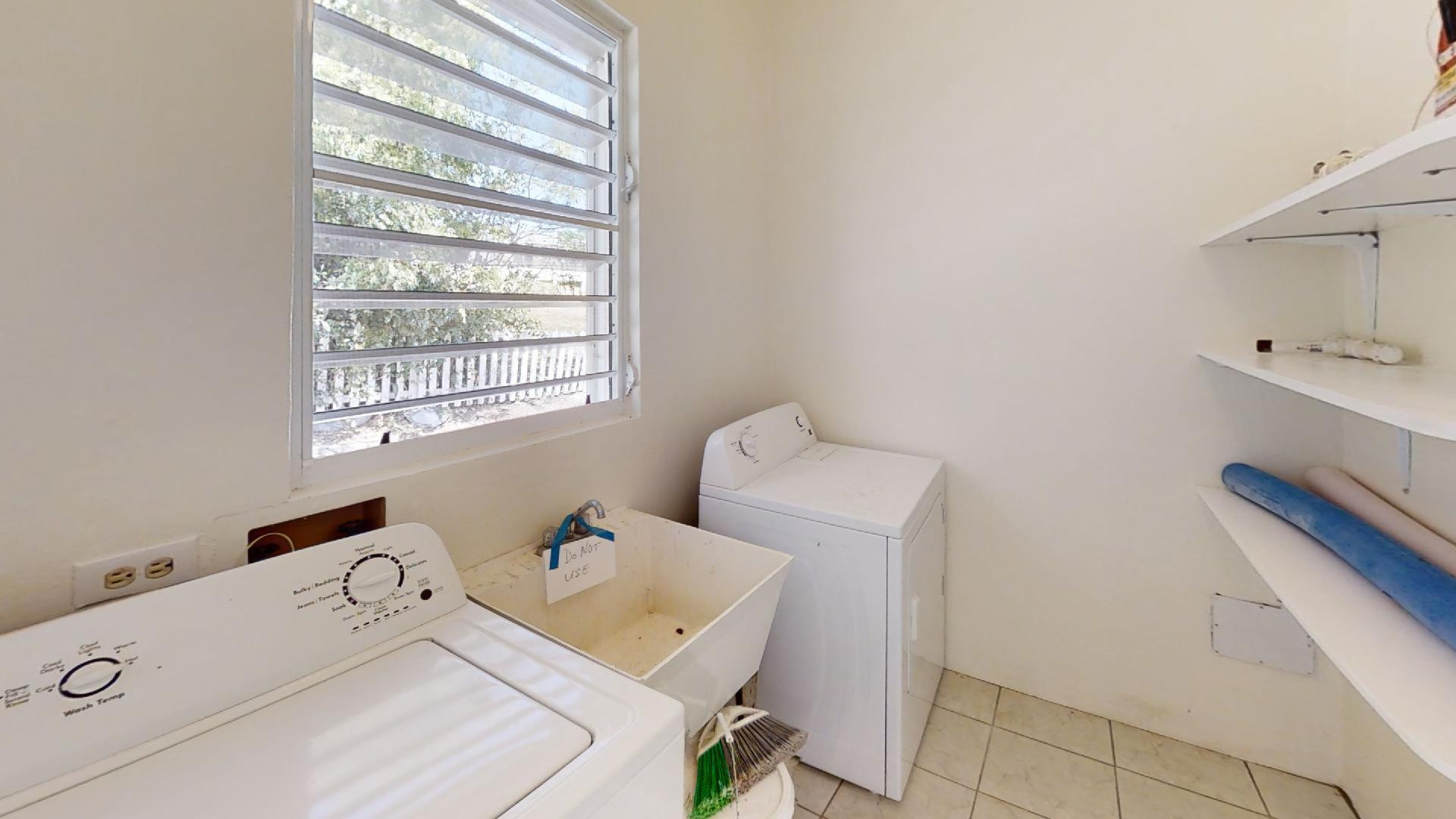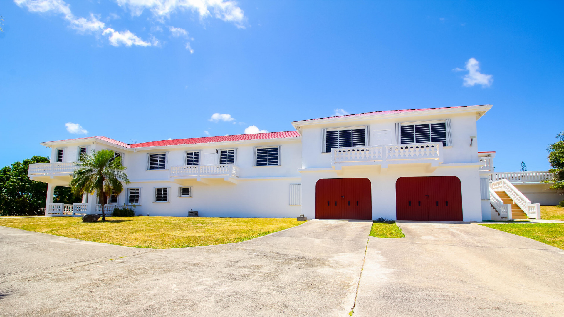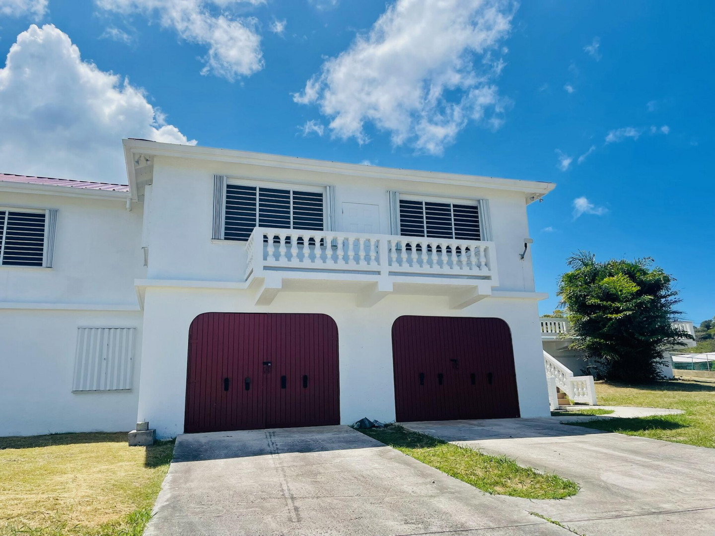 Immerse yourself in the gentle Caribbean breezes at this expansive and built to last concrete home. The main house features four bedrooms and three bathrooms upstairs, along with a separate one bedroom, one bathroom apartment. Two spacious garages, a storage area that doubles as a 'hurricane room,' and a pool room complete the lower level. The house stays cool thanks to high soaring ceilings and cross-ventilation, with recent A/C installations in all bedrooms for warmer days. Enjoy the open floor plan, a large kitchen equipped with new appliances, various galleries, subdivided sunrooms offering glimpses of the ocean, a patio, and an upstairs pool perfect for family gatherings and entertaining. The property includes a level lawn ideal for children and pets to play freely.