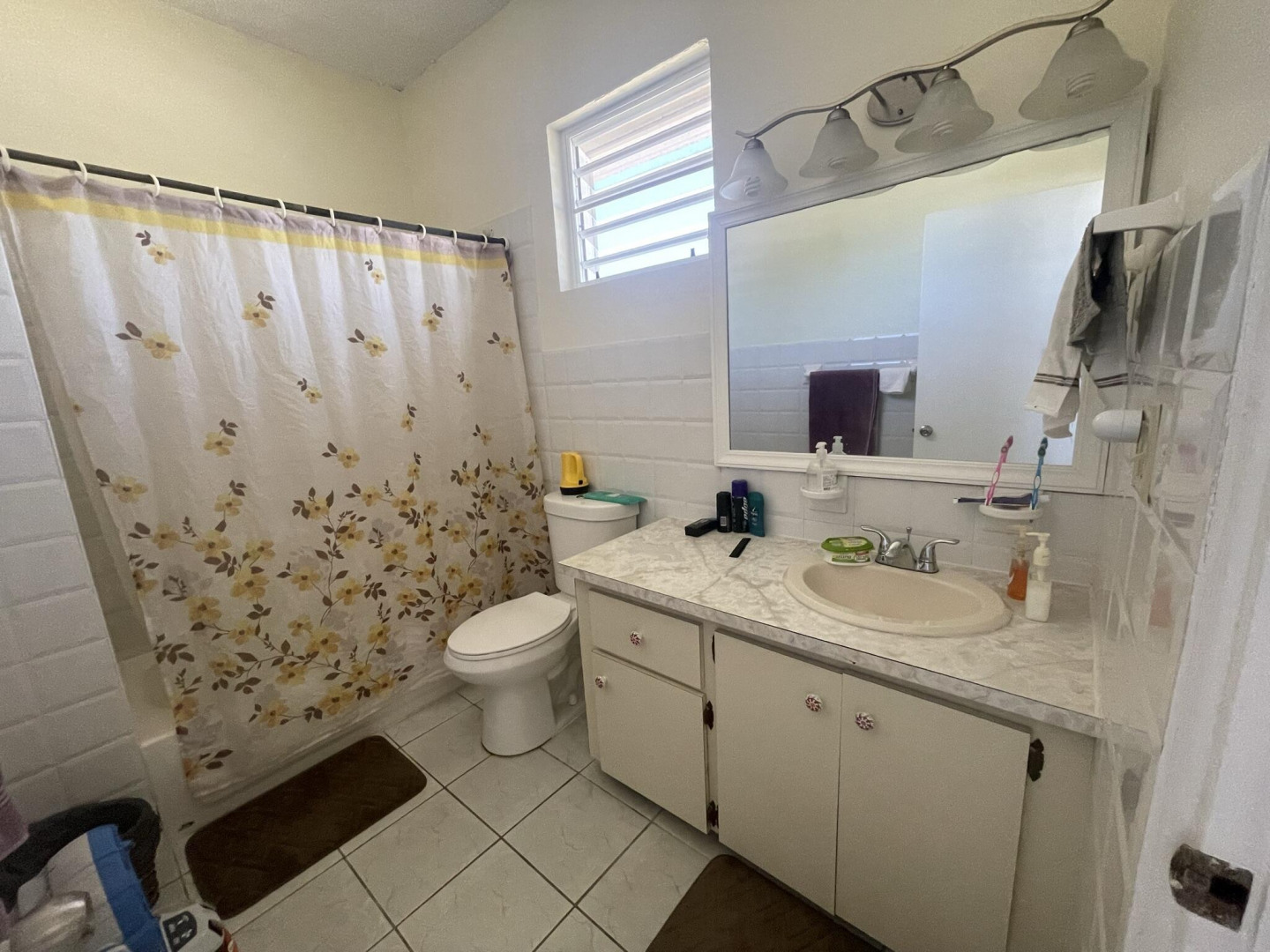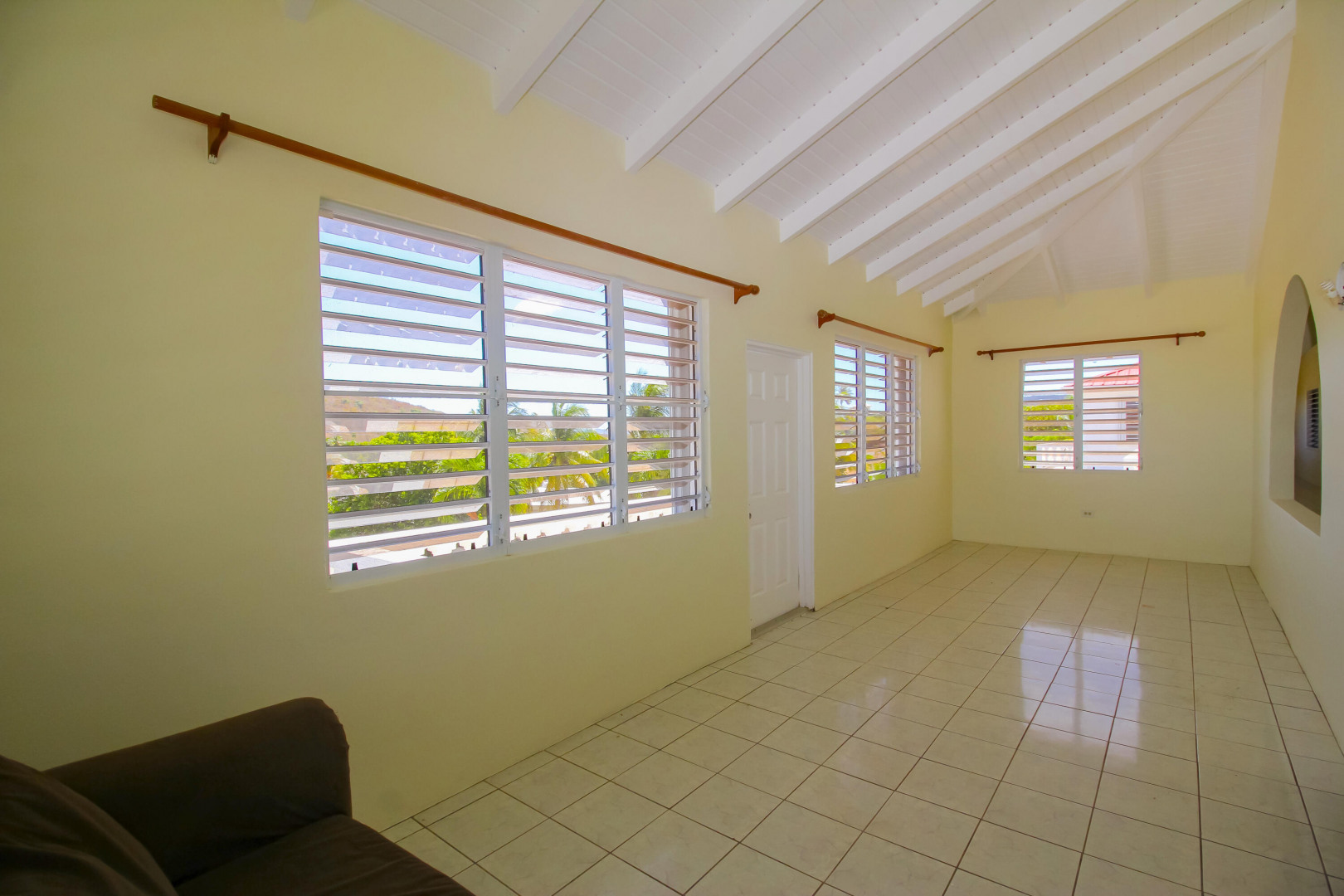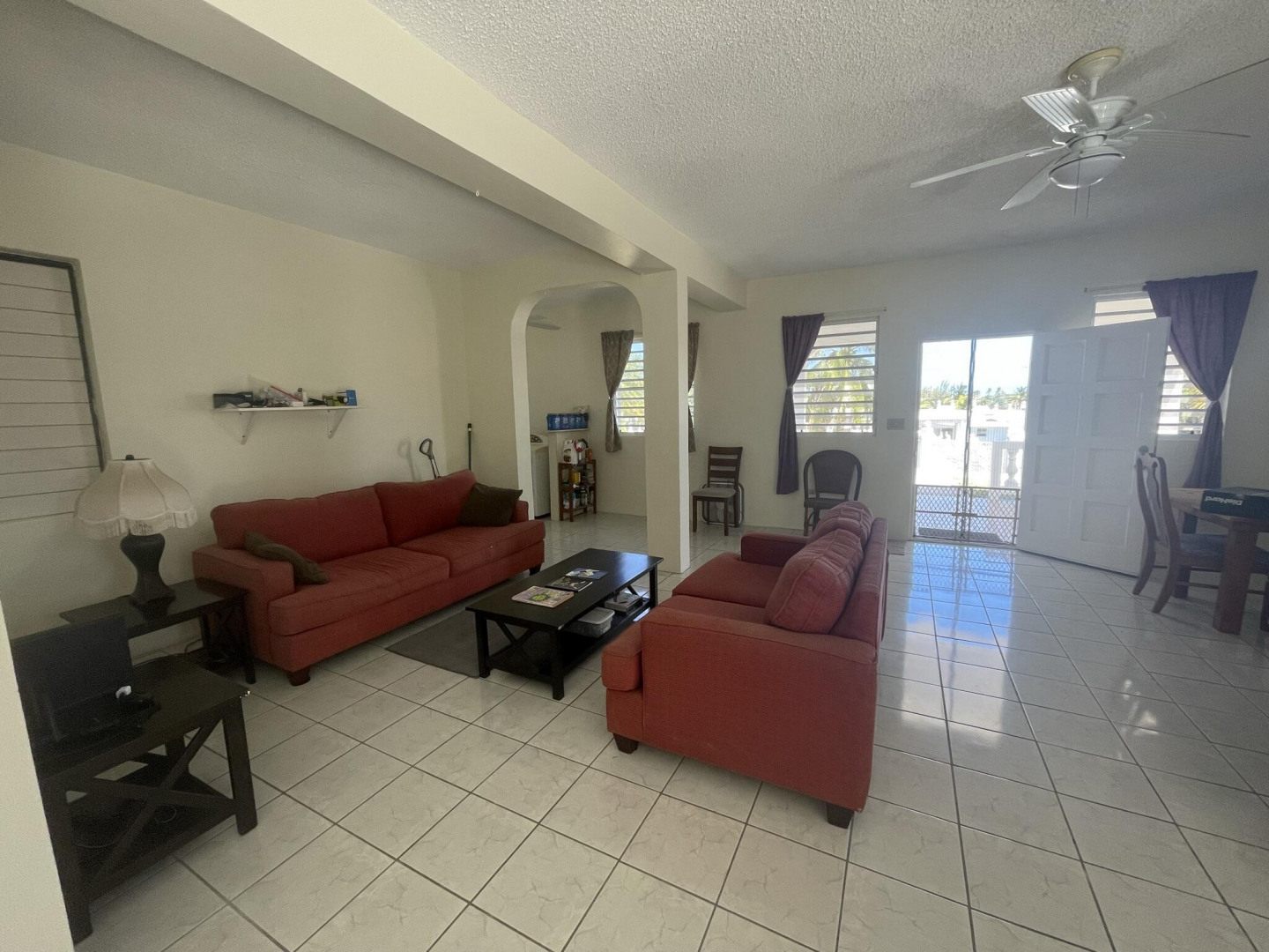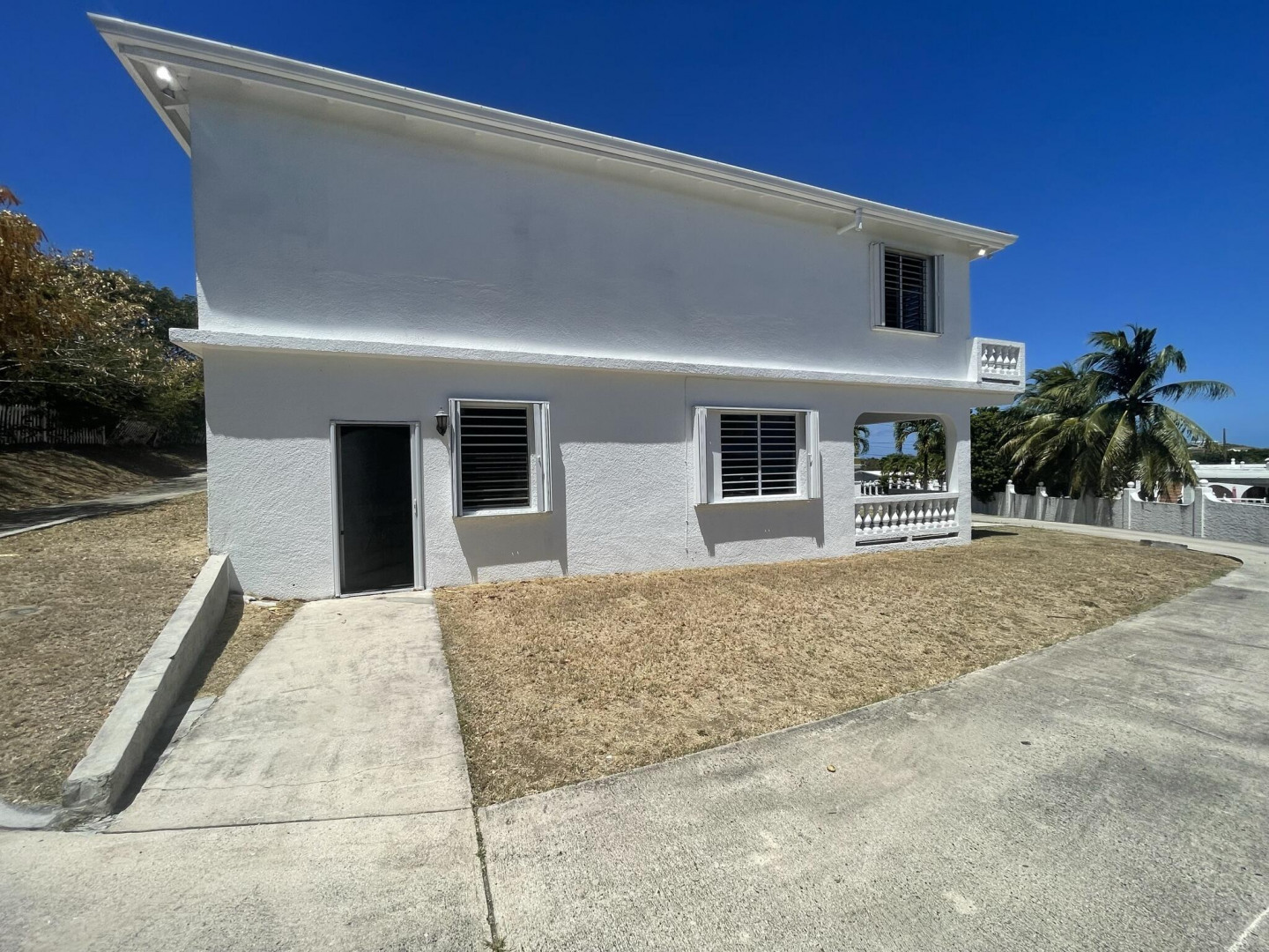 Immerse yourself in the gentle Caribbean breezes at this expansive and built to last concrete home. The main house features four bedrooms and three bathrooms upstairs, along with a separate one bedroom, one bathroom apartment. Two spacious garages, a storage area that doubles as a 'hurricane room,' and a pool room complete the lower level. The house stays cool thanks to high soaring ceilings and cross-ventilation, with recent A/C installations in all bedrooms for warmer days. Enjoy the open floor plan, a large kitchen equipped with new appliances, various galleries, subdivided sunrooms offering glimpses of the ocean, a patio, and an upstairs pool perfect for family gatherings and entertaining. The property includes a level lawn ideal for children and pets to play freely.