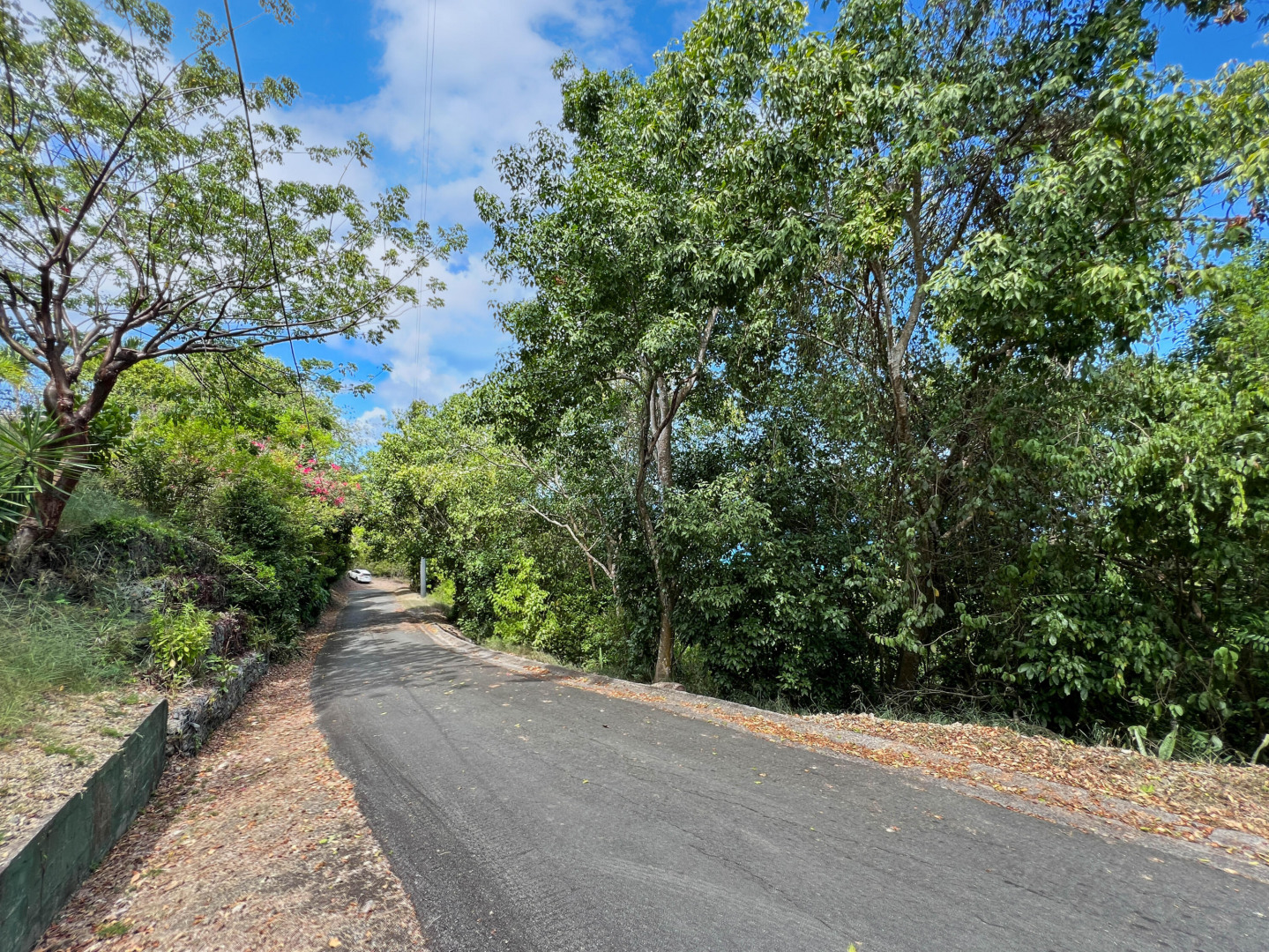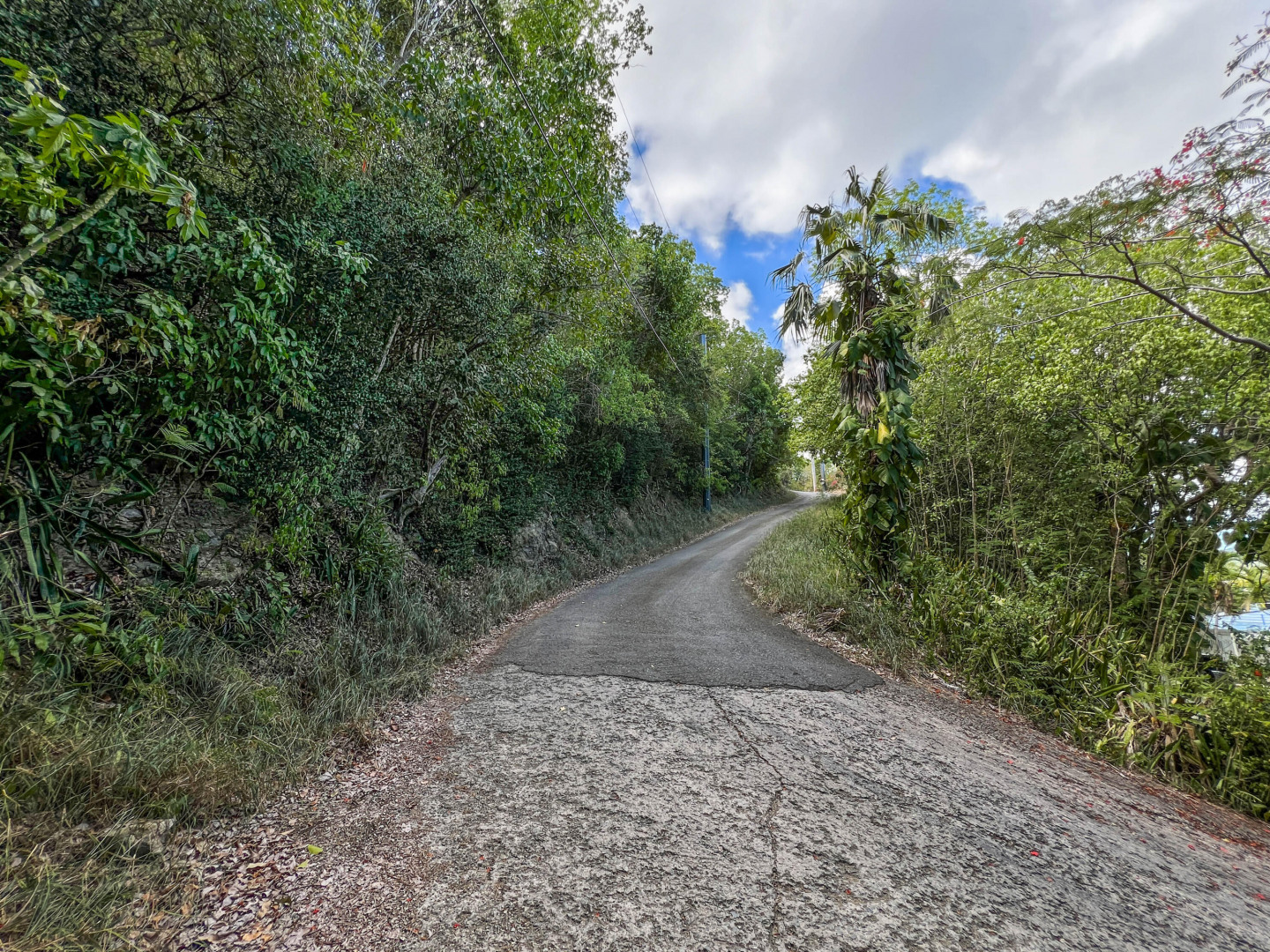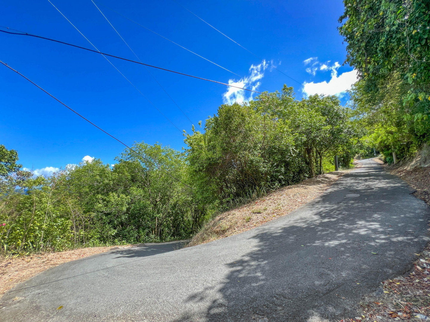 Wonderful North Shore lot with amazing views of the blue Caribbean Sea located near popular and beautiful Cane Bay! This triangular shaped lot with northern orientation invites cooling breezes and spectacular views of the neighboring islands. It's conveniently bordered by two paved roads with power poles. Although it's a steep lot, there is a flat area for your home. Nearby, are renown restaurants, beautiful sandy beaches, scuba diving, snorkeling, horse back riding, live music, and more.