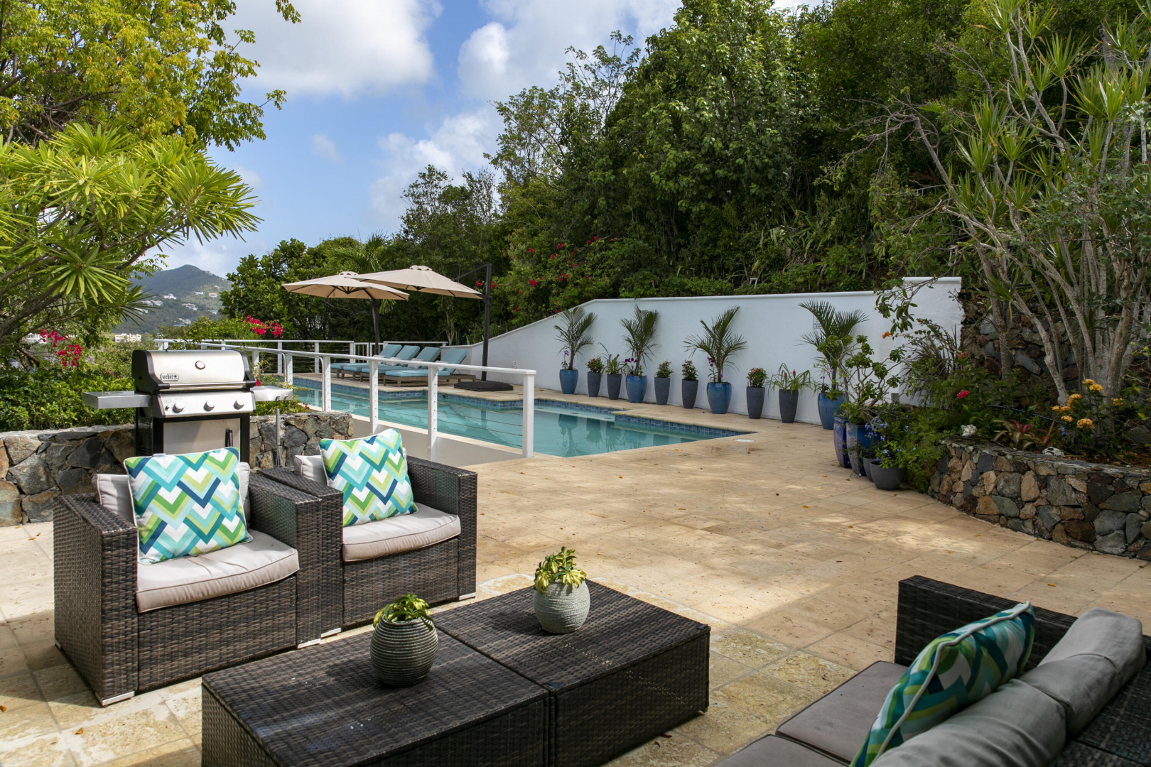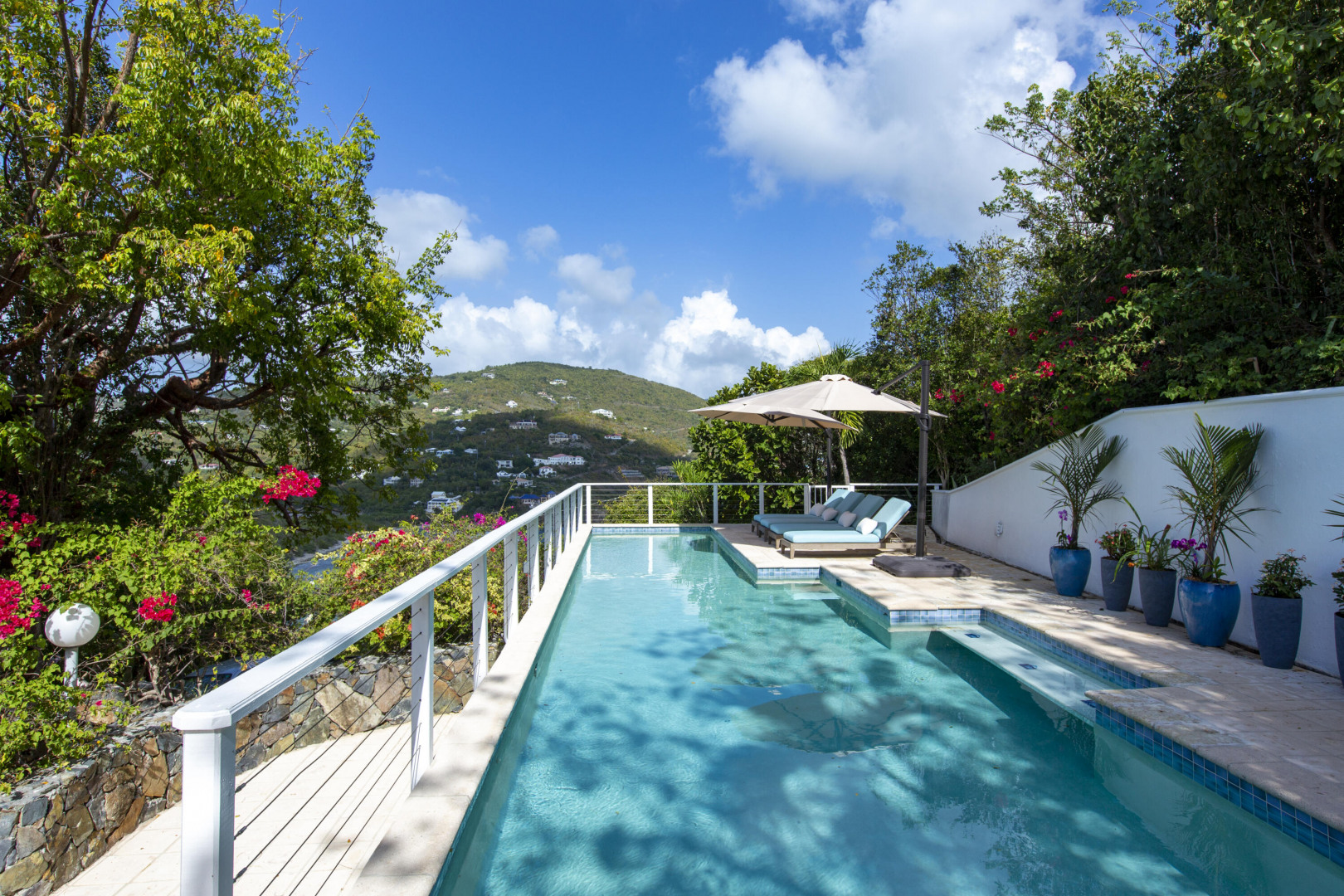 Enjoy spectacular year round sunsets and watch the boats pass by from your private decks surrounded by lush tropical greenery at Moondance Villa. This popular and successful rental villa rented over 32 weeks in 2021 and is on track to rent even more in 2022. Located in desirable Chocolate Hole with unparalleled panoramic views, Moondance Villa brings together stylish island decor with modern amenities, privacy, and a 50' pool featuring brand new Restoration Hardware pool lounges, umbrellas and more. Currently rented as a 4 bedroom with 4 Master ensuite bedrooms and an open floor plan, there is space for everyone to relax in privacy and gather in luxury.