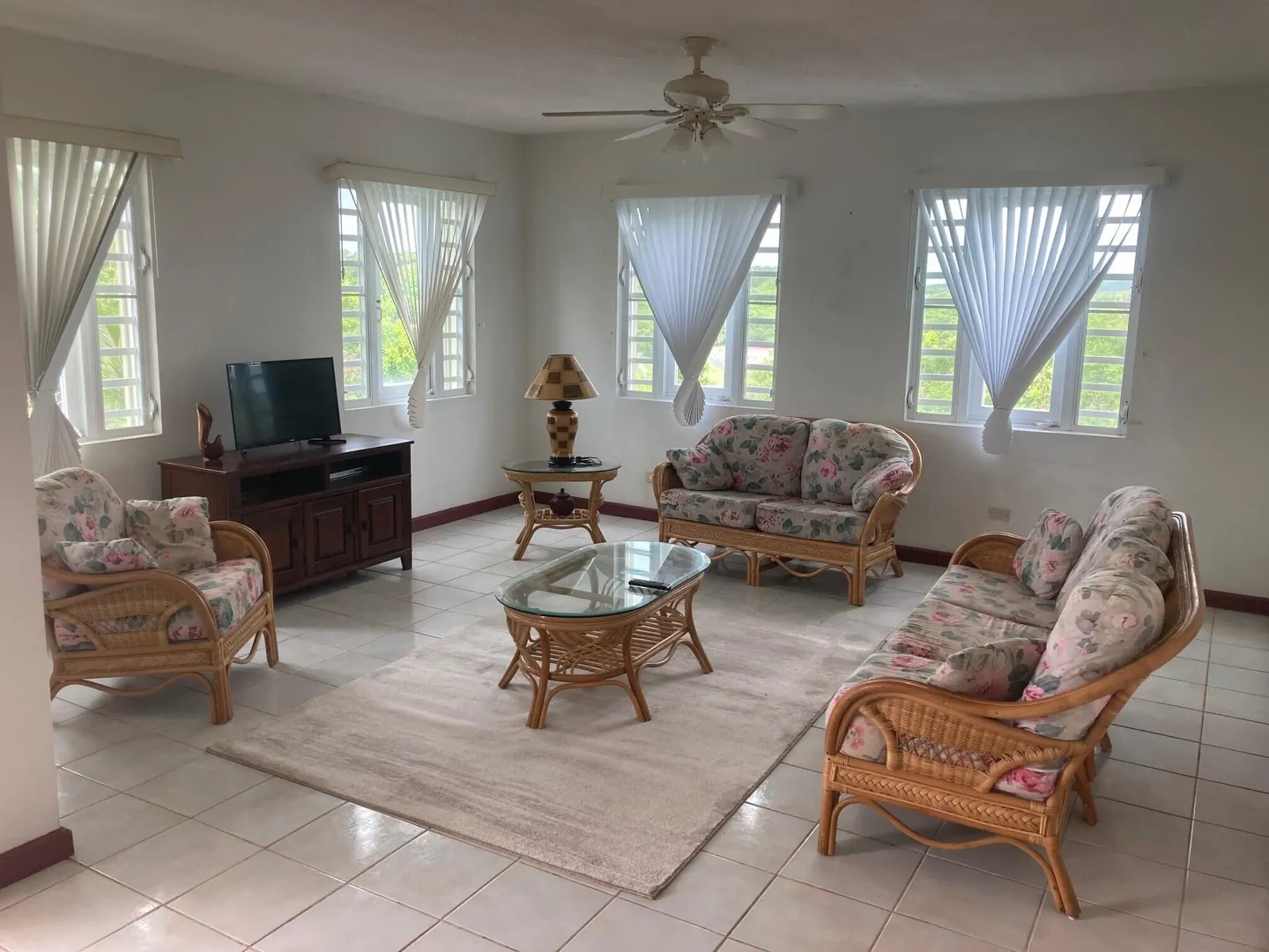 This large and charming 1 bedroom, 1 bath apartment idealizes comfort with its island breezes and open-air concept. With lots of natural light, it offers a full kitchen, washer/dryer, and all necessities. Great mid-island. Close to Sunny Isle Shopping Center, Juan F. Luis Hospital and Medical Center, and a short drive to downtown Christiansted. Rent includes high-speed internet, Dish, and electricity (credit of $100, tenant to pay exceeding amount for electricity). Water usage is metered. AC in the bedroom and generator back-up.