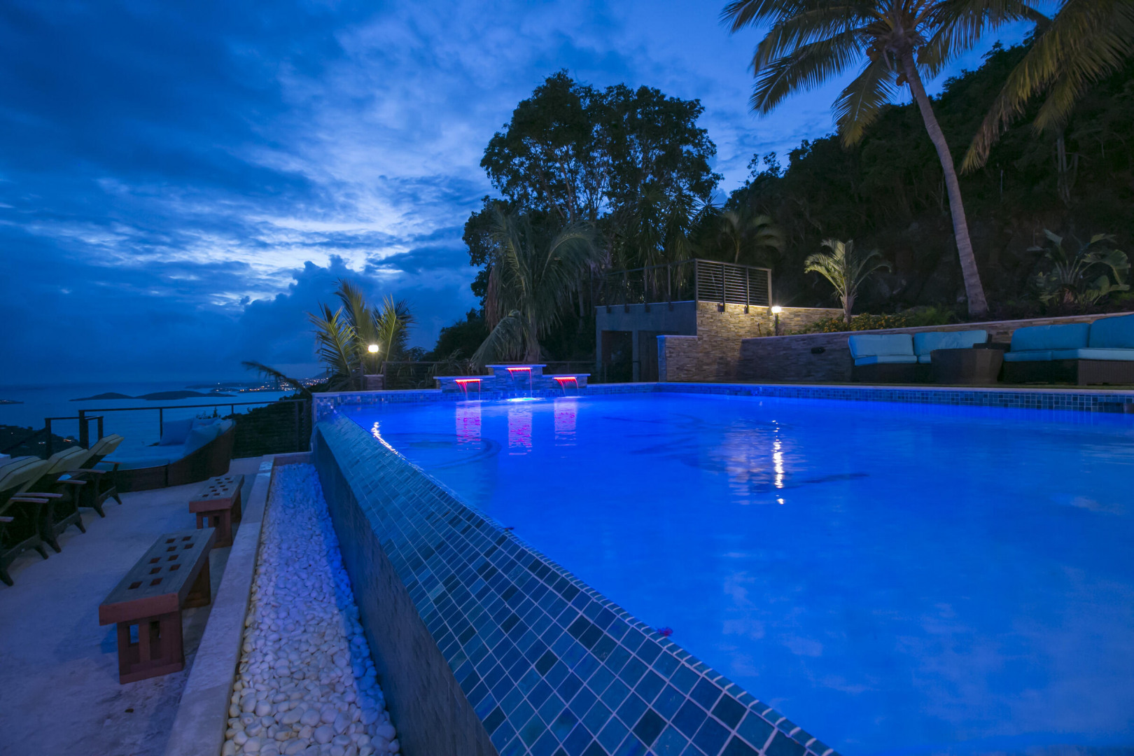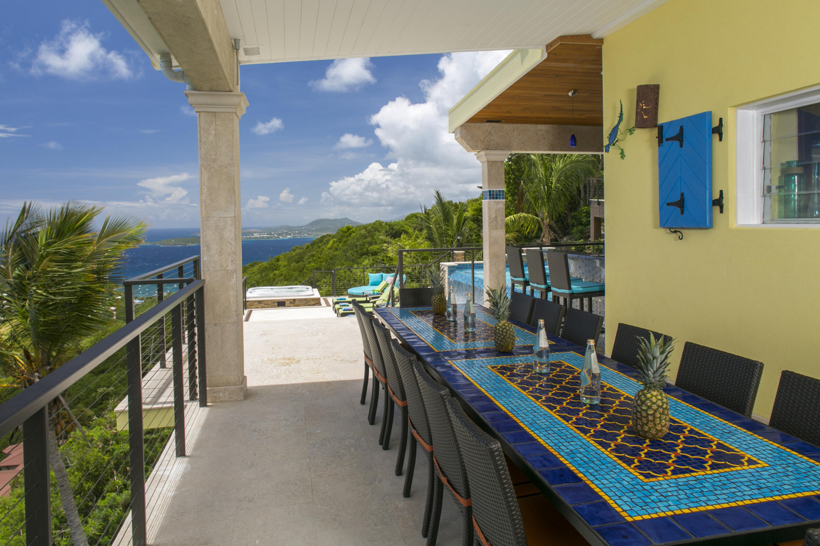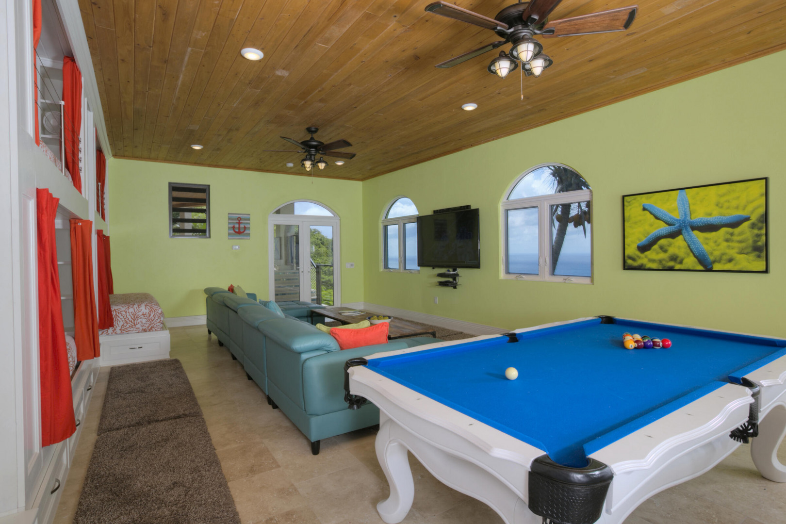 DEJA VIEW, the villa of your dreams. Resting on the hilltop above Rendezvous Bay, this incredible 6 bedroom luxury home is unlike anything on St John. At the end of a private road, the extremely successful rental boasts 5,000 sq. feet outdoor living area with resort style ambiance, an oversized infinity pool + 3 waterfalls. The amenities are endless including 72 solar panels, coral stone decks, an outdoor kitchen, pool & ping pong tables + a Jacuzzi crow's nest overlooking the turquoise waters below. With the recent addition of an 800 sq ft Bunk/Game room, the villa comfortably sleeps 21 people, providing the perfect location for an array of vacationers. Deja offers everything one could dream of in the perfect residence or investment property, with an impressive income statement!
