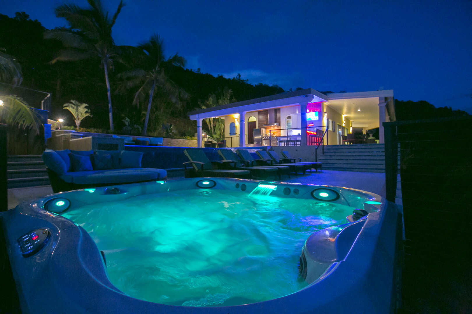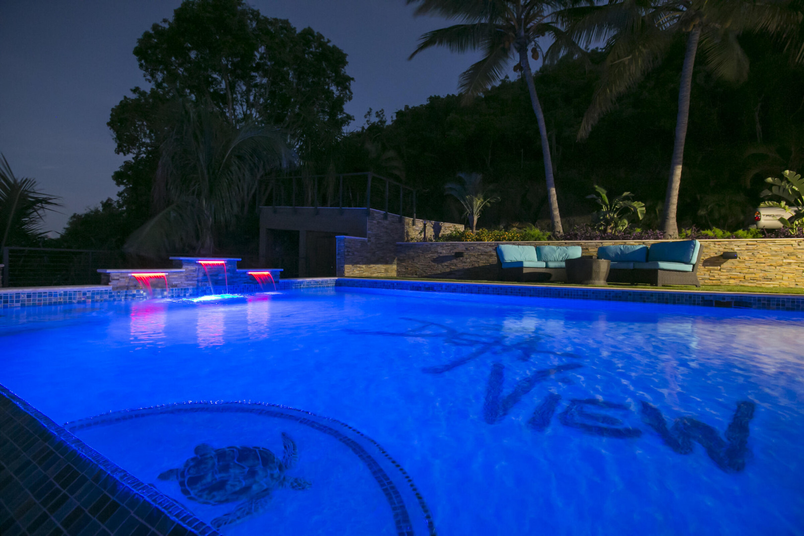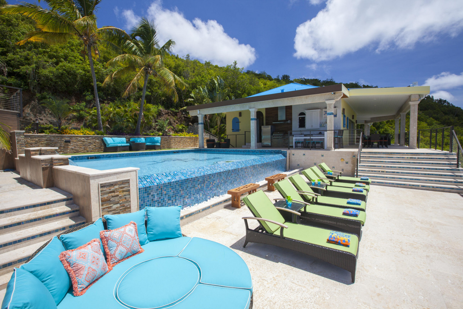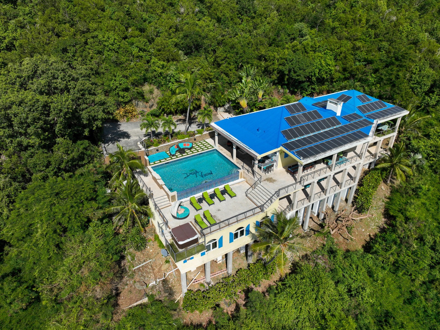 DEJA VIEW, the villa of your dreams. Resting on the hilltop above Rendezvous Bay, this incredible 6 bedroom luxury home is unlike anything on St John. At the end of a private road, the extremely successful rental boasts 5,000 sq. feet outdoor living area with resort style ambiance, an oversized infinity pool + 3 waterfalls. The amenities are endless including 72 solar panels, coral stone decks, an outdoor kitchen, pool & ping pong tables + a Jacuzzi crow's nest overlooking the turquoise waters below. With the recent addition of an 800 sq ft Bunk/Game room, the villa comfortably sleeps 21 people, providing the perfect location for an array of vacationers. Deja offers everything one could dream of in the perfect residence or investment property, with an impressive income statement!