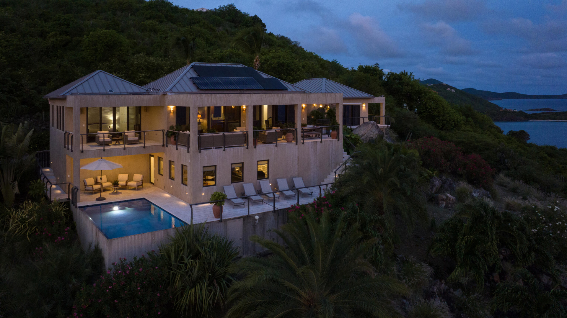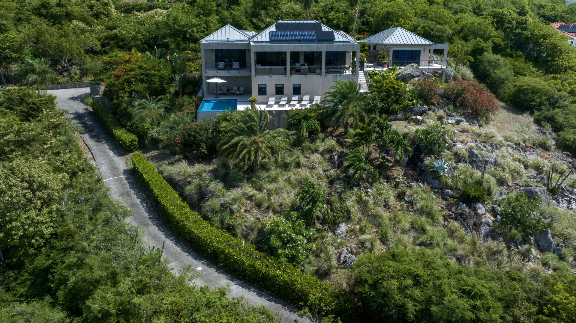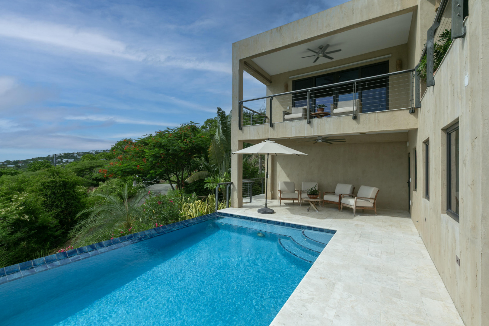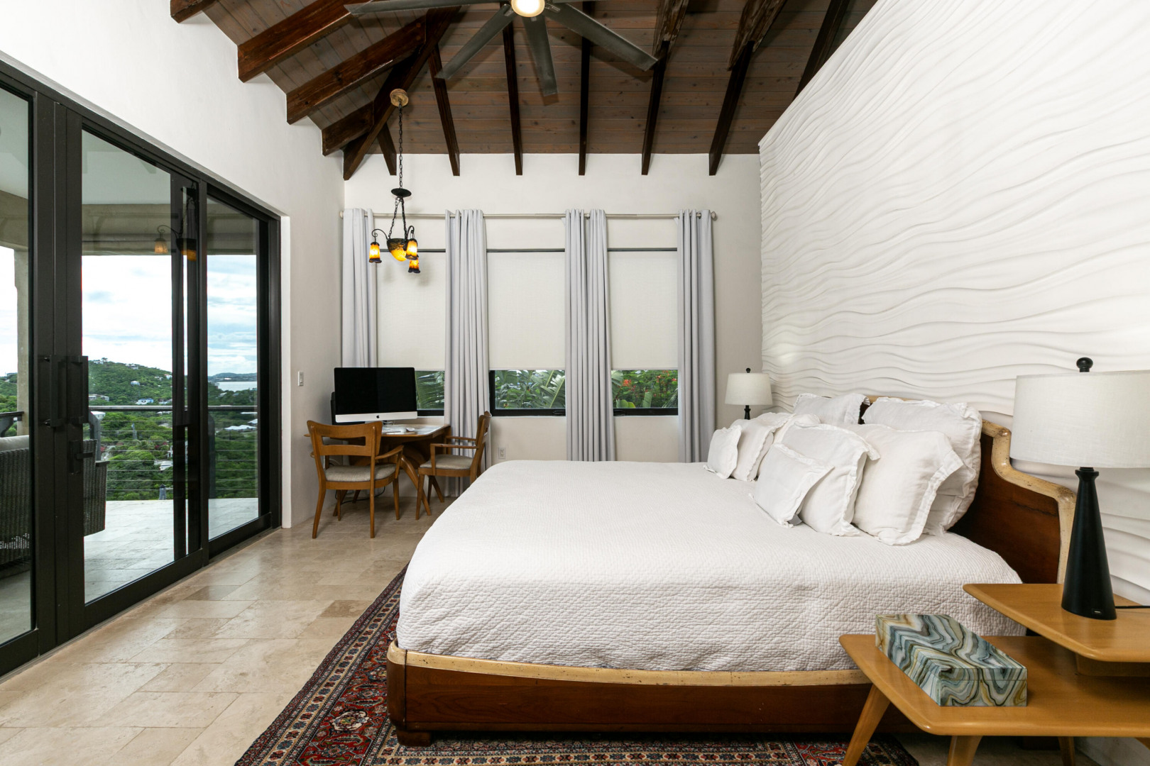Blue View Villa, a stunning new property built in 2019, exuding a classic soft modern Caribbean style. This exceptional home is perched on a spacious plot, offering panoramic views from sunrise over the serene Ram's Head to sunset over the majestic St. Thomas. With three oversized bedrooms and en-suite bathrooms, each designed with ample space and the flexibility to convert to a 4 bedroom villa. Blue View Villa caters to both comfort and functionality, equipped with solar panels and Tesla Batteries. Located just minutes from Cruz Bay and with private neighborhood beach access within walking distance. Blue View Villa is ideally set up to operate as a vacation rental, though it is tempting to move right in!