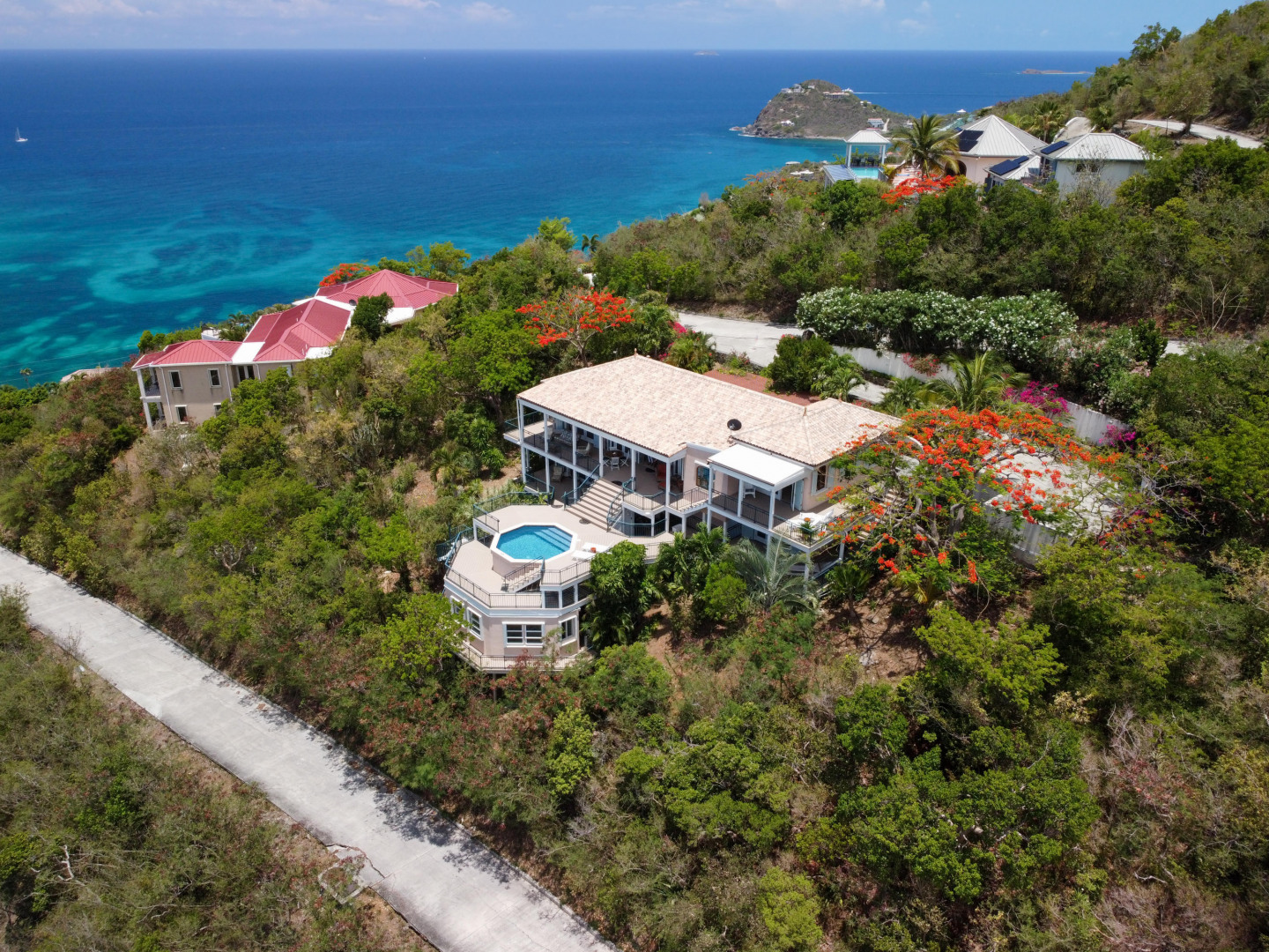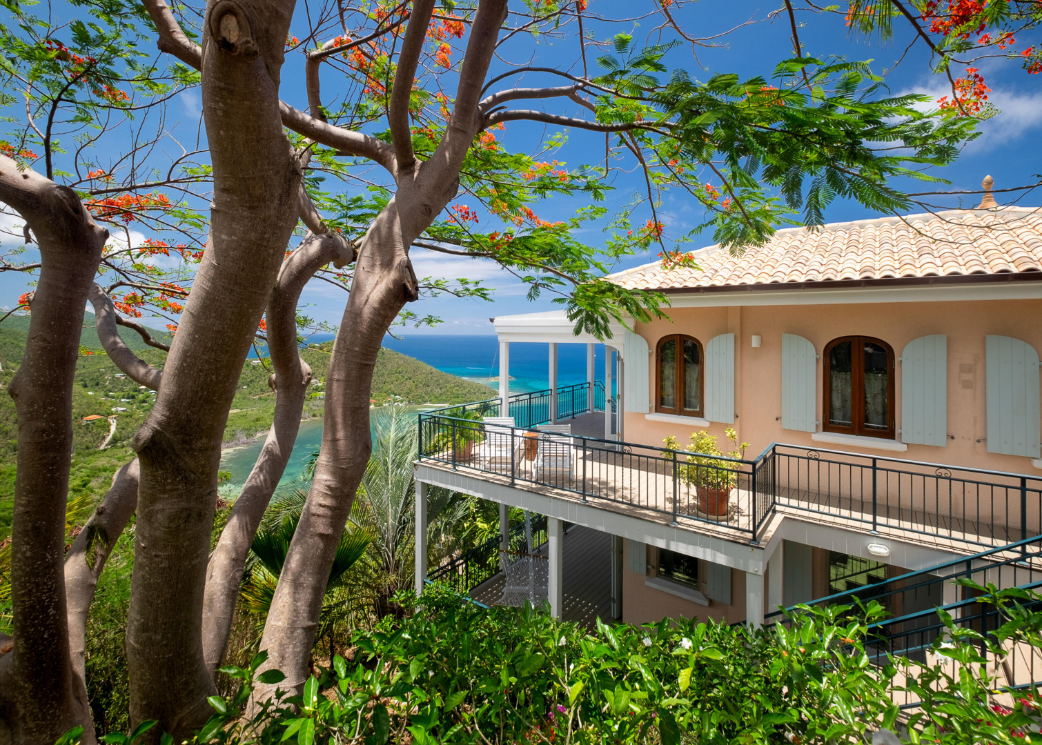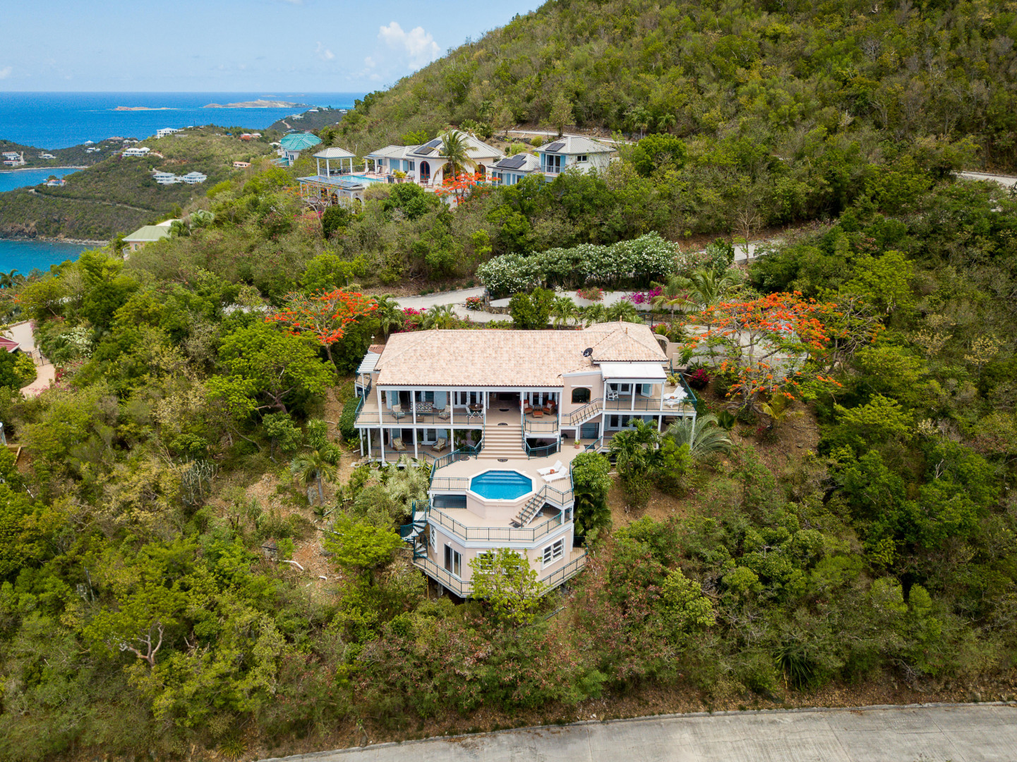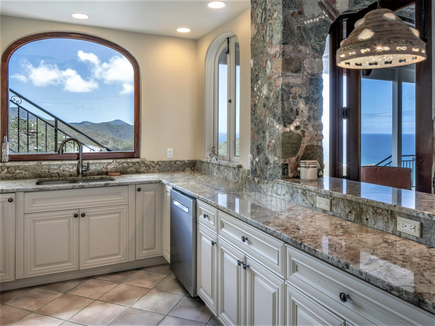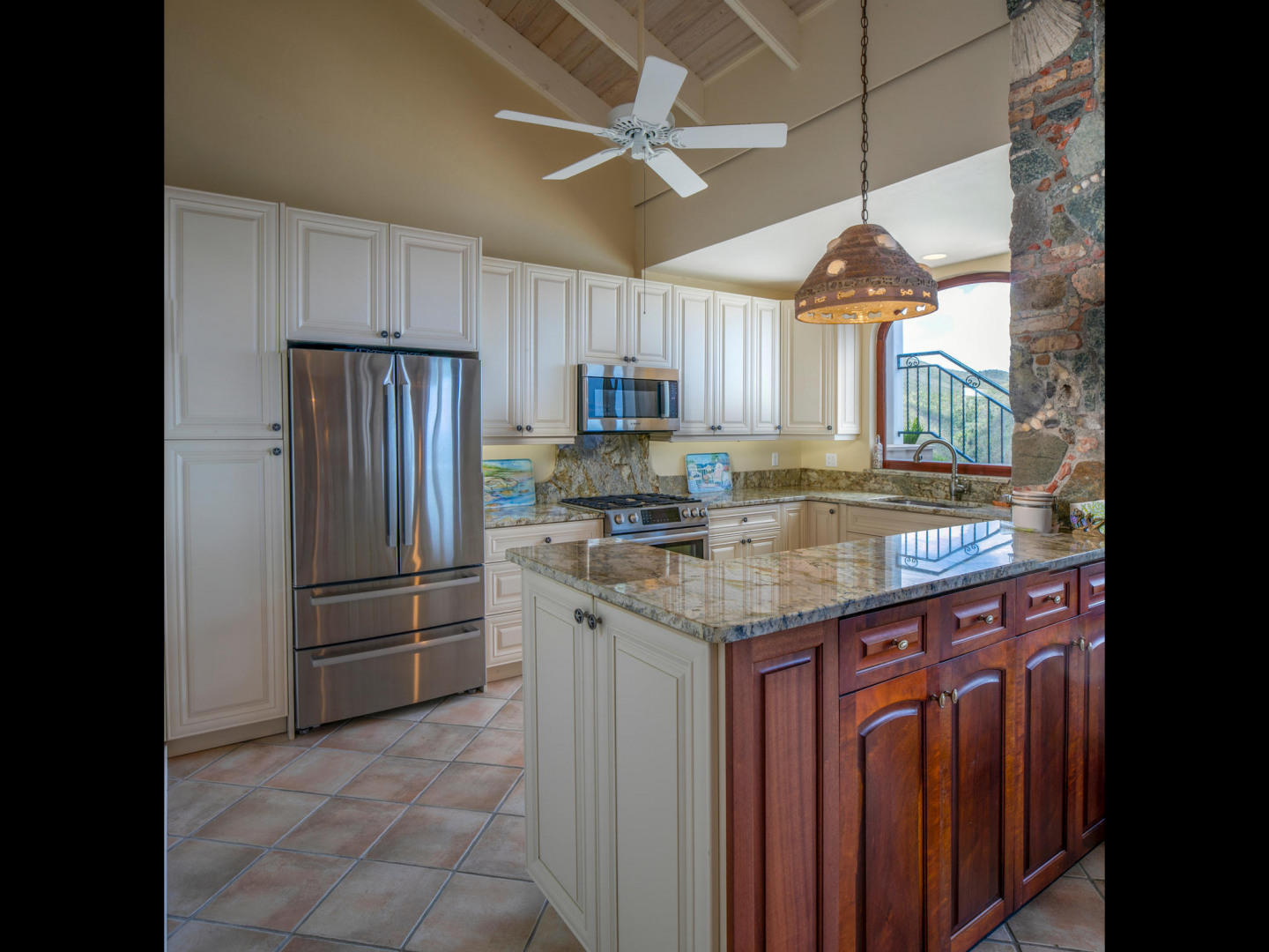 This beautifully-designed hillside villa offers stunning views, tropical breezes and relaxation for the whole family to enjoy. Enter the open-air great room with exquisite native stonework and mahogany/glass doors which open to the covered veranda, pool and pool deck, and enjoy the dramatic vistas beyond. Recent updates include new French tile roof, spacious decks with custom railings, a new kitchen with granite countertops and stainless appliances, and fresh paint throughout. Villa Windsong - 5 bedrooms, 4.5 baths, including a comfortable apartment - has most recently served as a much-loved private home, but could easily resume its former life as a comfortable high-end vacation rental