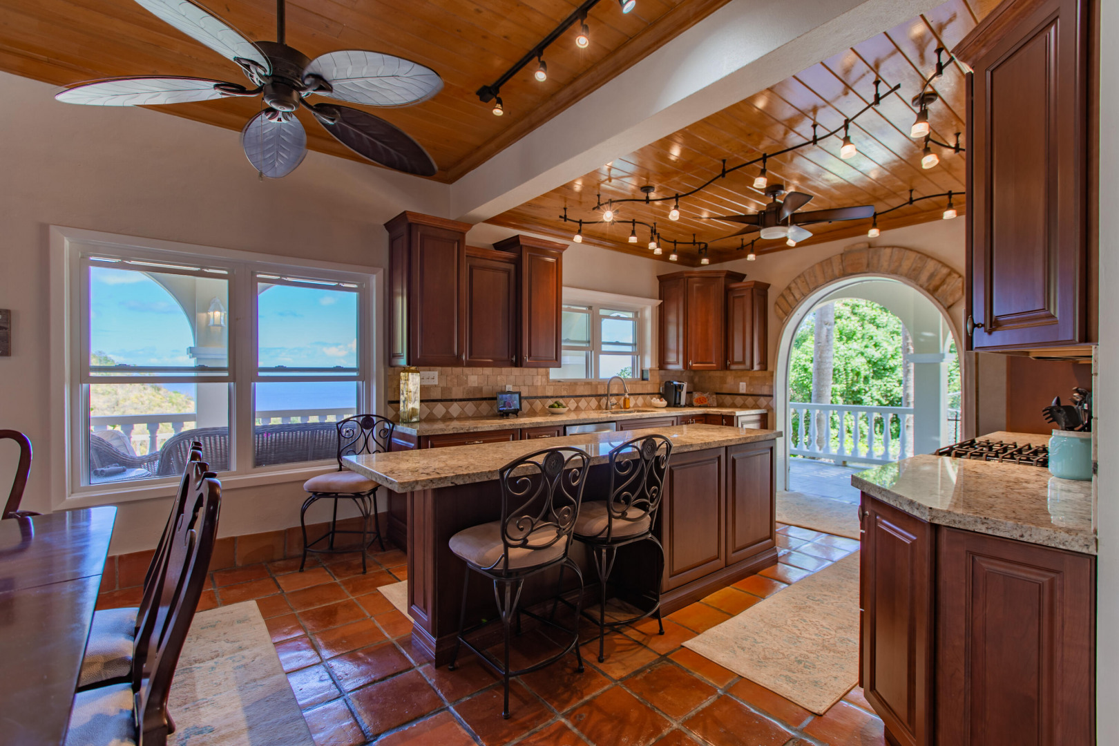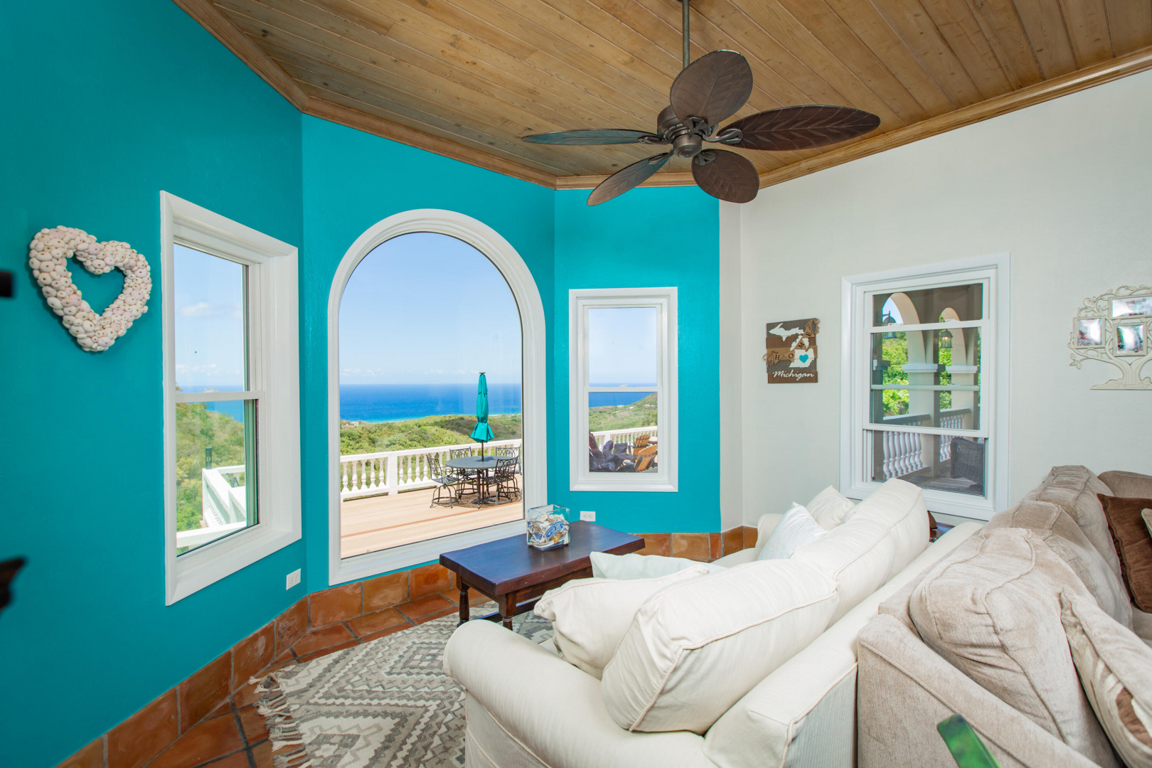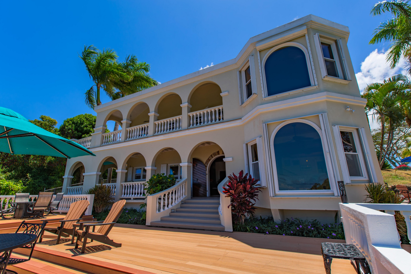 Backup offers encouraged as current offer has sale contingency- This stunning two-story Northshore home is really one of a kind! The property boasts GORGEOUS Caribbean views and offers refreshing breezes year-round. The owners have meticulously maintained the home and most furnishings will convey making this a true turnkey opportunity! The main home consists of 3 bedrooms 2.5 baths with plenty of room for entertaining family and friends. The remodeled kitchen is a true show stopper with updated appliances, solid cherry cabinets and granite countertops. Enjoy the special custom touches throughout including several double archway doors. A large composite deck overlooking the lush Northshore hills and Caribbean Sea allow you to view neighboring islands on clear days.