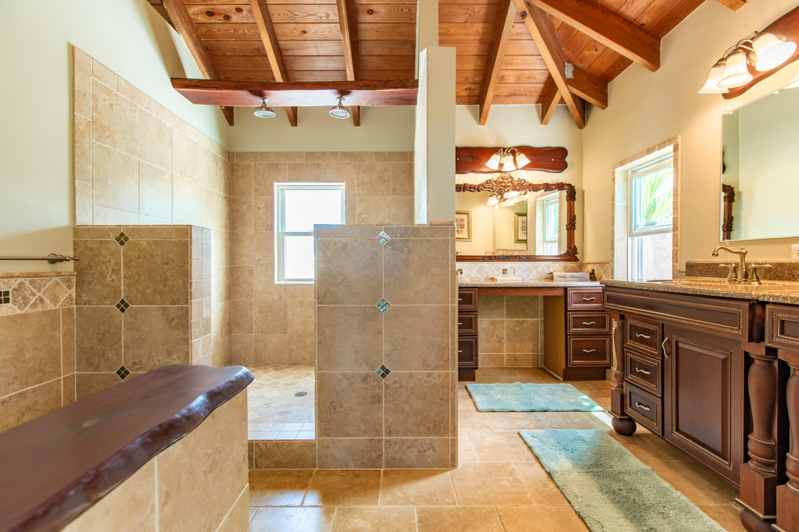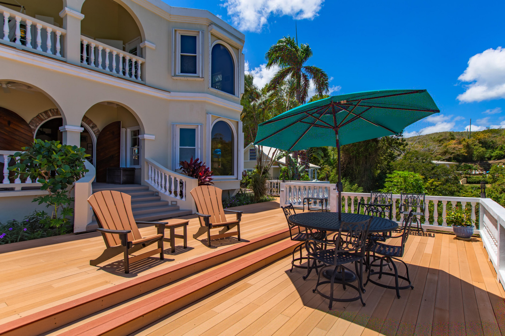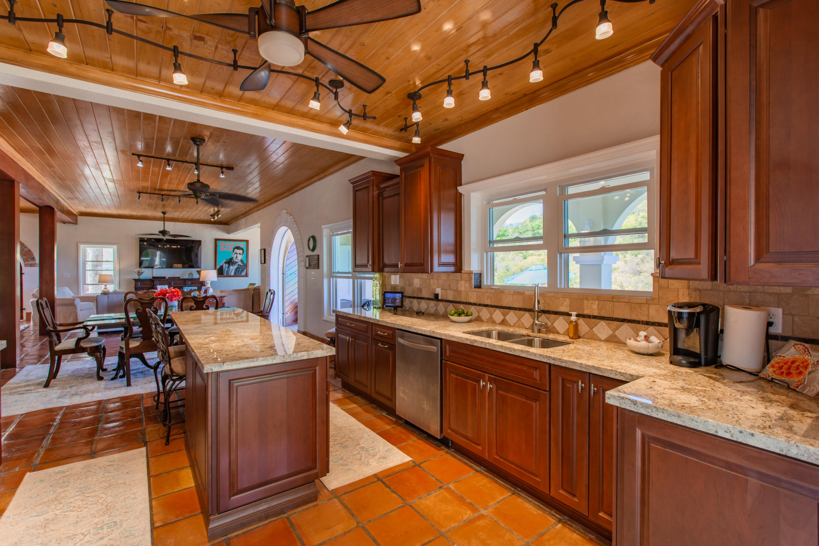 Backup offers encouraged as current offer has sale contingency- This stunning two-story Northshore home is really one of a kind! The property boasts GORGEOUS Caribbean views and offers refreshing breezes year-round. The owners have meticulously maintained the home and most furnishings will convey making this a true turnkey opportunity! The main home consists of 3 bedrooms 2.5 baths with plenty of room for entertaining family and friends. The remodeled kitchen is a true show stopper with updated appliances, solid cherry cabinets and granite countertops. Enjoy the special custom touches throughout including several double archway doors. A large composite deck overlooking the lush Northshore hills and Caribbean Sea allow you to view neighboring islands on clear days.