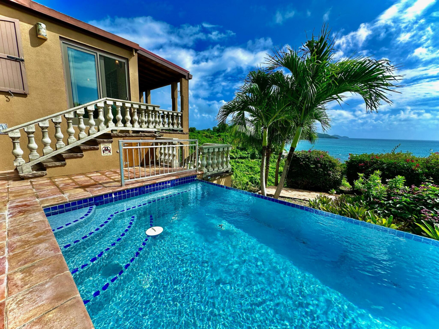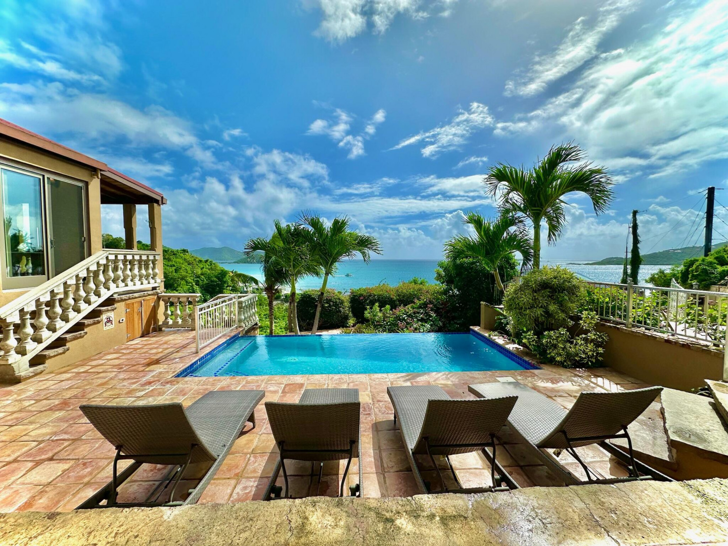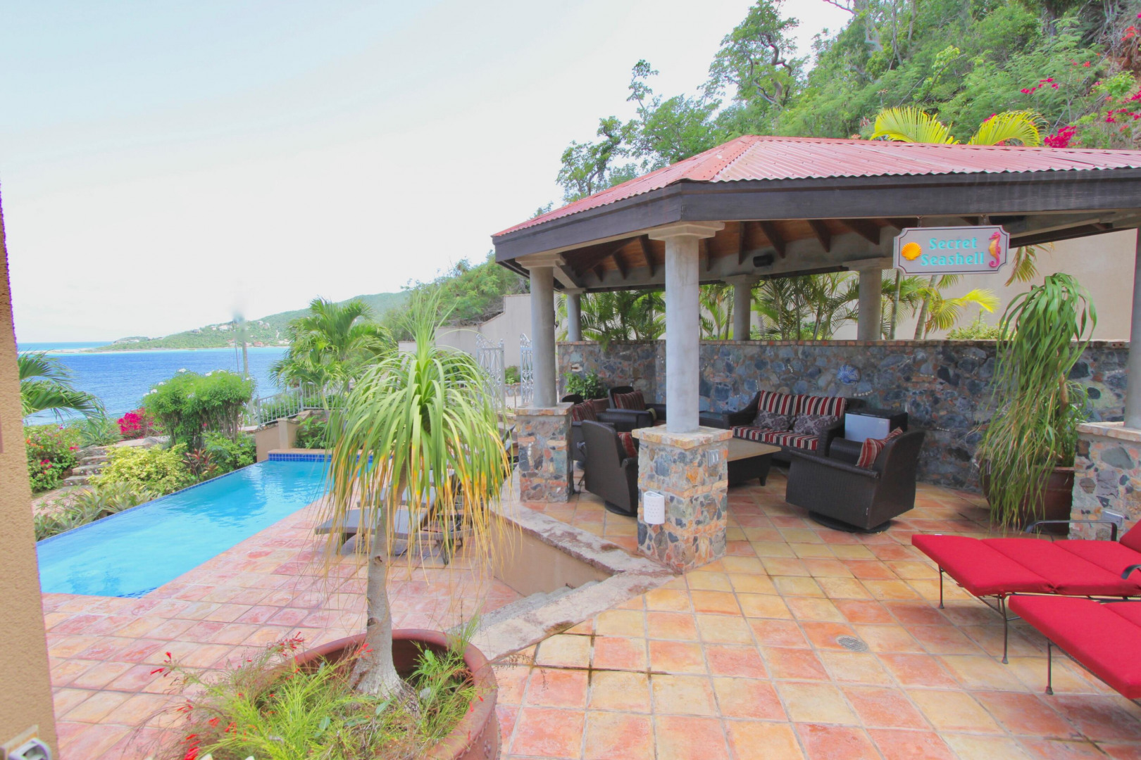 Listen to the waves crash just below from this private all masonry pool villa with big views over Coral Bay and beyond. 3 bedroom 3 1/2 bath St John villa rental with tons of space, infinity pool, private location and so much more! Expansive views from every room, stunning pool patio, gated privacy and luxury is everything you want in a St John Villa. Room to expand with plans for 2 more bedrooms for the ultimate private estate. Owner is professional concrete builder and overbuilt this home to be storm safe. !!PRICE REDUCED!!