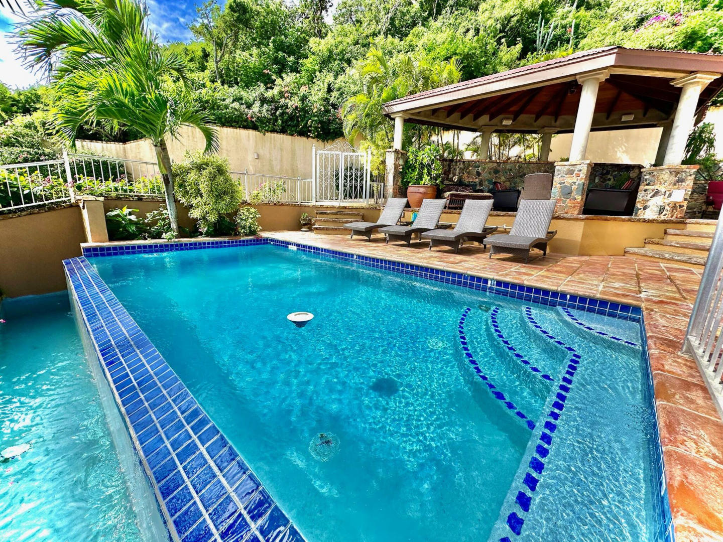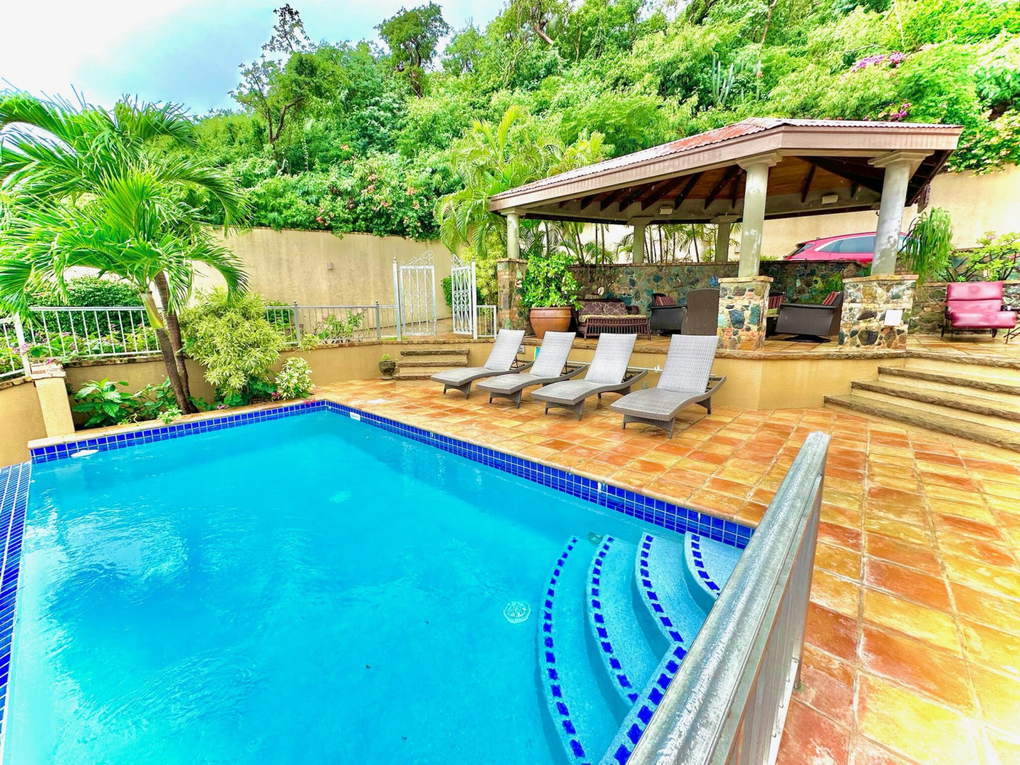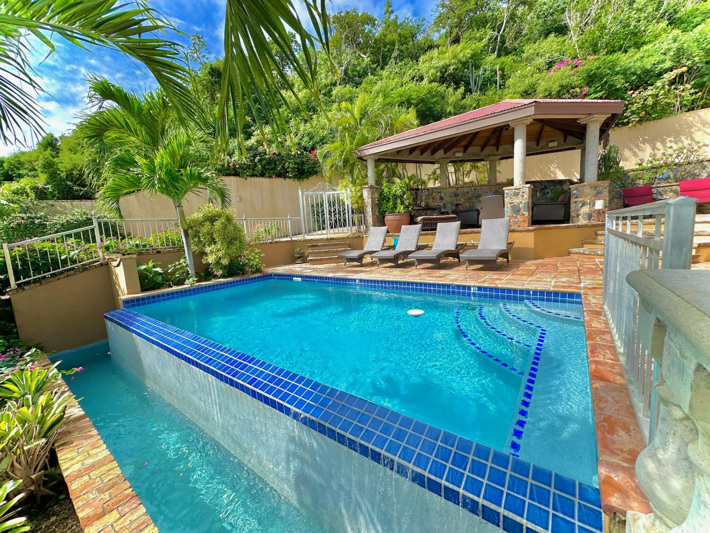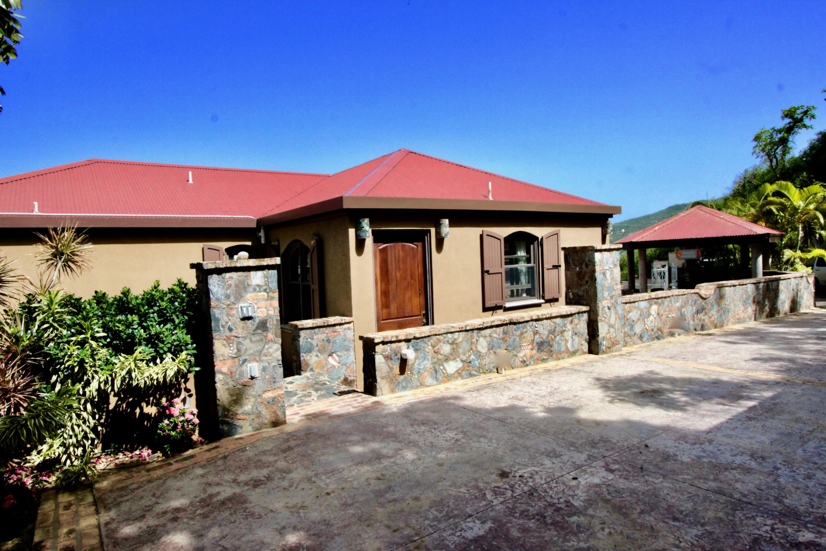 Listen to the waves crash just below from this private all masonry pool villa with big views over Coral Bay and beyond. 3 bedroom 3 1/2 bath St John villa rental with tons of space, infinity pool, private location and so much more! Expansive views from every room, stunning pool patio, gated privacy and luxury is everything you want in a St John Villa. Room to expand with plans for 2 more bedrooms for the ultimate private estate. Owner is professional concrete builder and overbuilt this home to be storm safe. !!PRICE REDUCED!!