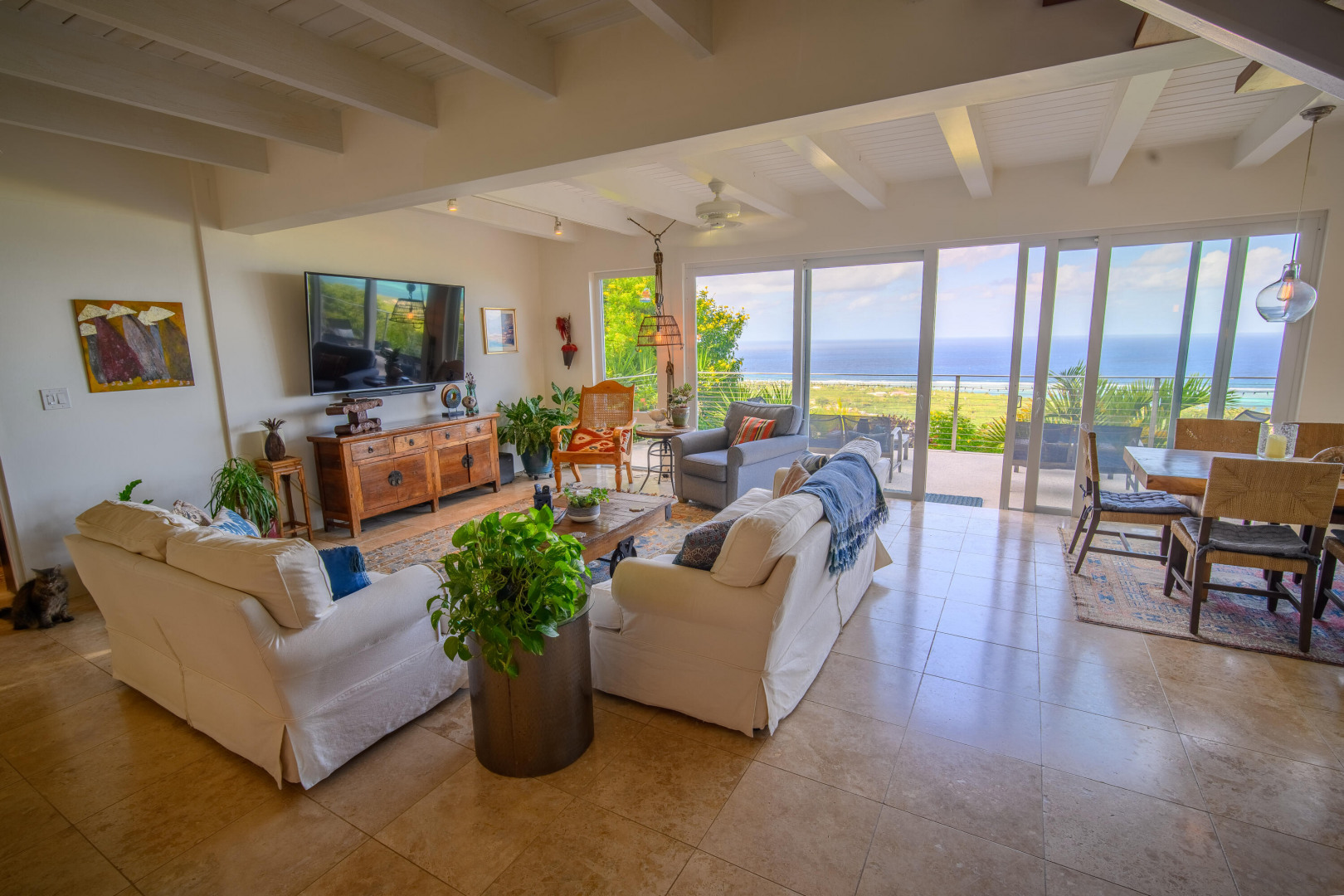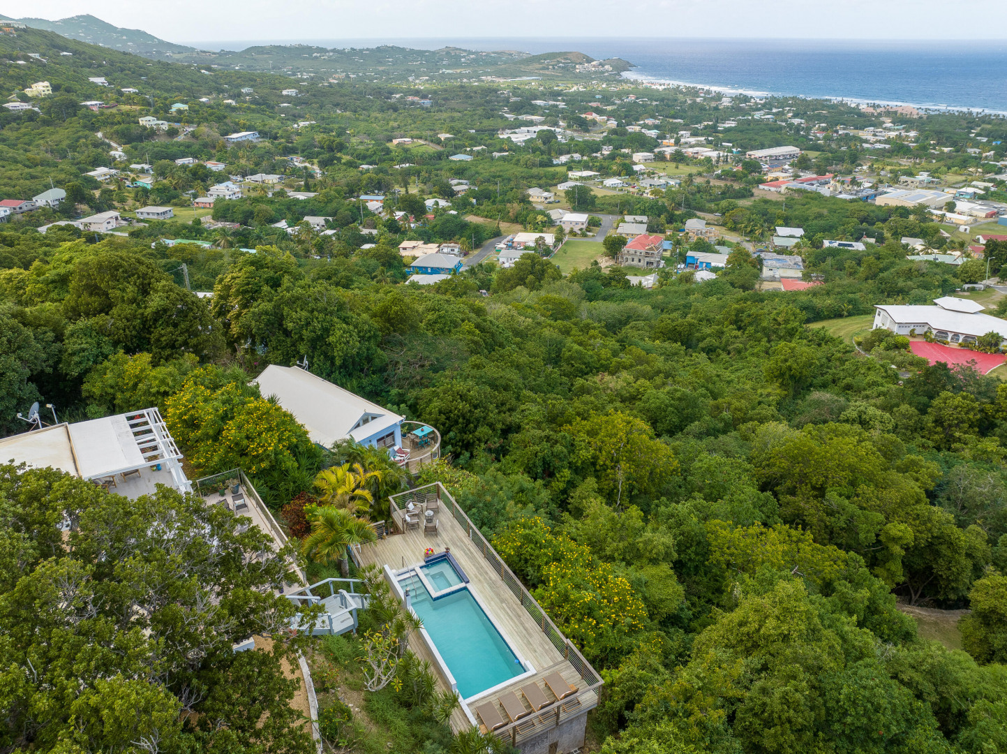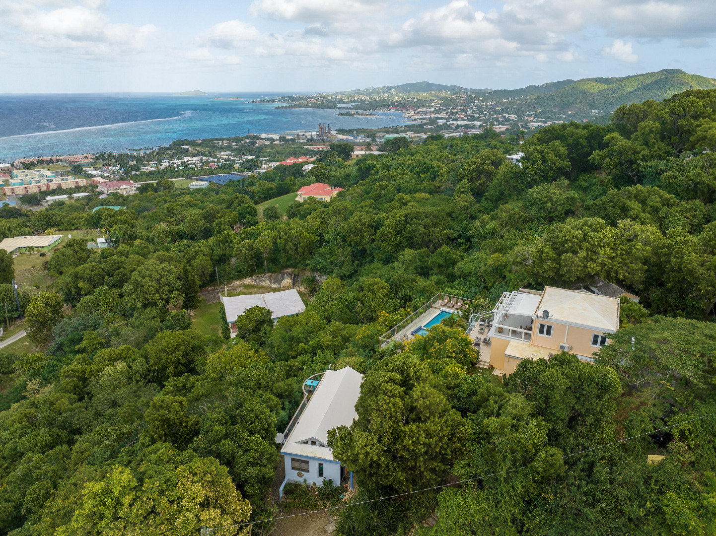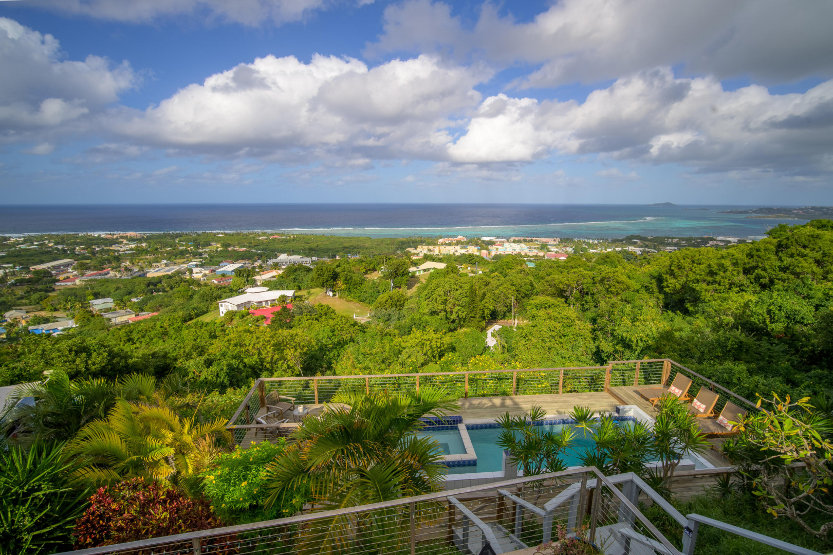Welcome to this stunning three bedroom, two and a half bath home, with a separate one bedroom guest house with sweeping views of the Caribbean. This mid island family compound was fully redesigned by Myrvang Architects Inc. The open floor plan is perfect for families and entertaining. The chef's kitchen and bathrooms have been gorgeously remodeled. The living and dining room open to a large gallery and seating area with views of the Caribbean and Buck Island. Tucked into the mature tropical landscaping, this home offers amazing outdoor living complete with a pool, hot tub, and alfresco dining, just perfect for relaxing and taking in the breathtaking views. The guest house is separately metered and would be a profitable rental property or an extra space for family or guests.