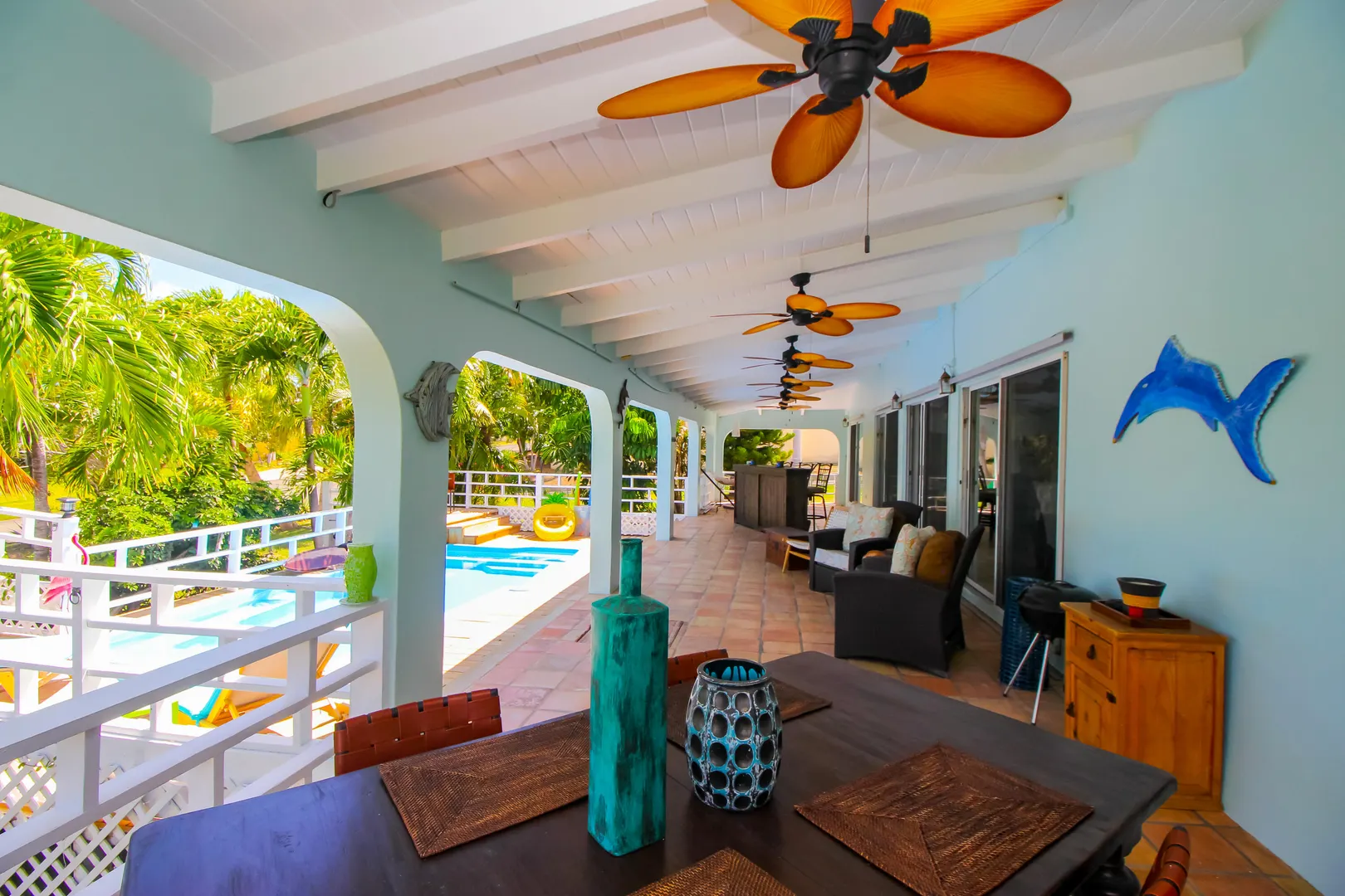 Welcome to, ''Hygge'', your island oasis! Fantastic home located in highly sought after east end neighborhood of Shoys. 3-bedrooms, 2-baths situated on a large lushly landscaped .71 acre corner lot. This home also features cathedral ceilings, large great room with kitchen and dining which opens onto a covered gallery , BBQ/bar area, hammock and pool. Laundry room, generator, and internet included. Property is adjacent to Shoys Beach and Buccaneer Resort. Shoys neighborhood offers 24 hr guarded/gated entrance. Home is fully furnished and ready to be enjoyed! Tenant is responsible for water and electricity.