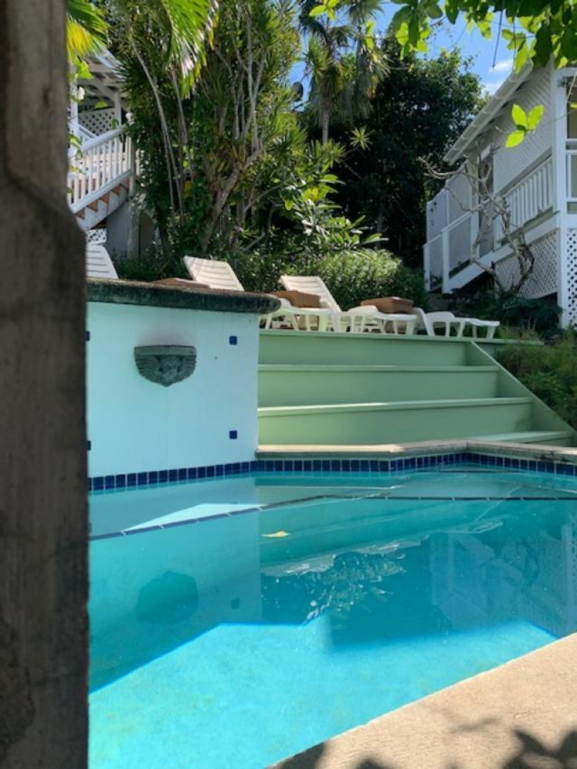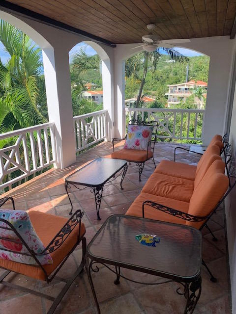 **Sale price did not include contents or rental business that were conveyed via Bill of Sale.*** Six Palms is an extensively updated and fully air conditioned, masonry 5br 4.5ba villa that is comprised of a 3br 2.5ba main house and a 2br 2ba guesthouse. The private and secluded location offers panoramic water and sunset views from Vieques to Lovango Cay. Each house has separate parking areas entries allowing houses to be used together or separately. There is also a dipping pool and sundeck. Great room and covered dining gallery features tropical hardwood floors and vaulted teak ceilings. Windstorm resistant windows and sliding glass doors in main house.Fantastic opportunity to rent together and separately, occupy one home and rent the other or occupy both homes. Walking distance to CruzSeller is licensed realtor.