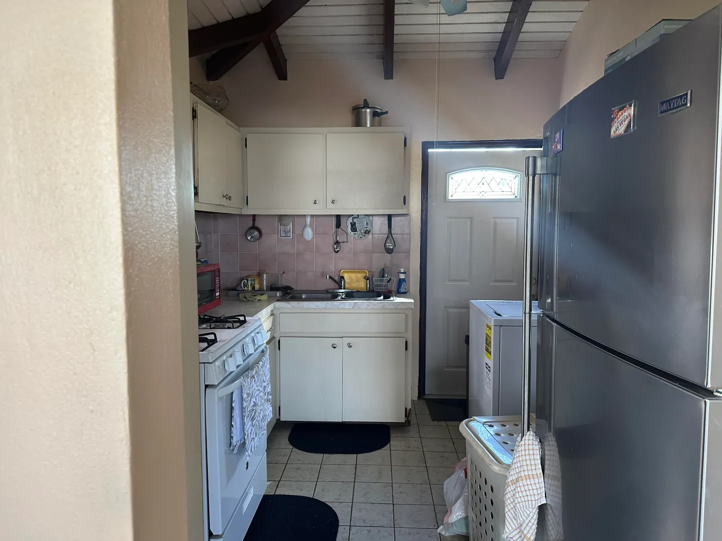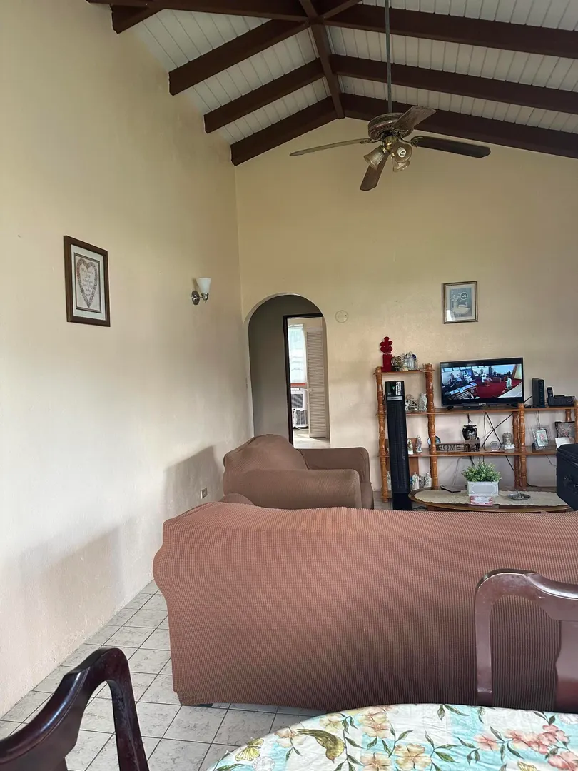 Comfy 3B/2B fully furnished house with high ceiling beams, completely fenced with large back yard, fruit trees, and off street parking. Tenant is responsible for landscaping. Utilities including cistern water are not included.