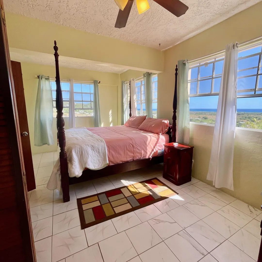 Ocean-view, gated, 1-bedroom apartment with split A/C, includes wi-fi, water, electricity, cable, lawn-care & trash pick up. Minutes walk to beach in a convenient location just minutes from Christiansted town. Private patio, sprawling lawn with fruit trees & parking. $100/MO flat WAPA fee. Small pets considered with non refundable fee.