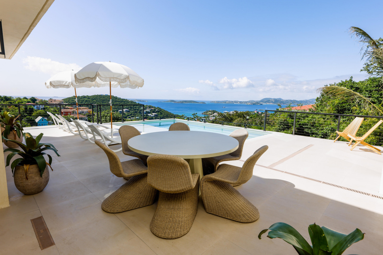 Nestled on a scenic hillside above Cruz Bay, SALTY ALIBI boasts panoramic sunset views and captures the essence of luxury living. This brand-new villa features 5 spacious bedrooms (4 kings + a bunk room), designer interiors, and breathtaking ocean vistas. Its proximity to vibrant Cruz Bay town creates an unparalleled oasis. With numerous rentals already secured for the upcoming season, this profitable investment property is truly exceptional. Enjoy low maintenance property with everything brand new, including solar panels and batteries for eco-friendly living. Salty Alibi proves to be a smart investment that pays for itself. Welcome to your dream home!