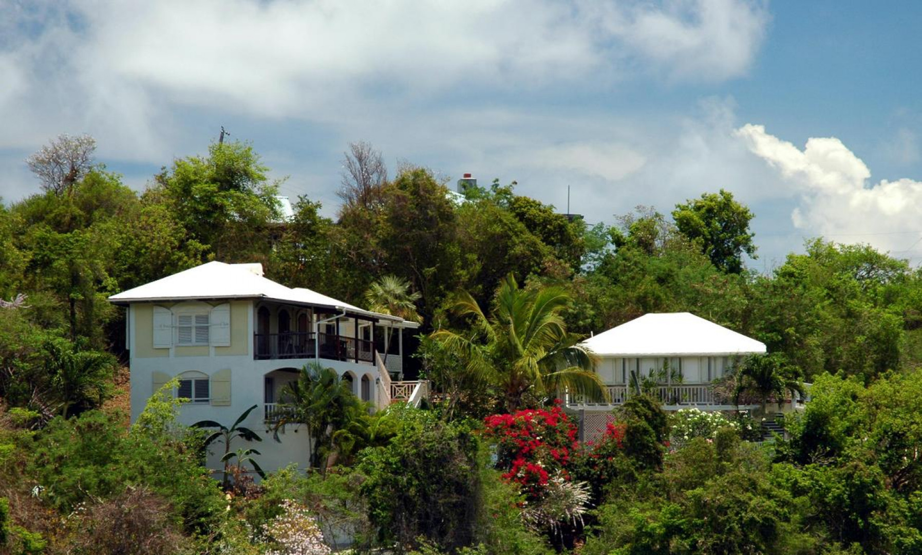 SIX PALMS is wonderful, private villa that could be (and has been) a very successful rental property. Great sunset views over Pillsbury Sound, St. Thomas and the outer Cays accents the solid masonry construction of this two unit home. Can be occupied as a 5 bedroom home or a 3 bedroom main house and 2 bedroom cottage. Quiet, end of the road cul-de-sac location close to town makes this unique!