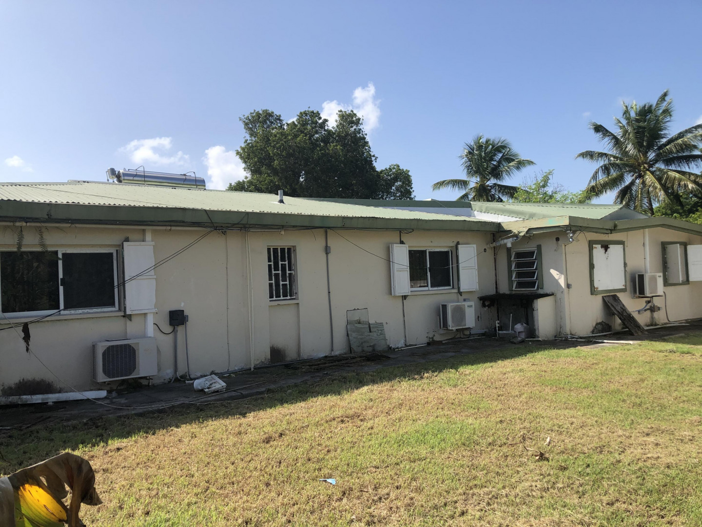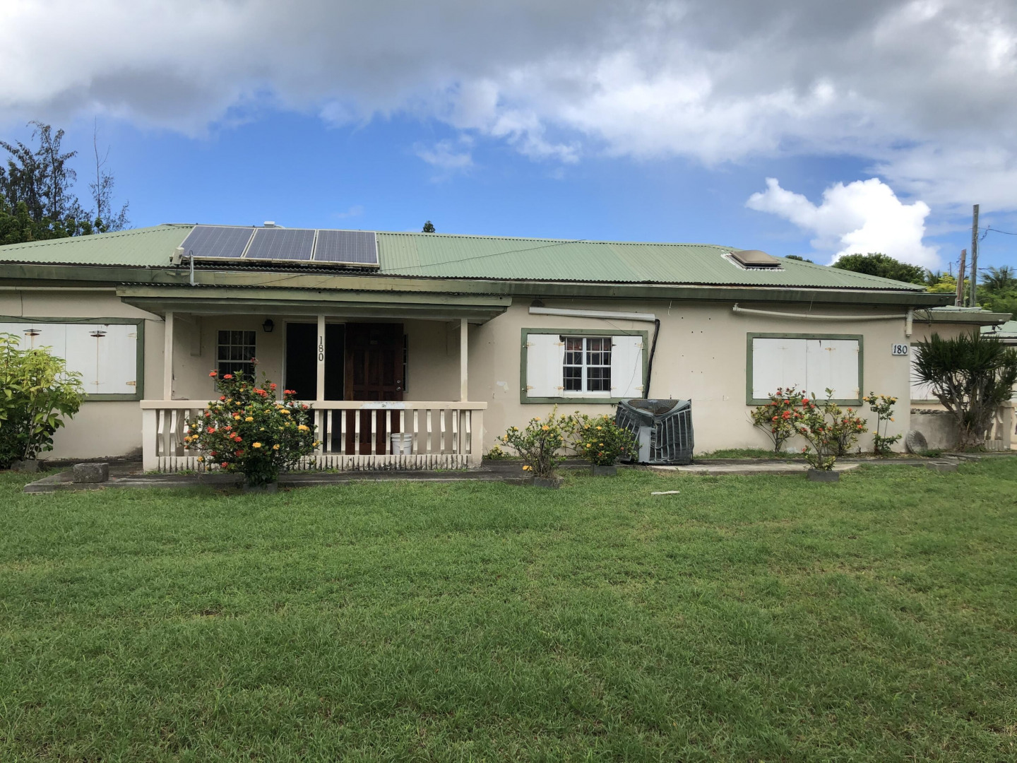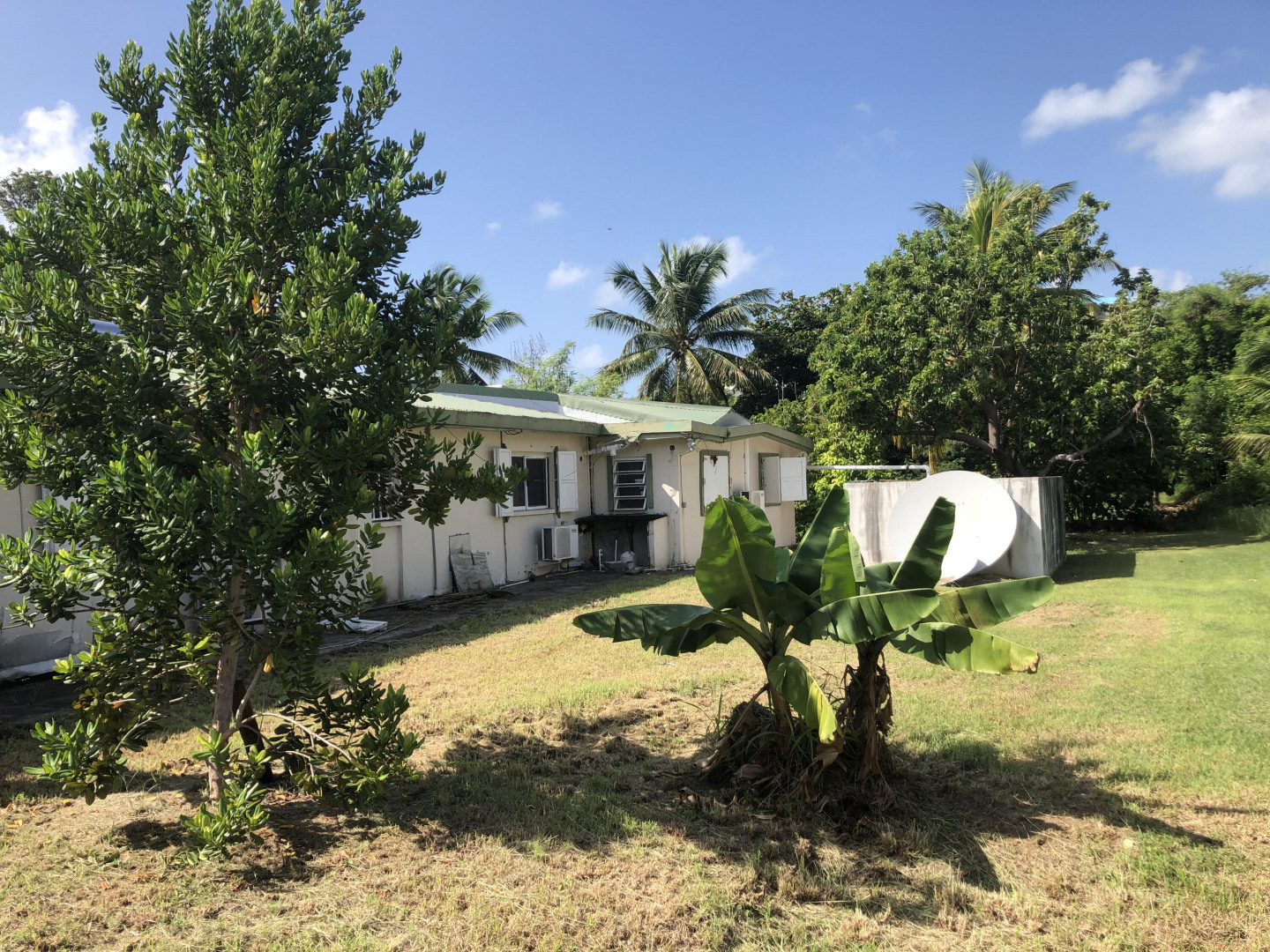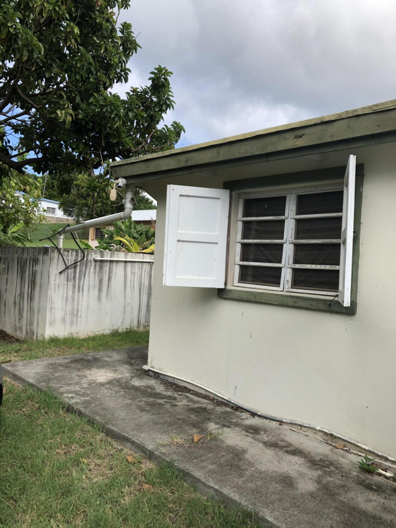 Wonderful, solid-built three-bedroom, three-bathroom home plus three one-bedroom, one-bath units for extra income! It is sitting on .50 acres in quiet Estate Ruby neighborhood. The house features high ceilings throughout, spacious living/dining room, kitchen, and bedrooms, split AC, Solar panels; beautiful stone walls in main kitchen and living areas. Nicely paved driveway. Mature fruit trees and large yard for outdoor living! Located mid-island. Very close to schools, hospital, restaurants, shopping, and business offices. This lovely home awaits you! Being sold unfurnished as-is, where-is.