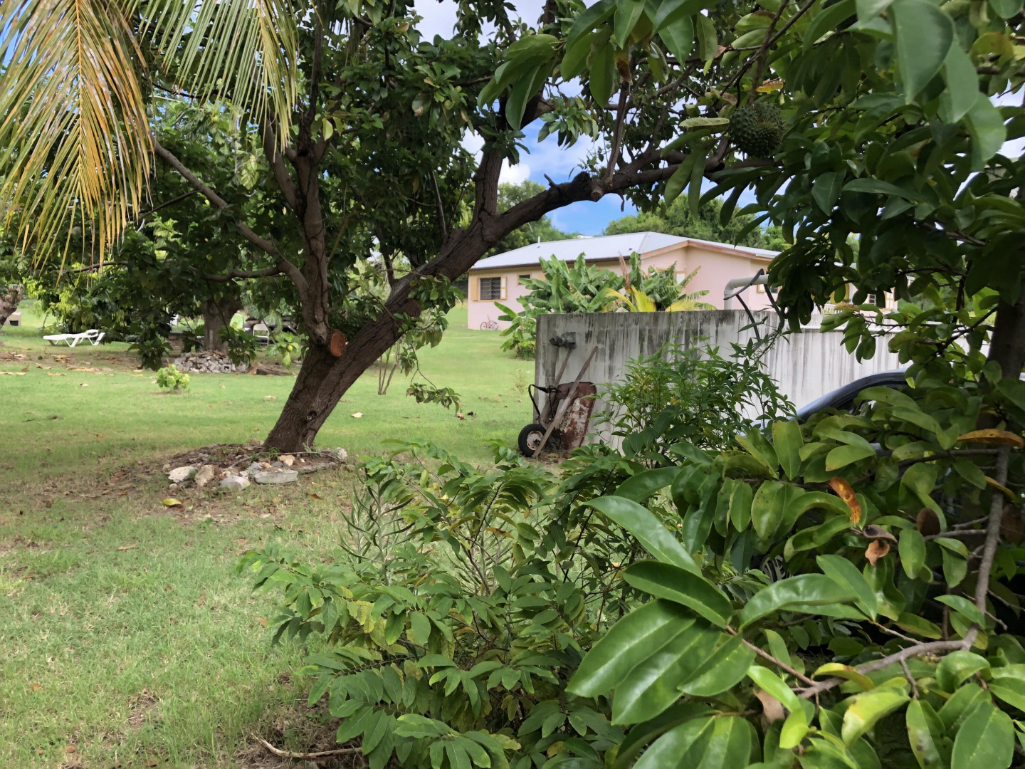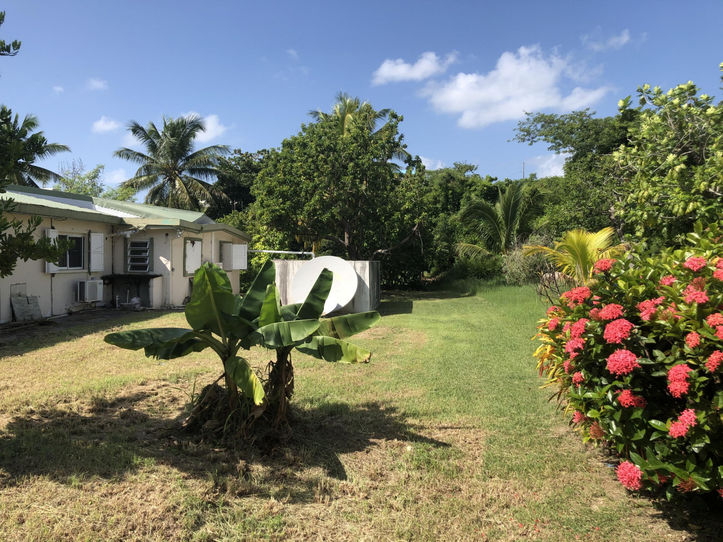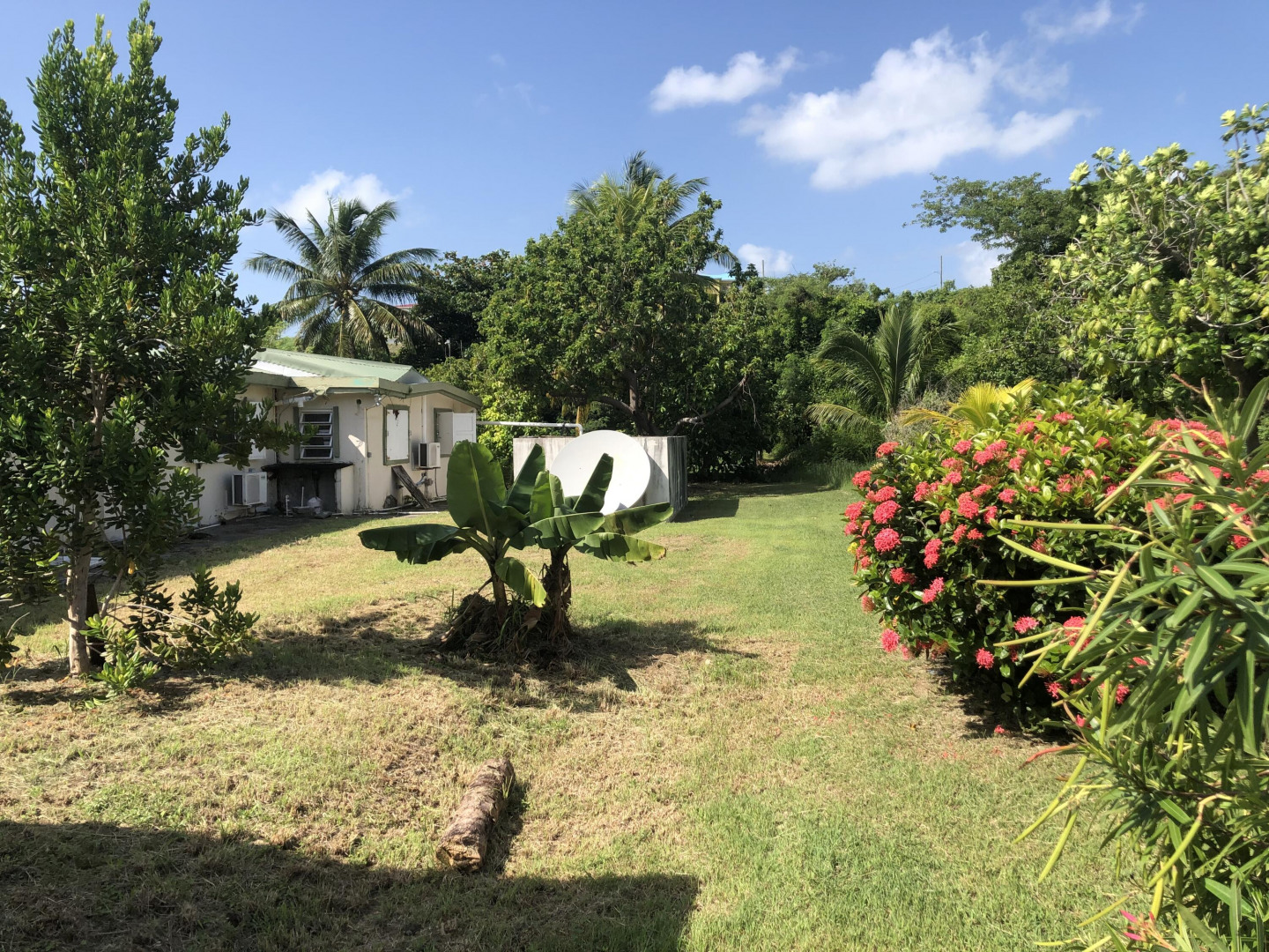 Wonderful, solid-built three-bedroom, three-bathroom home plus three one-bedroom, one-bath units for extra income! It is sitting on .50 acres in quiet Estate Ruby neighborhood. The house features high ceilings throughout, spacious living/dining room, kitchen, and bedrooms, split AC, Solar panels; beautiful stone walls in main kitchen and living areas. Nicely paved driveway. Mature fruit trees and large yard for outdoor living! Located mid-island. Very close to schools, hospital, restaurants, shopping, and business offices. This lovely home awaits you! Being sold unfurnished as-is, where-is.