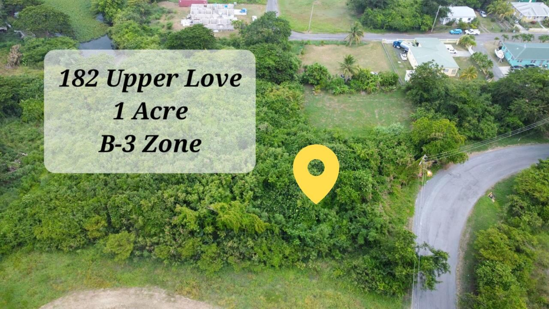 An incredible opportunity awaits with this 1 acre lot in Estate Upper Love, St. Croix, officially rezoned under Act No. 6200 of the Virgin Islands Legislature from R-3 to B-3. This zoning provides outstanding flexibility for commercial, residential, or mixed-use development. With its strategic location, existing well, and legislatively confirmed zoning, this property is primed for growth. Whether you envision a commercial hub, income-generating rentals, or a dream island retreat with business potential, this lot offers the perfect foundation. 182 Estate Upper Love is more than land. It is a smart investment in your future on St. Croix.