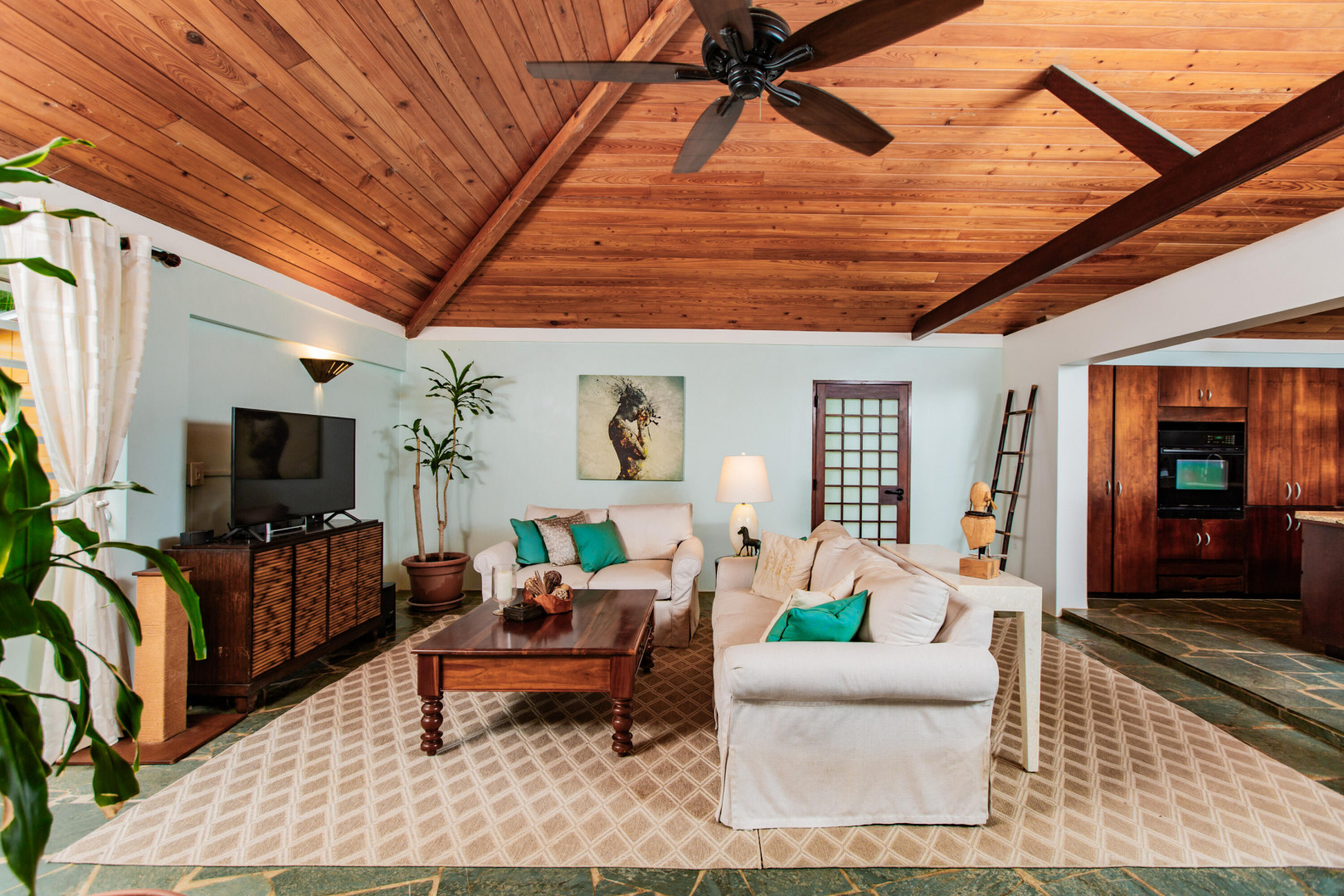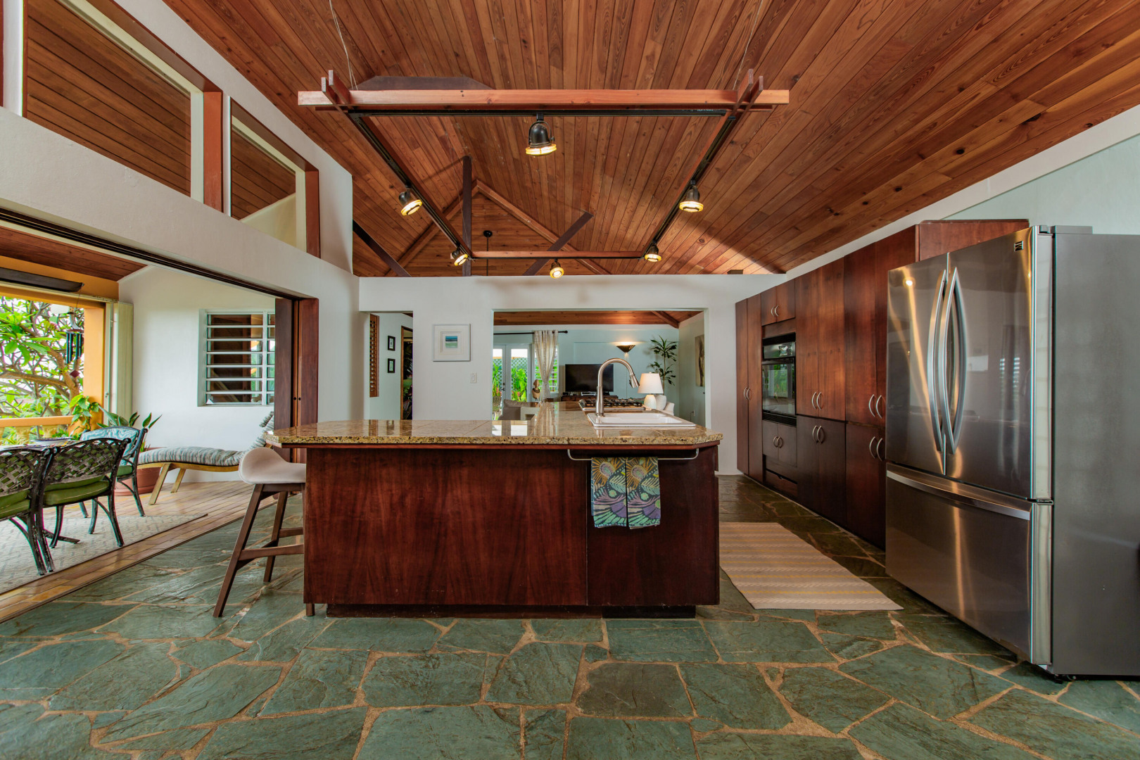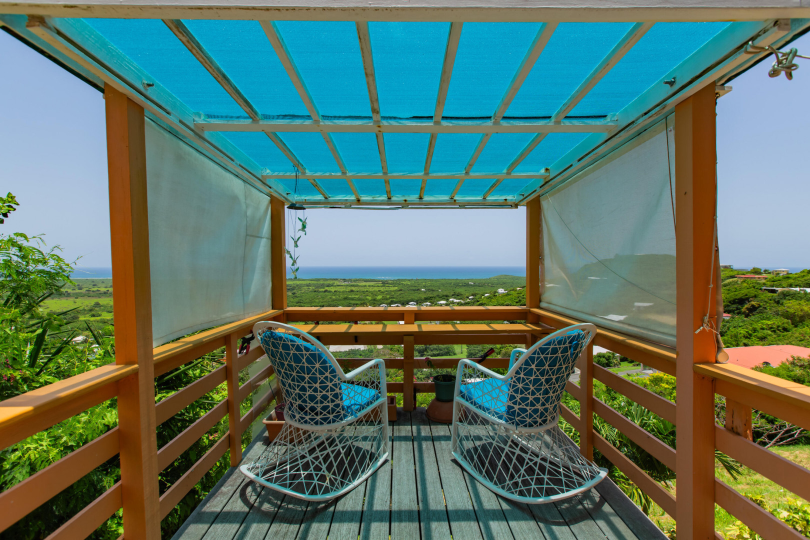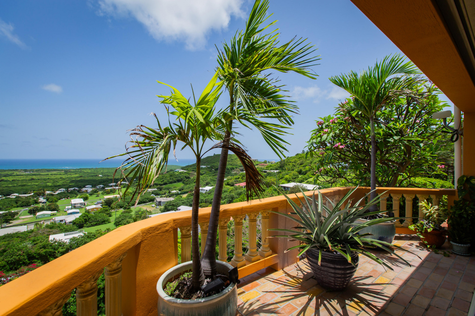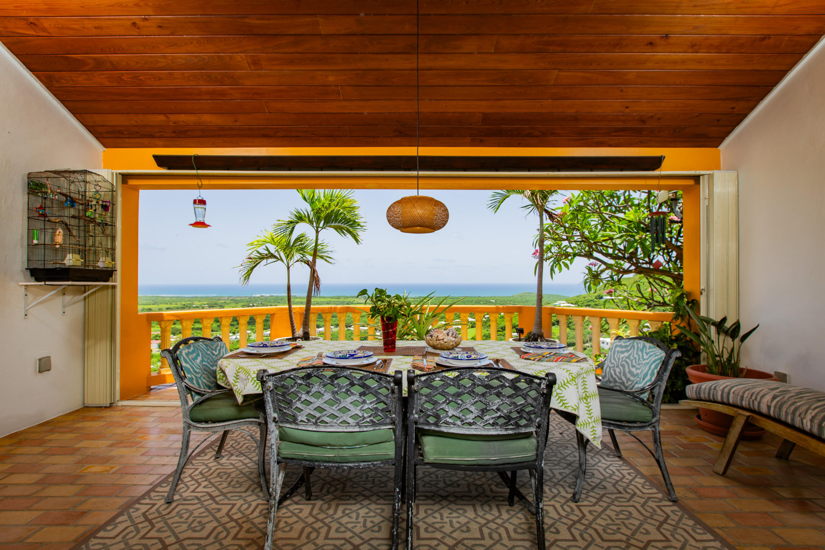 Escape to your own slice of paradise in this stunning Caribbean hillside home boasting views of both the North and South shores. With 3 bedrooms and 2 baths, plus a convenient efficiency apartment with separate entrance & parking on the lower level, there's ample space for family and guests.Relax with your very own dipping pool, perfect for unwinding while soaking in the panoramic vistas. This home is a masterpiece of custom features including vaulted cypress ceilings, Blue Bitch tiled floors, skylights, mahogany doors & cabinetry. Other amenities include storage shed for tools/yard equipment, large storage room/workshop plus laundry room with utility sink & bonus fridge, Enjoy eco-friendly living w/ solar net metering & an automatic propane generator - large yard perfect for pets!