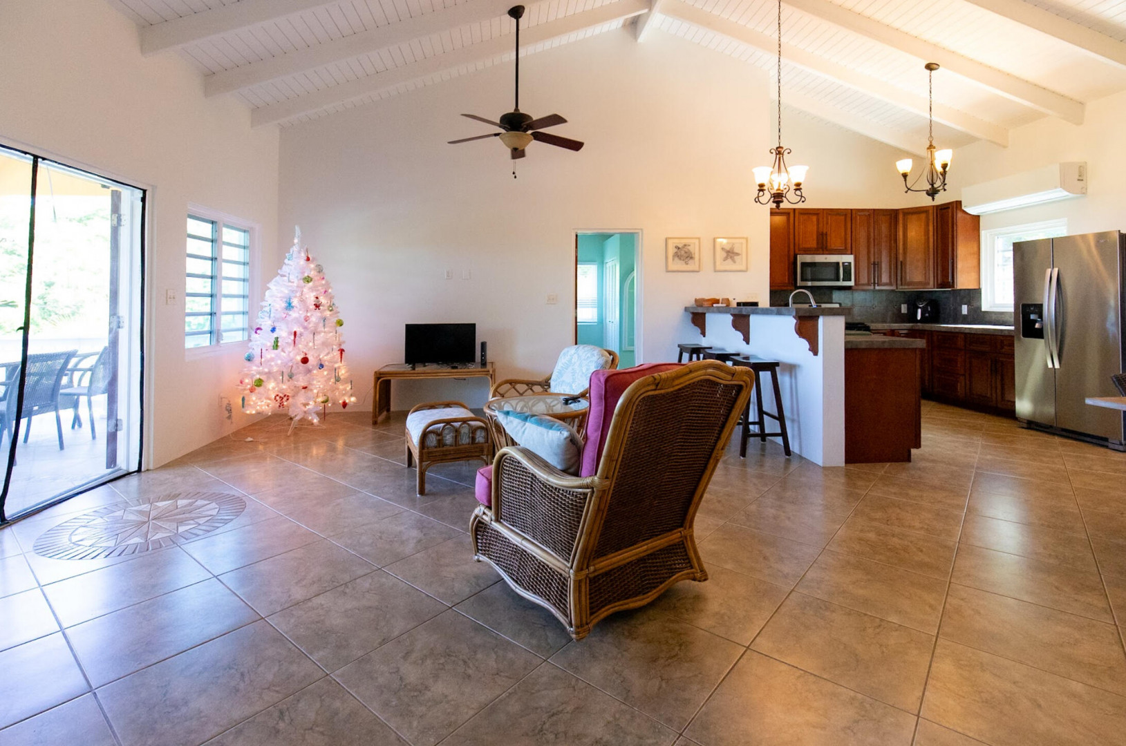 This fully furnished 2-bedroom, 2-bathroom home offers a turnkey living experience with everything you need for comfort and relaxation. Situated on a spacious 0.66-acre lot, the property includes a separate studio, perfect for guests or additional living space, along with private parking for convenience.The home features an open-concept layout, with large windows that fill the space with natural light and showcase stunning ocean views. Step outside to your private backyard oasis, complete with a sparkling pool, perfect for enjoying sunny days or hosting gatherings. The property also boasts a 36-panel solar system, providing energy efficiency and helping to reduce your environmental impact.Located in a quiet, peaceful area, this home offers the ideal retreat while still being close to all the amenities and attractions the area has to offer. Whether you're unwinding by the pool, enjoying the ocean views, or utilizing the studio, this property provides a unique and tranquil living experience.