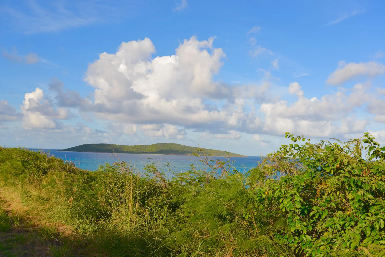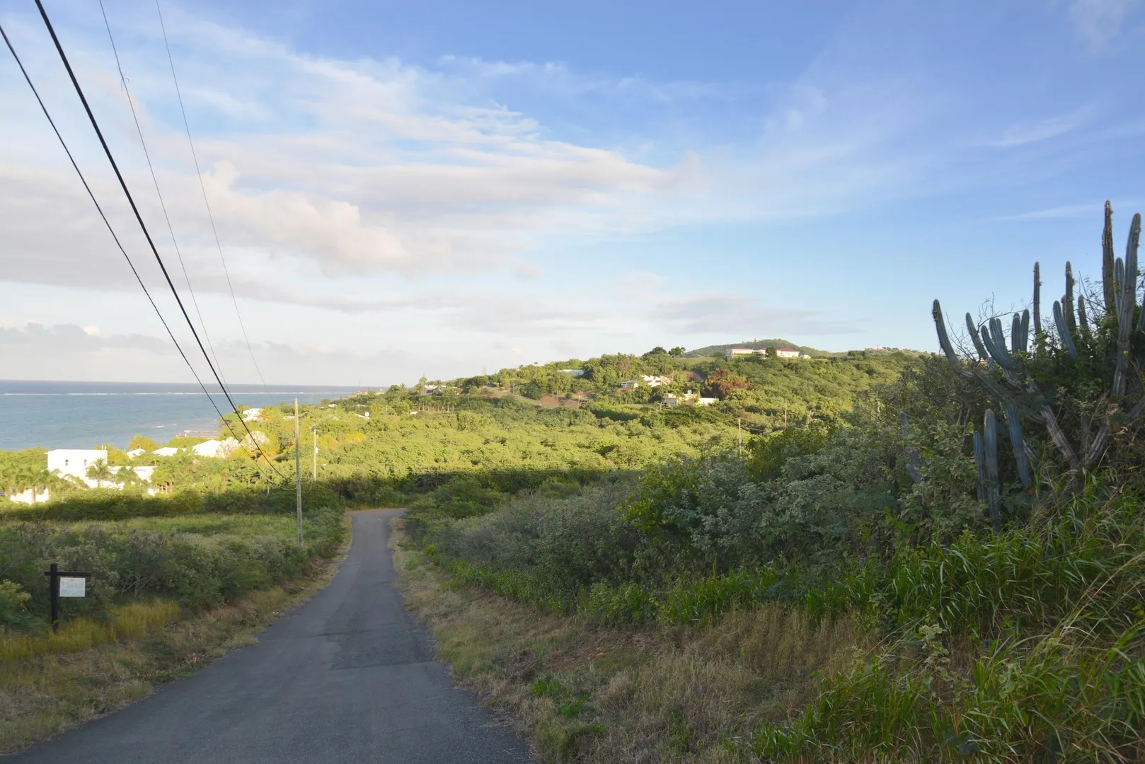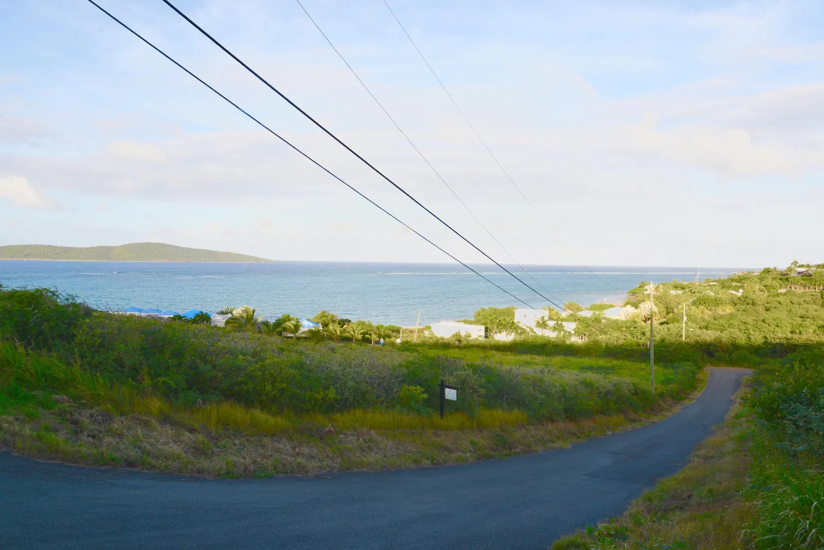 This gently sloping large (1.1 acres) lot has a great view of the sea and Buck Island. Very quiet and private area of exclusive homes. Nice little beach here too!