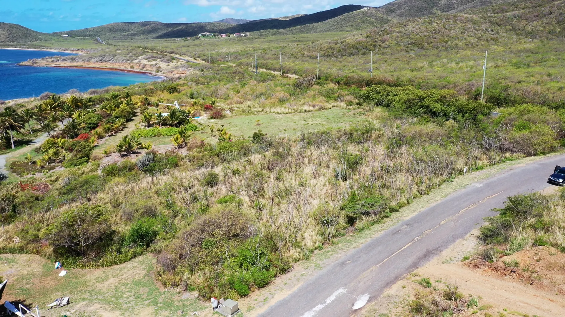 This Gently sloping lot with great paved access will provide you with stunning views of the turquoise Caribbean sea. Access to the sea is only a short walk away, too! This area of the island is not very developed and has a really nice ''out in the country'' vibe, yet is only about a 15 minute drive to downtown Christiansted.
