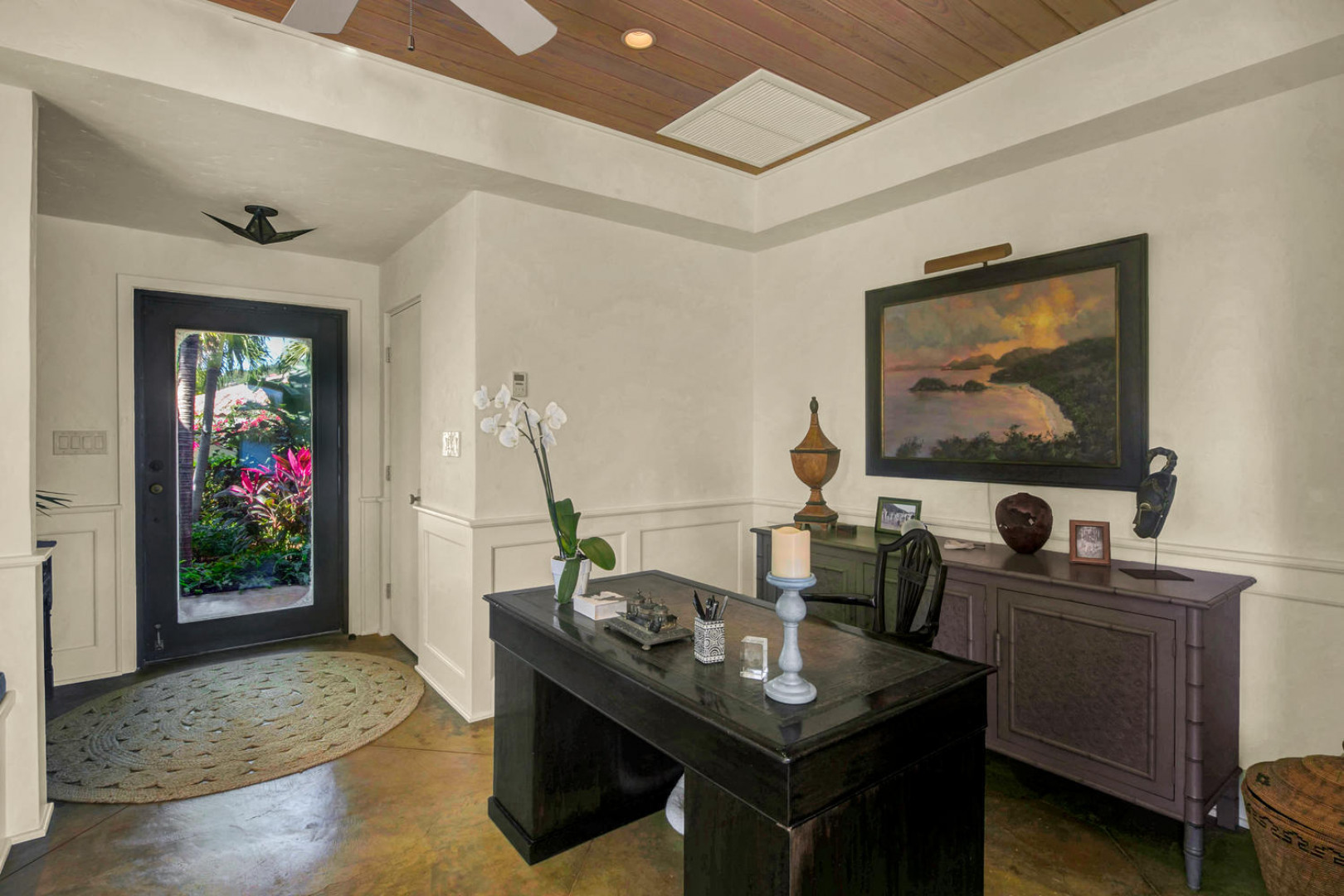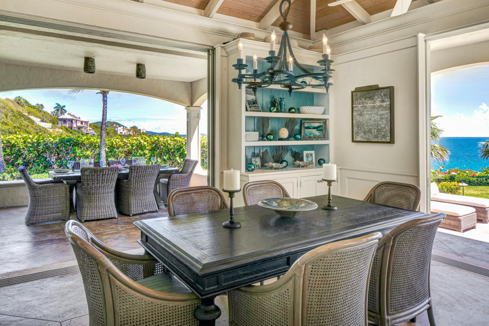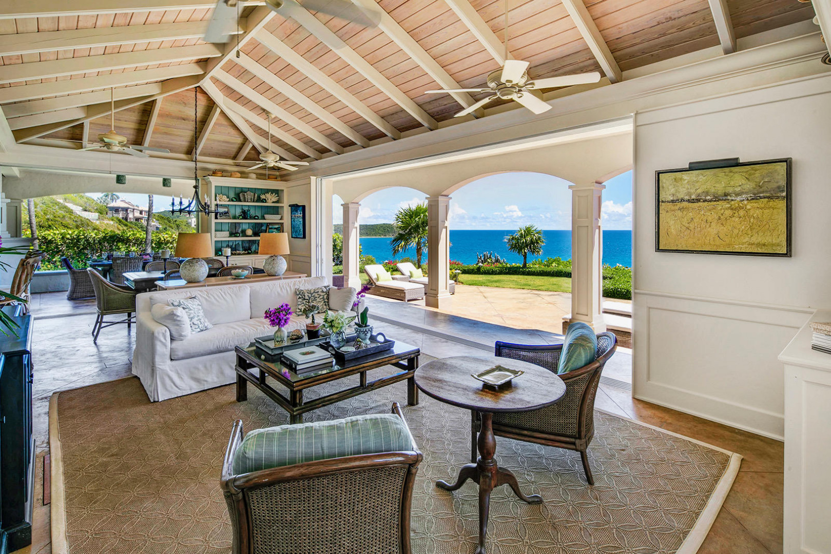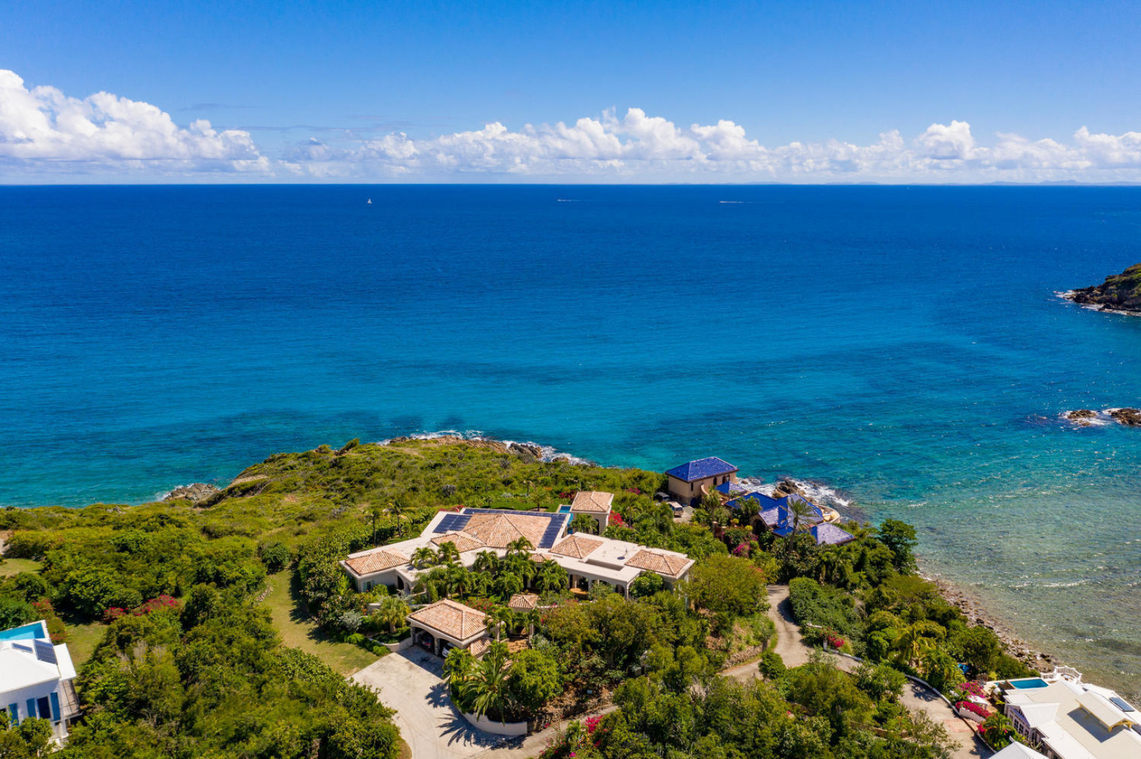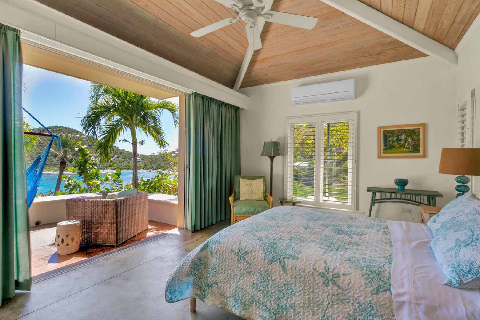 The living is easy year-round at Tango Mare, whose solid masonry construction, single-level design, and maintenance-free features make it a home of carefree comfort. Located five minutes from Cruz Bay, this four-bedroom, four-bath villa is close enough to town that shopping, dining, and bars are within easy reach, yet its location at the end of the road affords privacy and seclusion. The entire home is situated on one level, a rare find on hilly St. John. Tango Mare's floors are stained concrete, for a polished and refined look that requires no maintenance. Perhaps the best feature of this four-bedroom villa is its stunning views of Hart Bay to Rendezvous Bay and St. Croix in the distance. The home is perfectly situated toward the ocean vista, and great sliding pocket doors in the liviThe home is perfectly situated toward the ocean vista, and great sliding pocket doors in the living room and bedrooms make it easy to glimpse the beautiful turquoise waters from any room in the house. Waves often gently wash ashore in Hart Bay below, making for the most tranquil of soundtracks. Tango Mare is solid and hardy, designed and built to withstand abnormally high winds. The walls are reinforced with rebar and most are seven inches thick; the roof is 11 inches thick with two layers of rebar and accented with imported Italian tiles. Easy-to-close wood shutters protect smaller courtyard windows, while Armor Screens enclose ocean view openings for an extra layer of safety. Thirty two solar panels offset costly electricity bills. Tango Mare is enrolled in the net metering program, and there's a 32KW back-up generator, so you never have to go without current despite sporadic outages. There's air conditioning throughout the villa to keep you cool, though you might find the gentle trade winds do the trick all on their own. The home's current owner is an interior designer who's put her expert skills to use, maintaining a soothing, neutral palette throughout to allow nature's beauty to shine. You're sure to find yourself making ample use of the home's outdoor living areas. An infinity edge pool offers a seamless transition from the home to the sea below; it was resurfaced and new equipment installed in 2019. A covered outdoor living room with pool bar and outdoor dining room with built-in grill is an inviting space to enjoy St. John's balmy year-round weather. Inside, bathroom countertops and showers are finished with sustainable seastone made from shell fossils, perfectly complementing the island's landscape in a subtle, refined way. Each of the four bedrooms features its own private bathroom, outdoor shower, and private patio with ocean views. In the master, a newly installed bathtub is the perfect place for a relaxing soak as you gaze out over the south shore. Tango Mare is ideally set up to operate as a successful vacation rental, though it's just as easyand temptingto move in and make it your home.