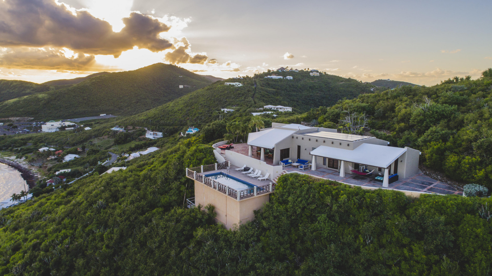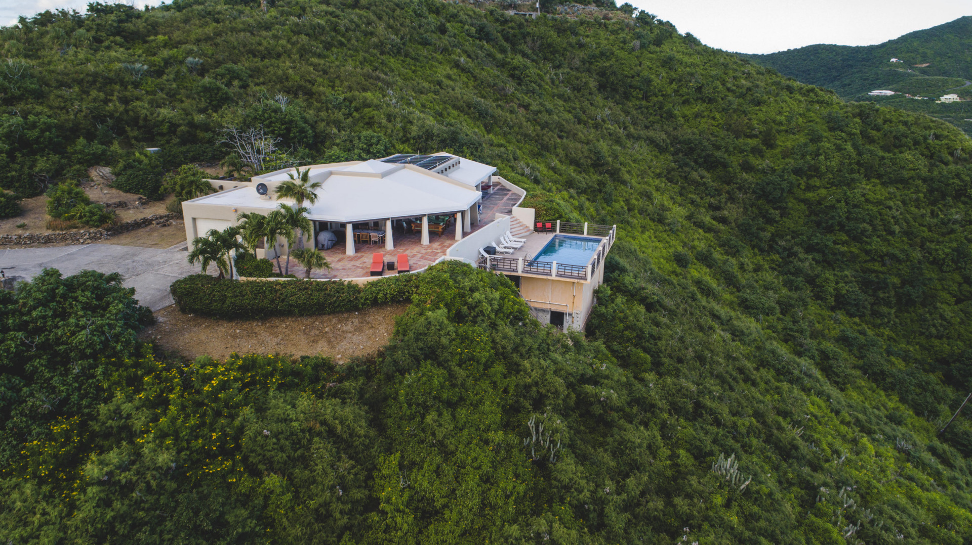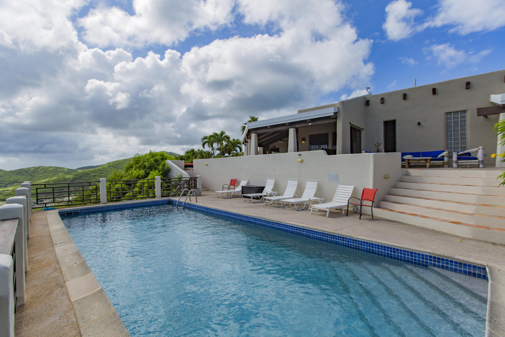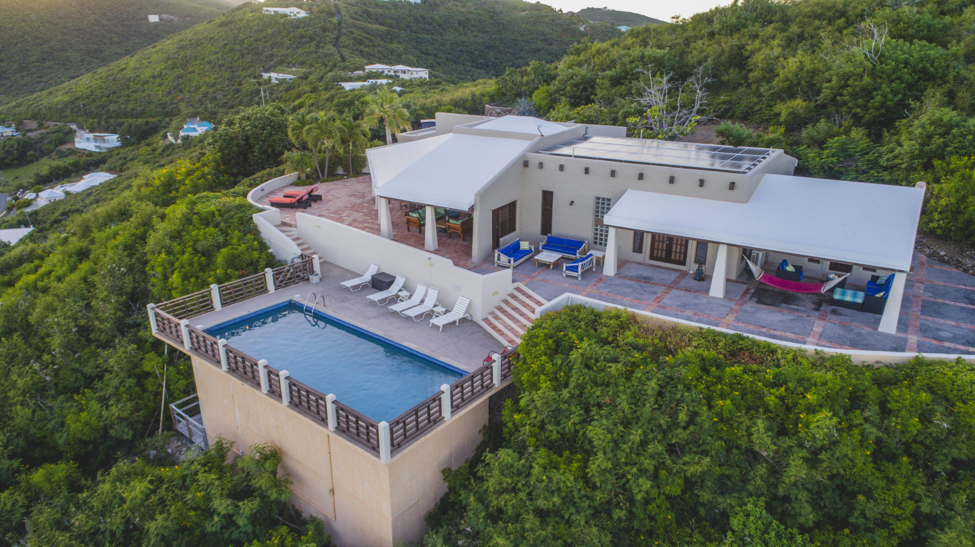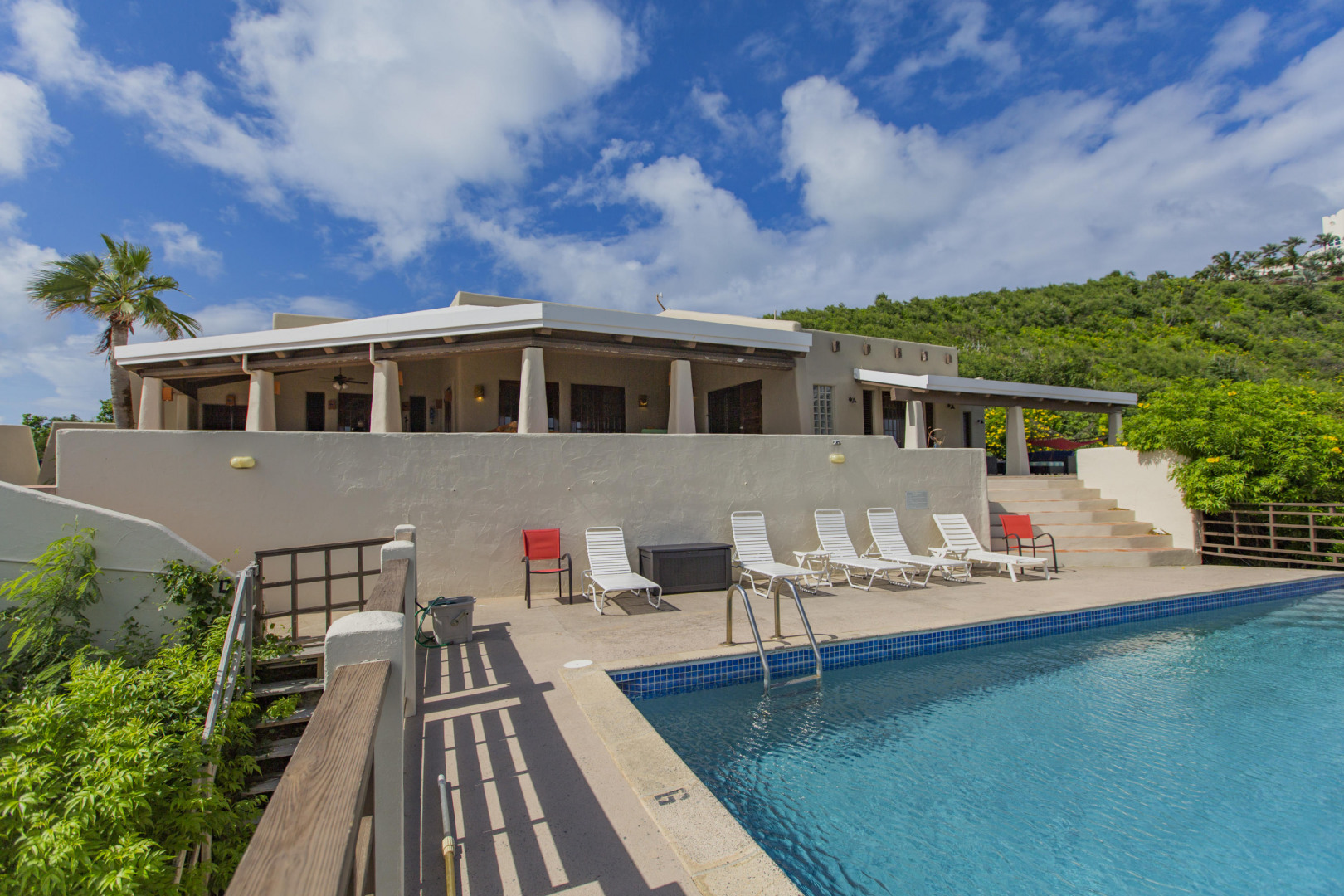 Welcome to the Crucian Hacienda! This sprawling 4/4 home on over 2 acres has a commanding view of the turquoise waters of the South shore. In addition to this stellar view, you will no doubt enjoy the privacy, amazing outdoor space, solar power, large pool, garage, and spacious living areas inside the home. The home has been a very successful vacation rental too! See docs