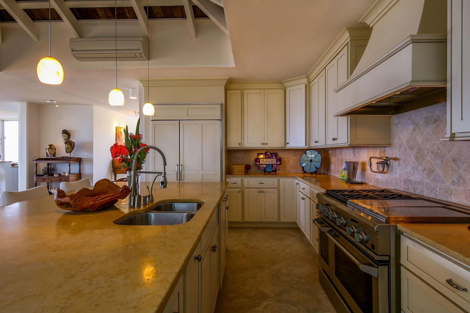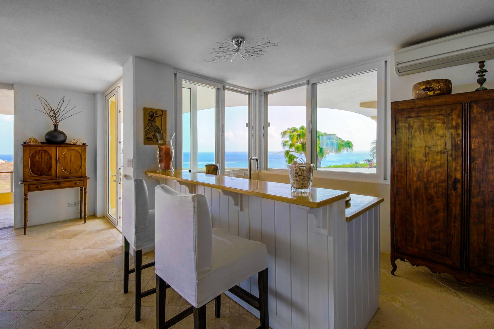 FOR COMP ONLY in the hills of Green Cay, this is a rare opportunity to purchase a private gated estate on St. Croix's east end. This property sits on approximately three acres of one of the nicest knoll tops east of Christiansted with panoramic views that stretch from Buck Island to Christiansted. This property was recently renovated with many fine finishes and fixtures, including new Plaza hurricane impact glass doors and windows throughout, tumbled marble flooring, granite and marble counters in kitchen and bathrooms, GE Monogram Professional Series Kitchen Appliances, split A/C units throughout as well as Minka Aire ceiling fans, and Kohler fixtures. The main house has three bedrooms upstairs with guest quarters below and separate one bedroom caretaker's cottage.The large courty