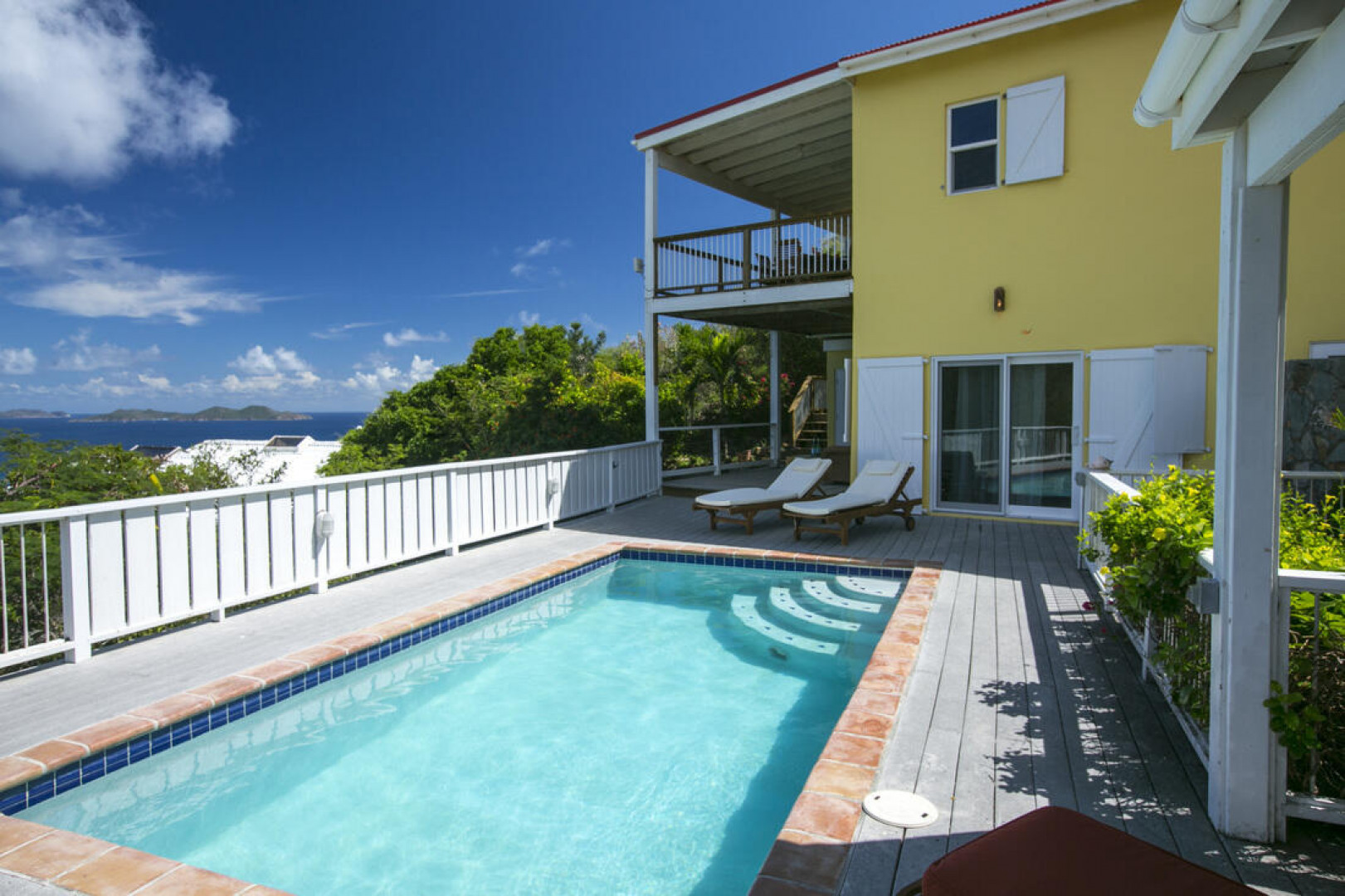 ''Caribe Breeze'' is looking for new owners to love this wonderful home. Breathtaking view is a wow factor of this well-build masonry villa, located in secluded Concordia Estate. Stunning views from each window, pool, expansive lounging decks and covered porch make this villa attractive to island visitors. Cooling breezes year-round make this home a great option for full-time residents. 2 bedrooms with extra daybeds, large closets and in-suite bathrooms with stone outdoor showers are located on lower level off the pool deck. Main living room, kitchen, bathroom and covered porch are on the main level. Villa has many recent updates, new solar system with two Tesla batteries, windows and doors.