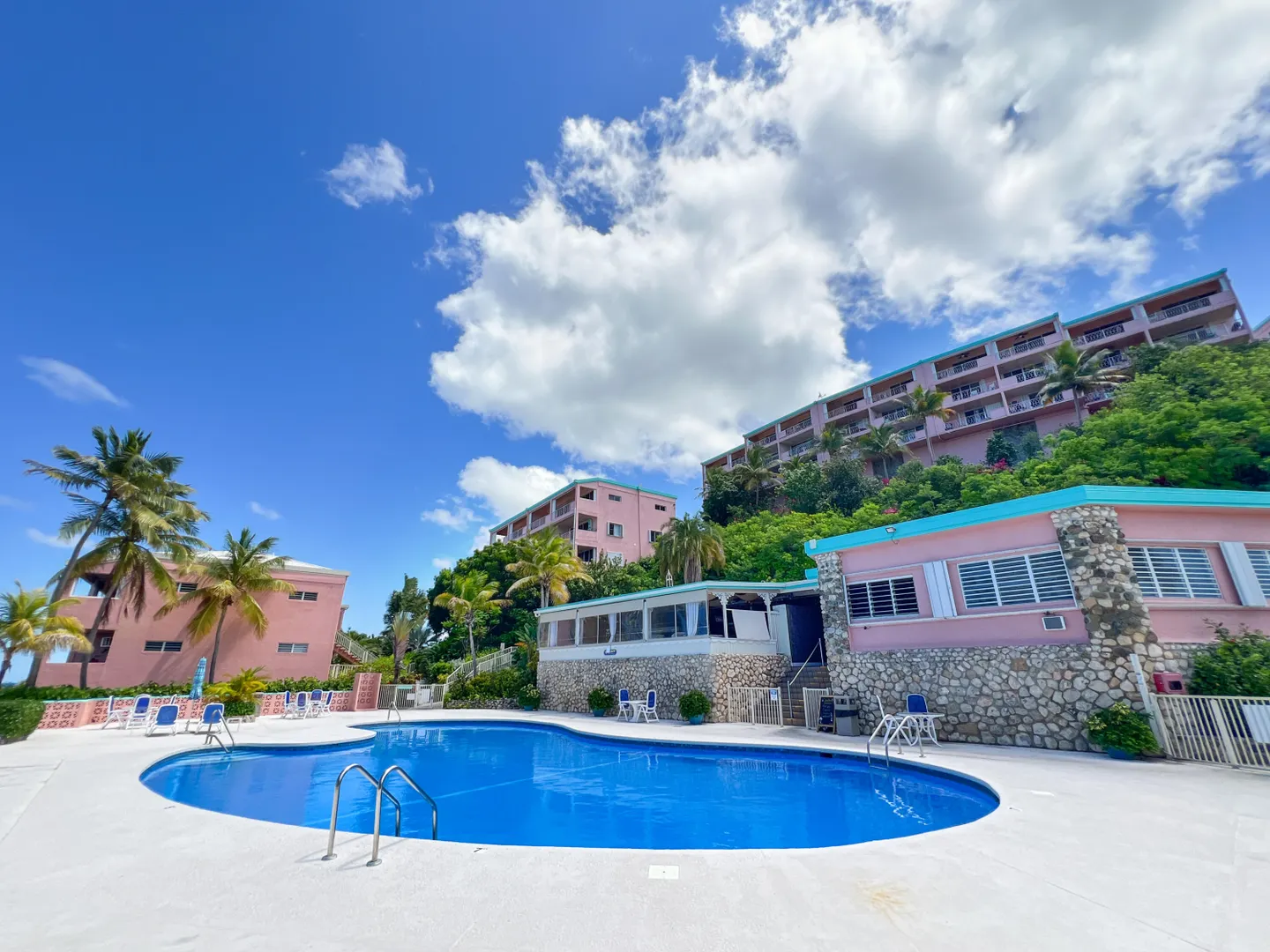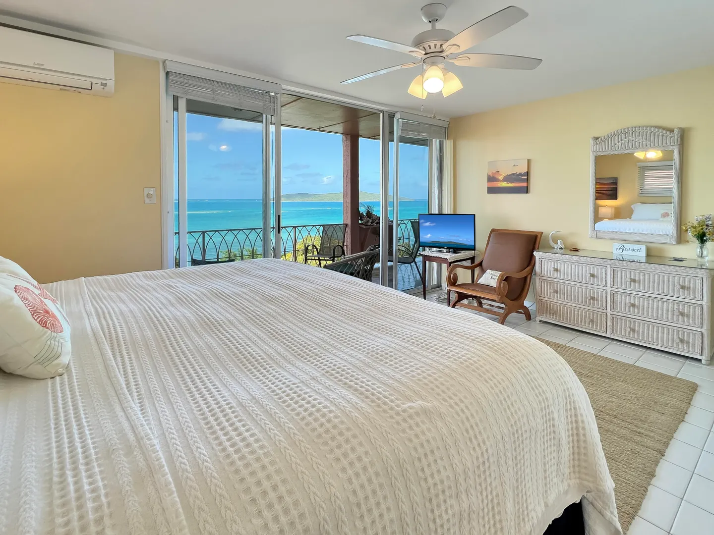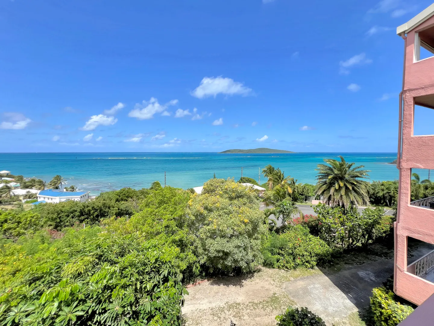 Delightful Diamond in the Sun! With spectacular views of Buck Island & the azure Caribbean Sea, this delightful and rare 3 bed, 2 bath condo is ready to be your new island home! In the desirable Coakley Bay condo complex and on parking lot level, this condo has no stairs and no shared walls, which means there are windows and sliders on all 4 sides! Just minutes from beautiful beaches, great restaurants, historical Christiansted, golf courses & The St. Croix Yacht club, it's ready to be your new island home! Complex offers free water, an automatic generator, on-site hair salon, & seasonal restaurant. HOA includes trash pickup, monthly pest control, & wifi. This unit has been a successful vacation rental. See list of improvements in Document Section.