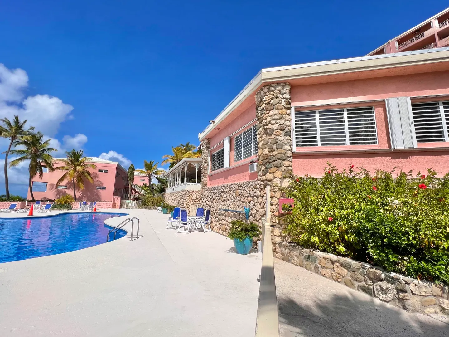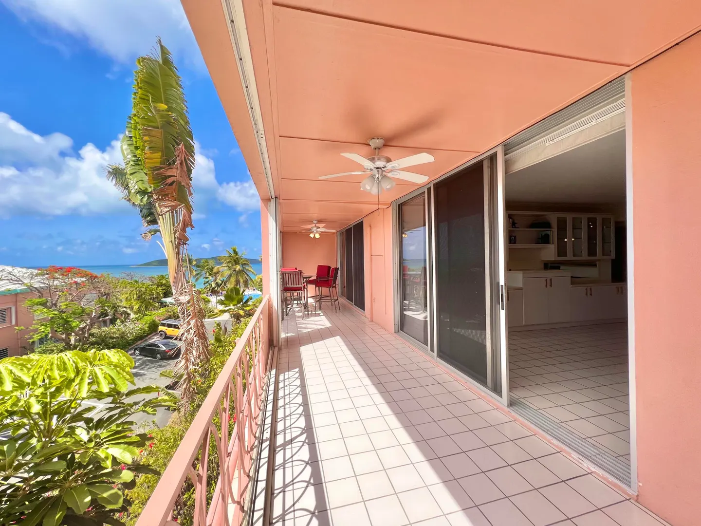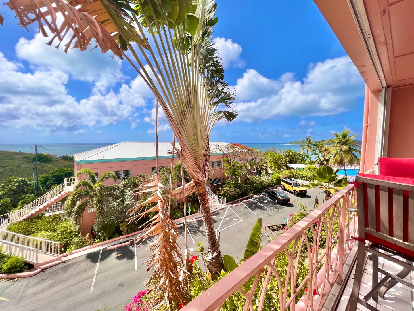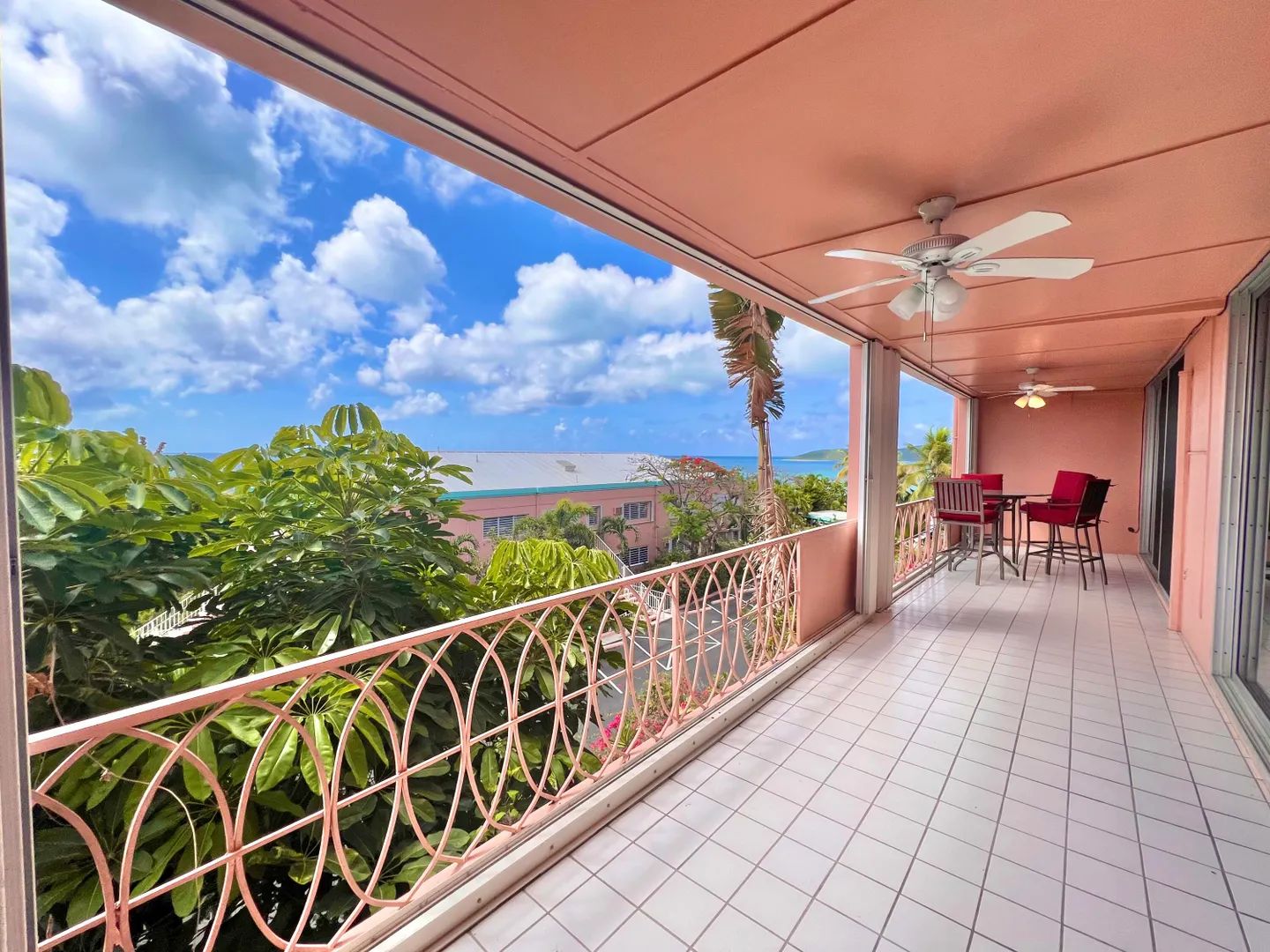 Beautiful and spacious 2-bedroom unit that is ready for its new owner to make it their own! Buck Island and sea views from the spacious gallery, which is perfect for alfresco dining, taking in the sunset or enjoying your morning coffee. All rooms are on one level and this unit offers an open and spacious living area and kitchen as you enter the unit. The bedrooms each have their own full bath en-suite with ample space. Split A/Cs in each room, plenty of natural light and freshly painted. Located on the lower level, there are stairs to the unit or there is a walkway that allows access without stairs! The building is one level above the pool for easy access to the pool and seasonal restaurant, GOAT. The J building is a dead end, so no through traffic and tucked away far from main road.